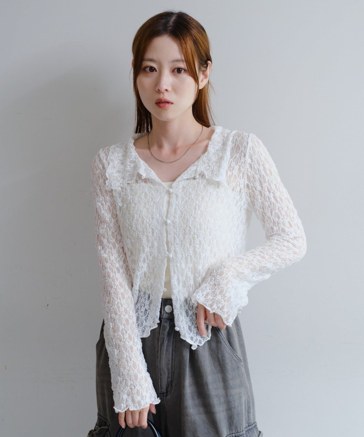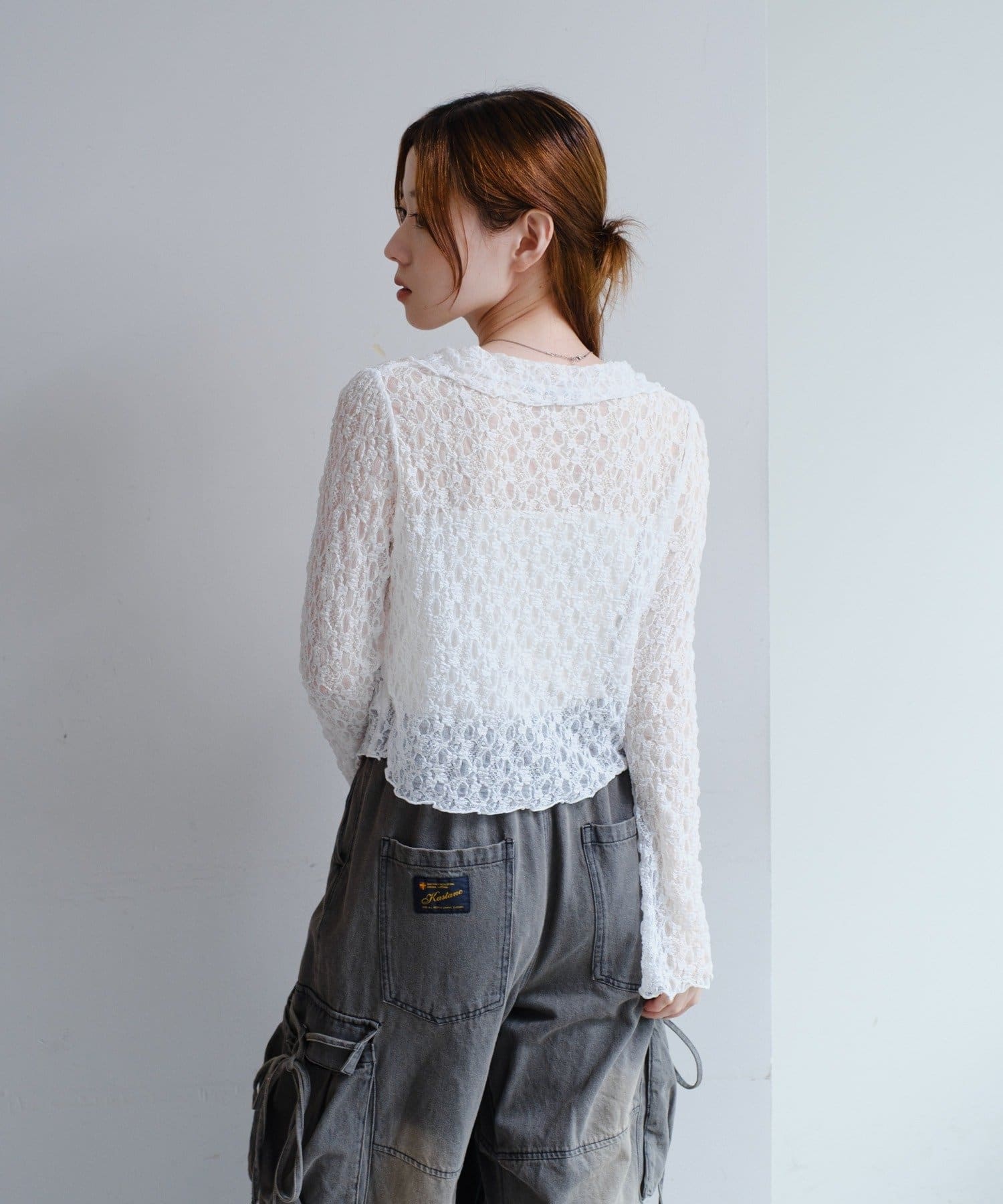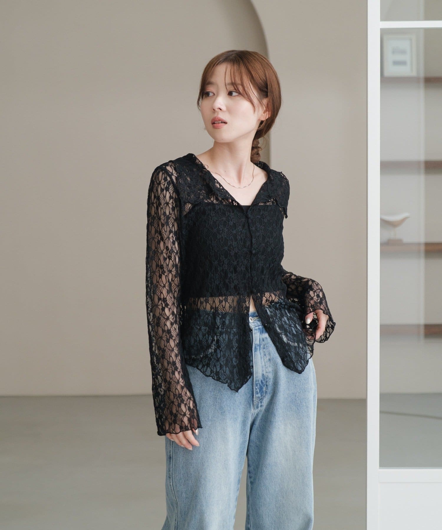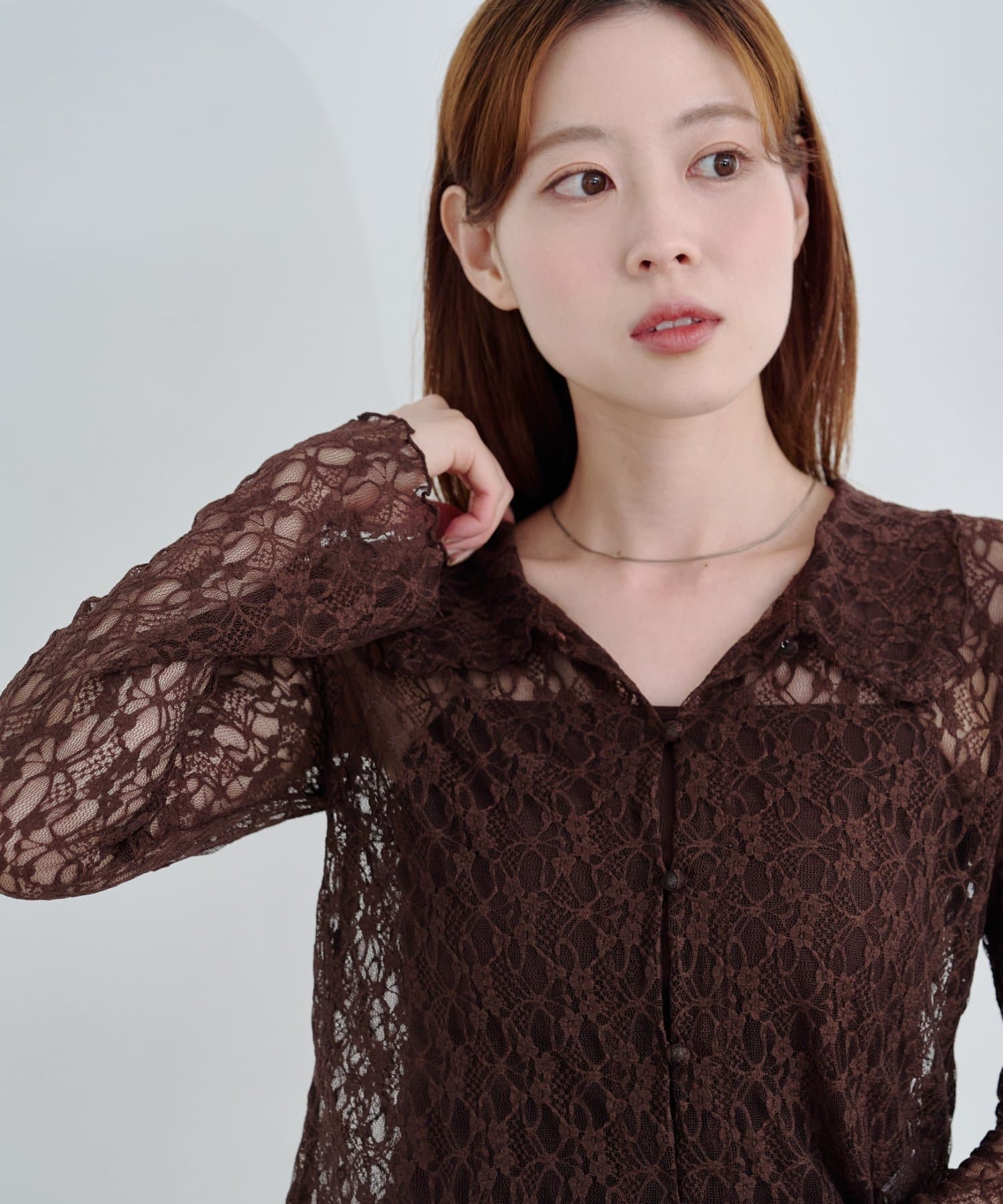 襟付きデザインがとても可愛らしく袖のレースのテクスチャーも上品で、1枚でコーデの主役になるアイテムです🌻