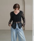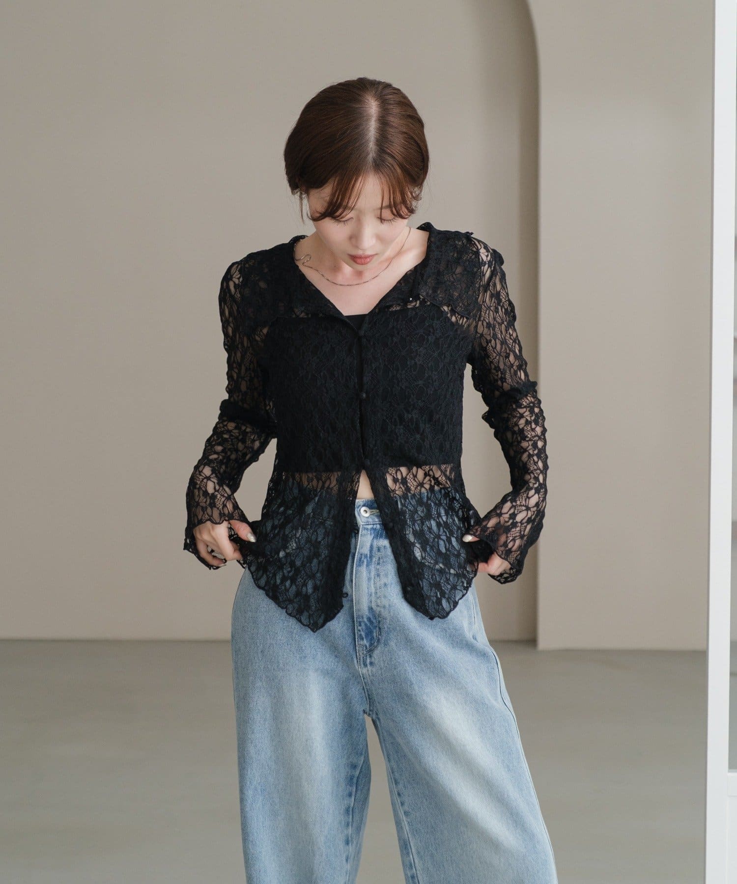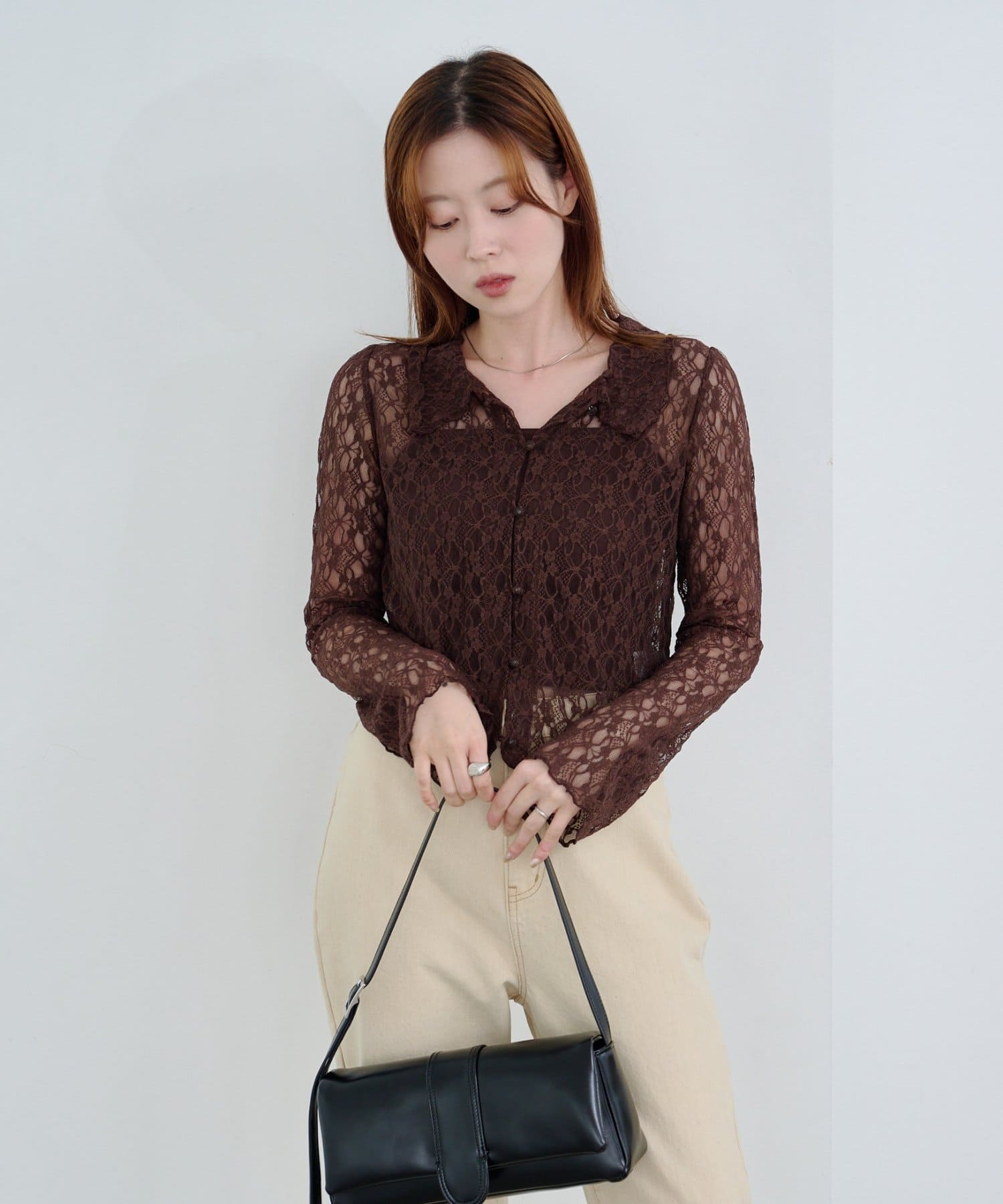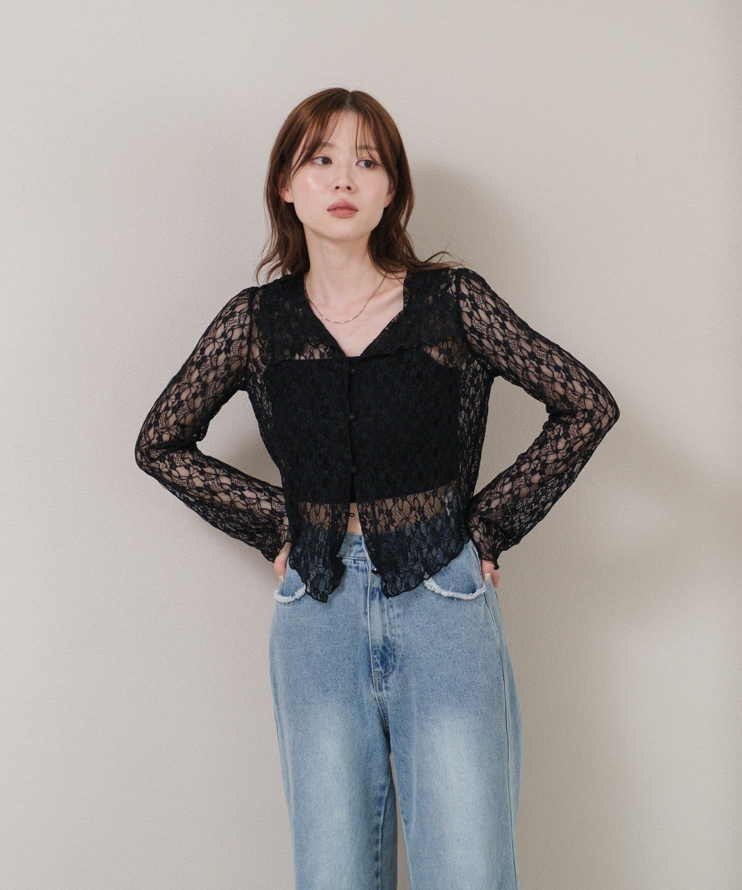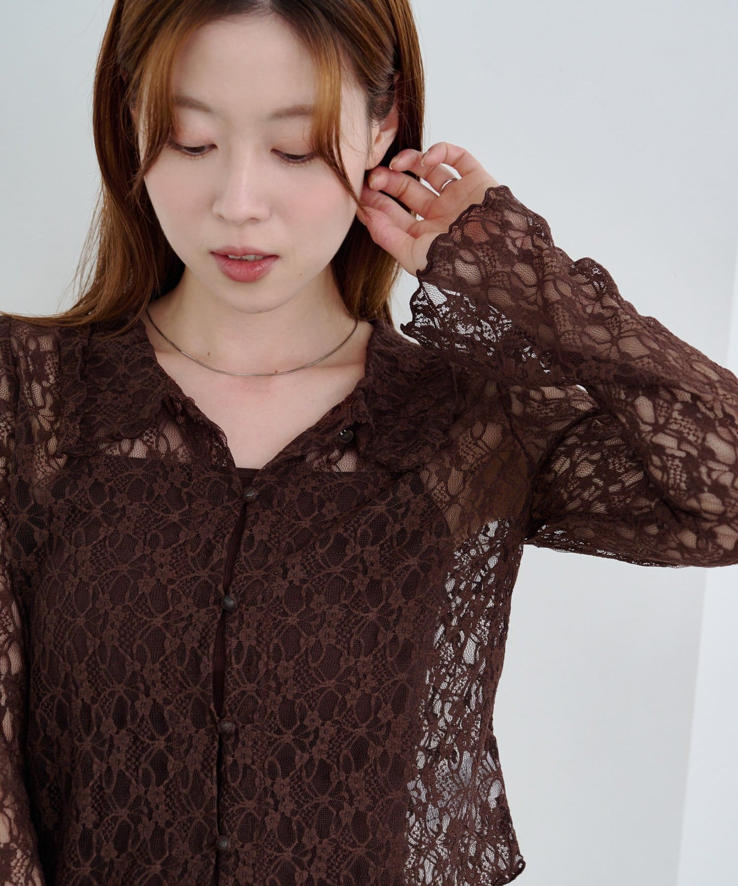 襟付きデザインがとても可愛らしく袖のレースのテクスチャーも上品で、1枚でコーデの主役になるアイテムです🌻