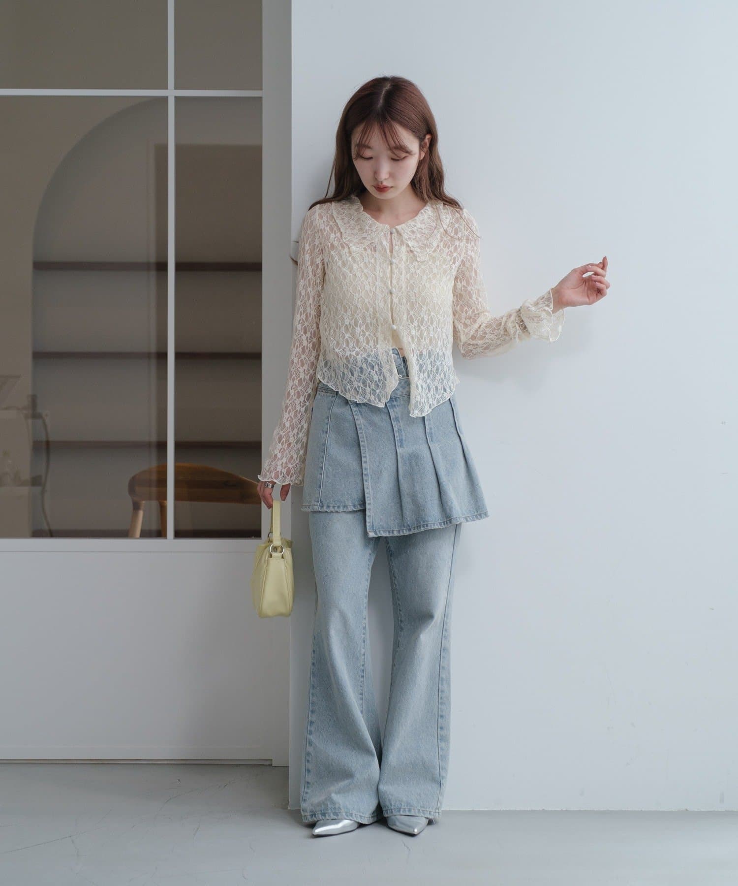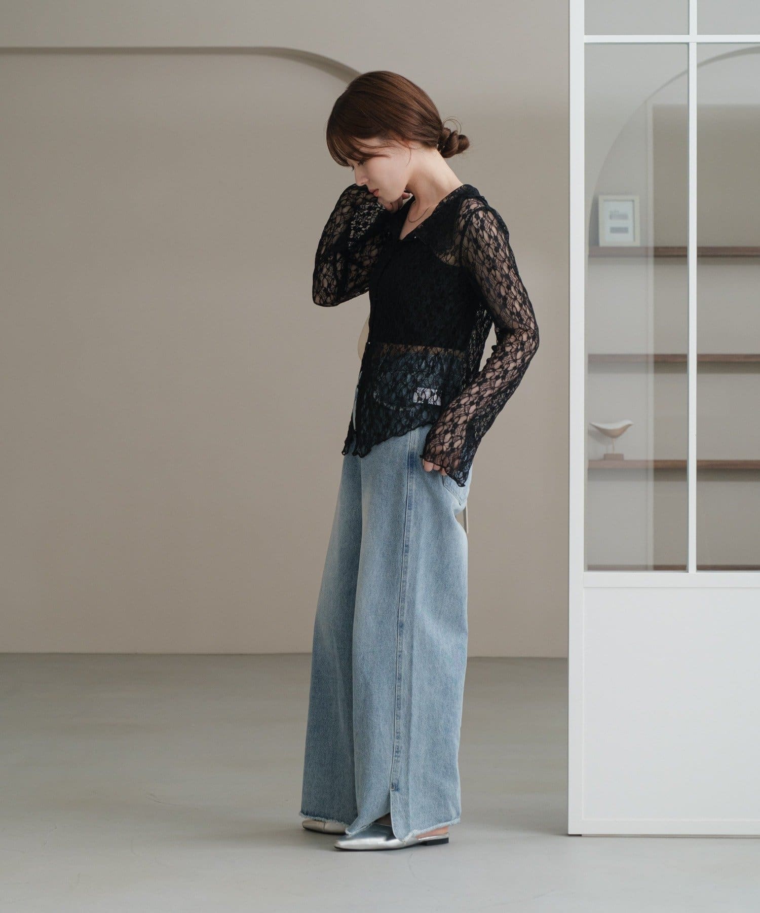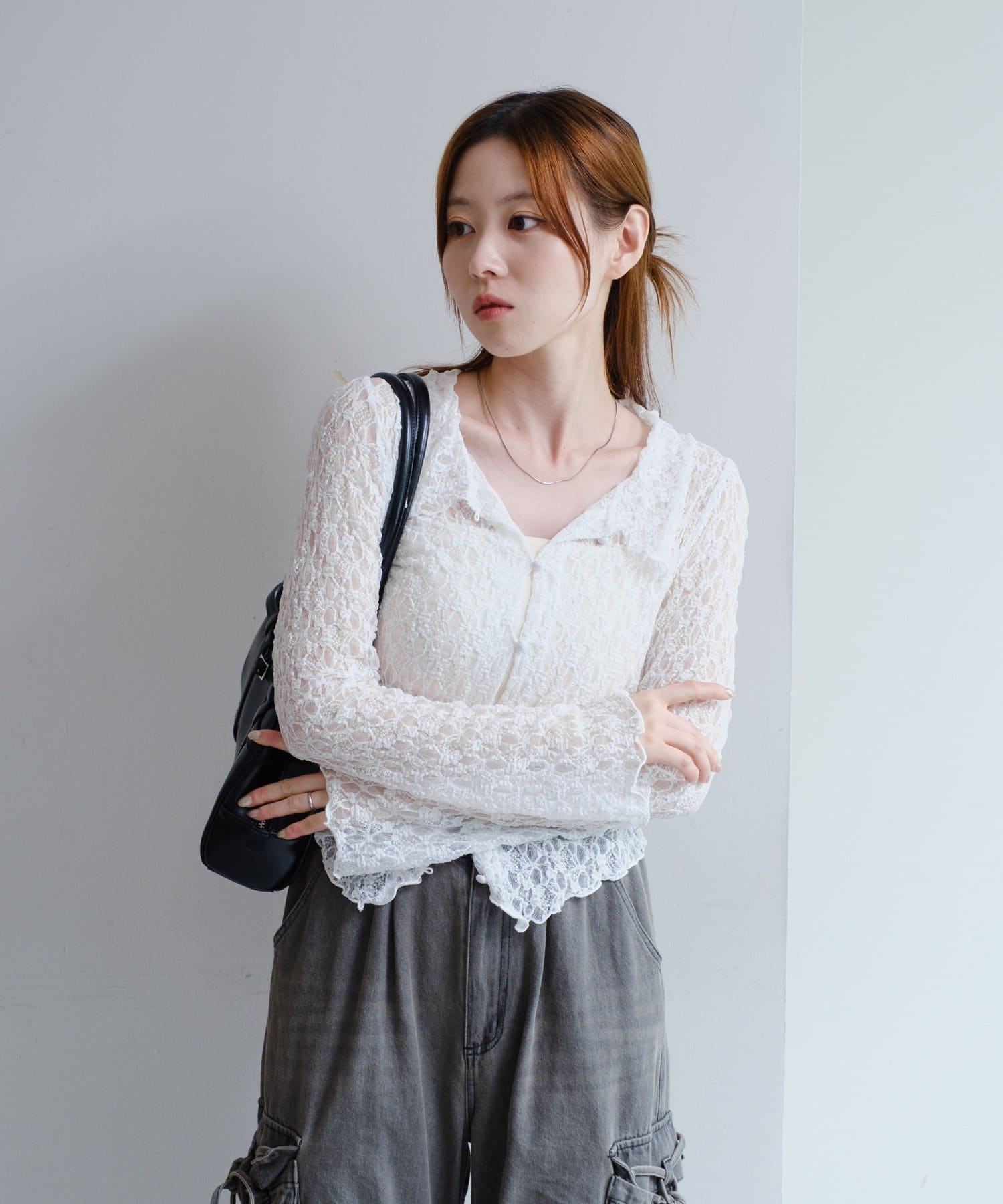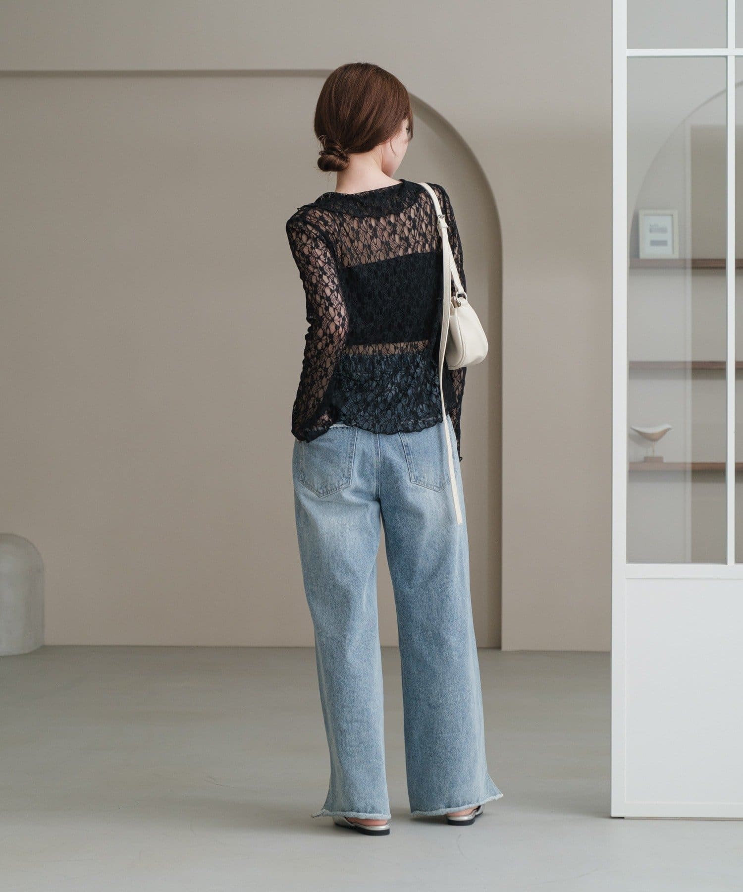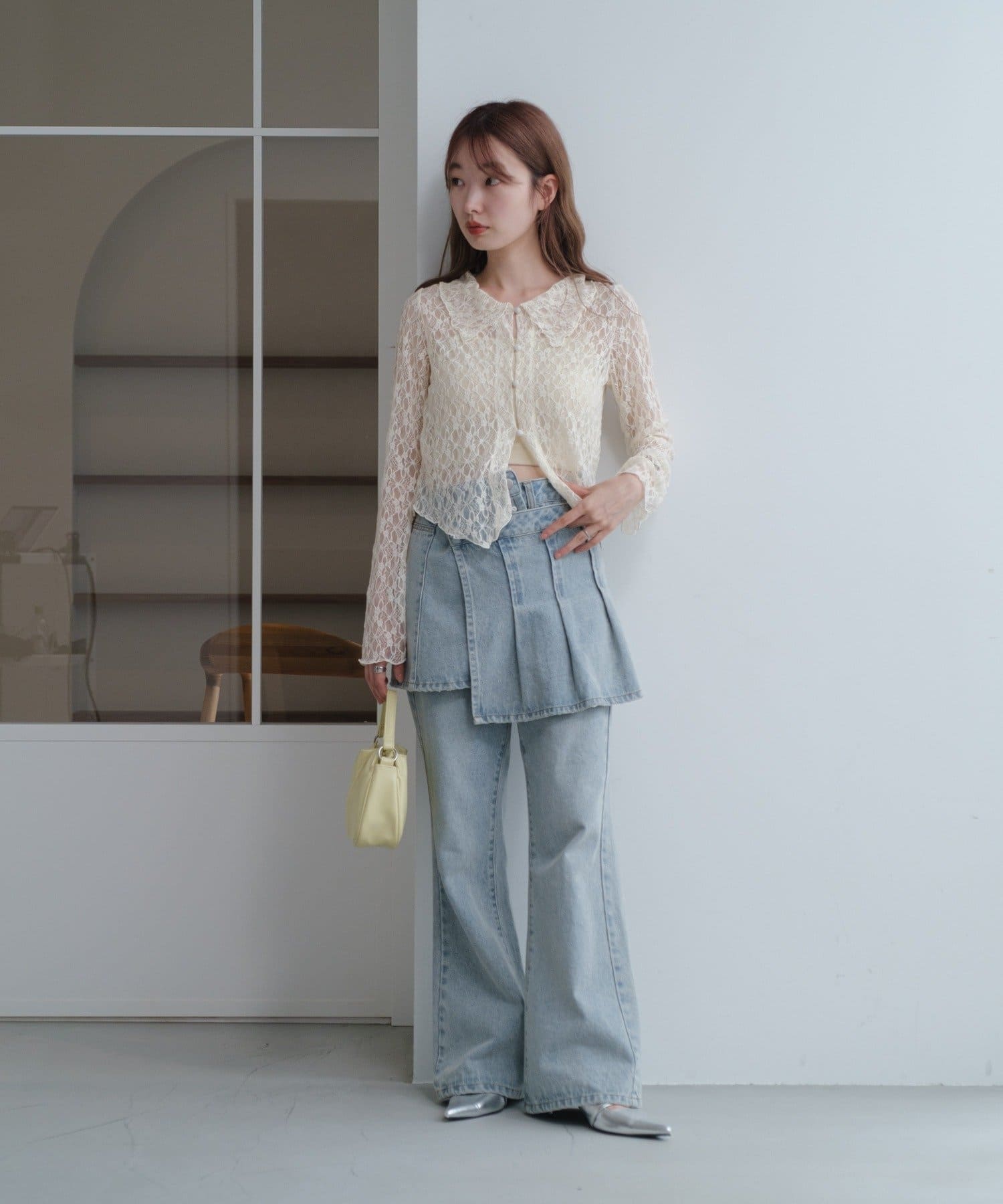 透け感のあるデザインなので、インナー次第で雰囲気が変わります。