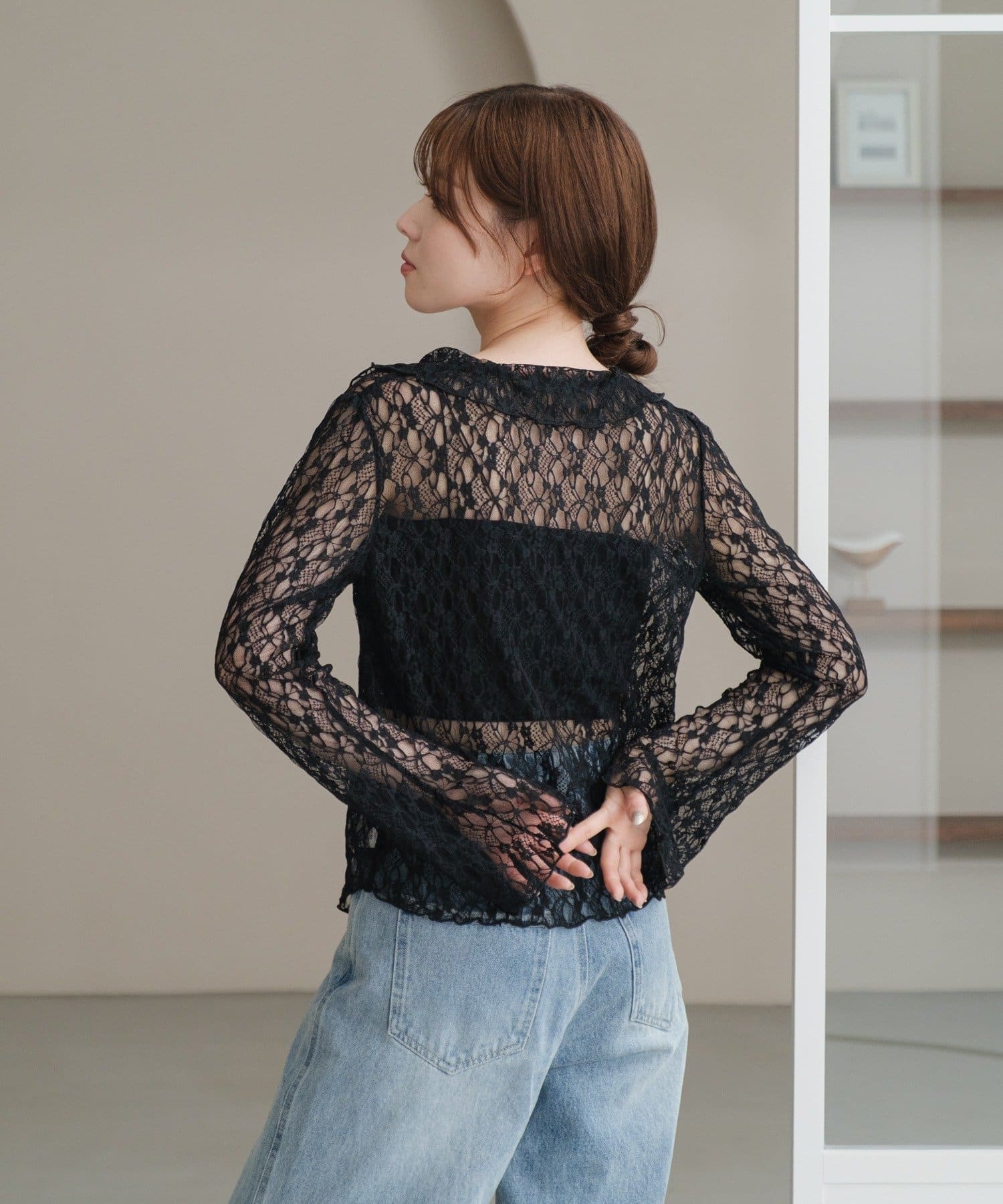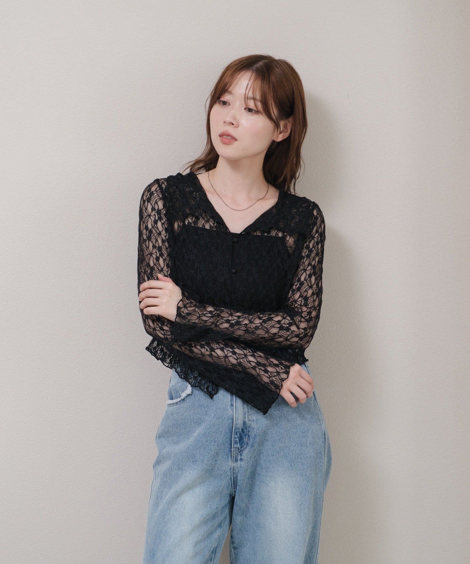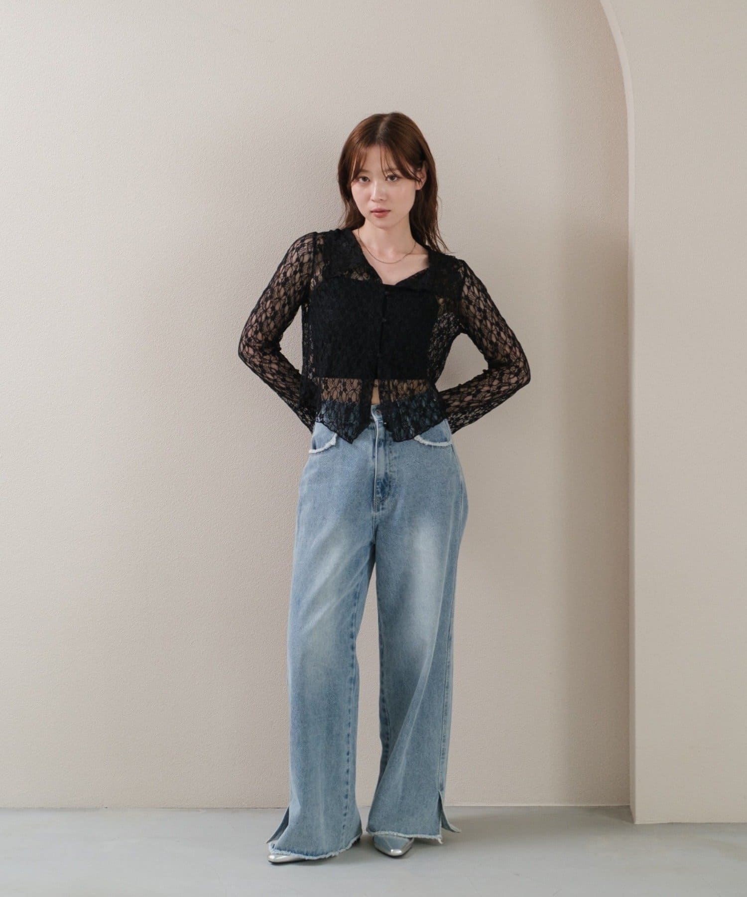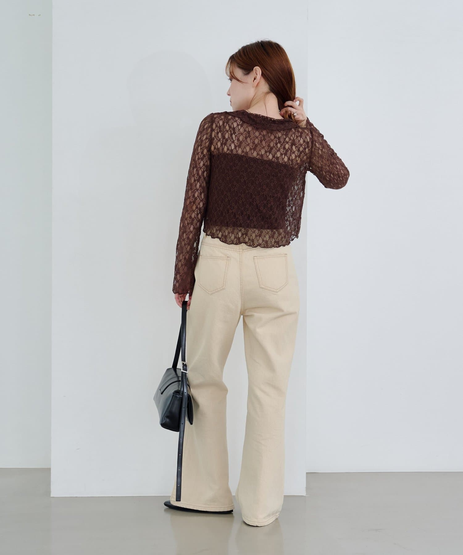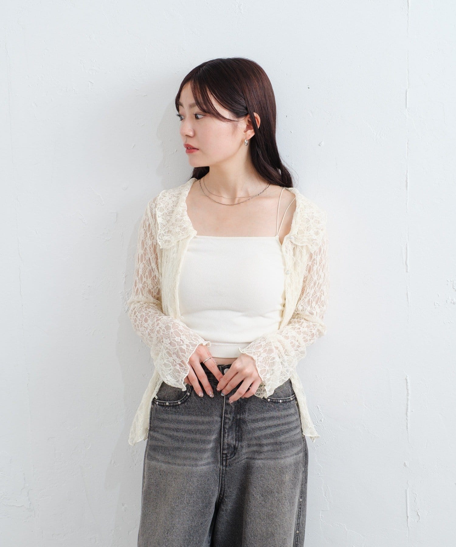 透け感のあるデザインなので、インナー次第で雰囲気が変わります。