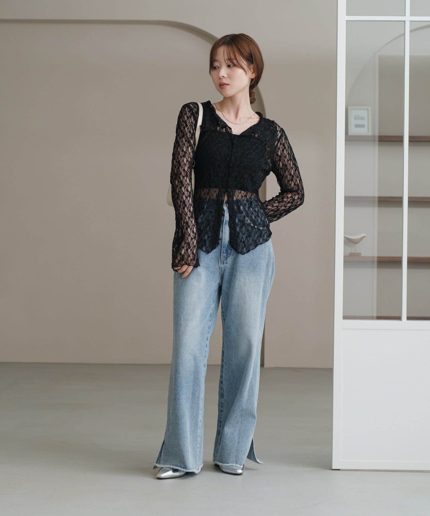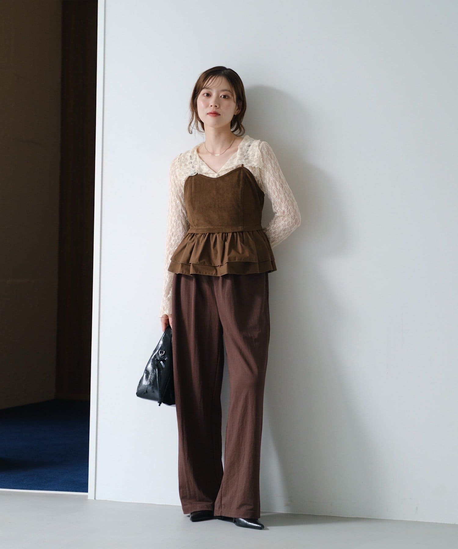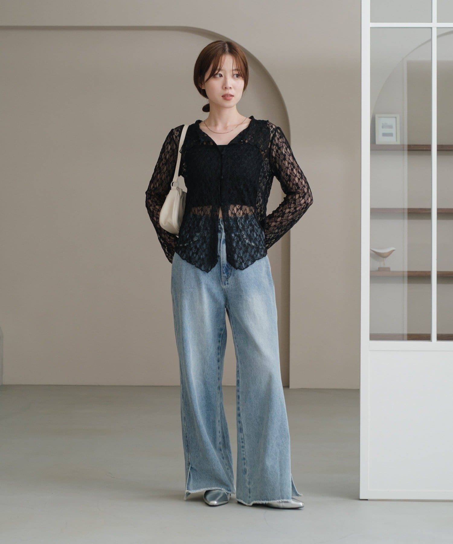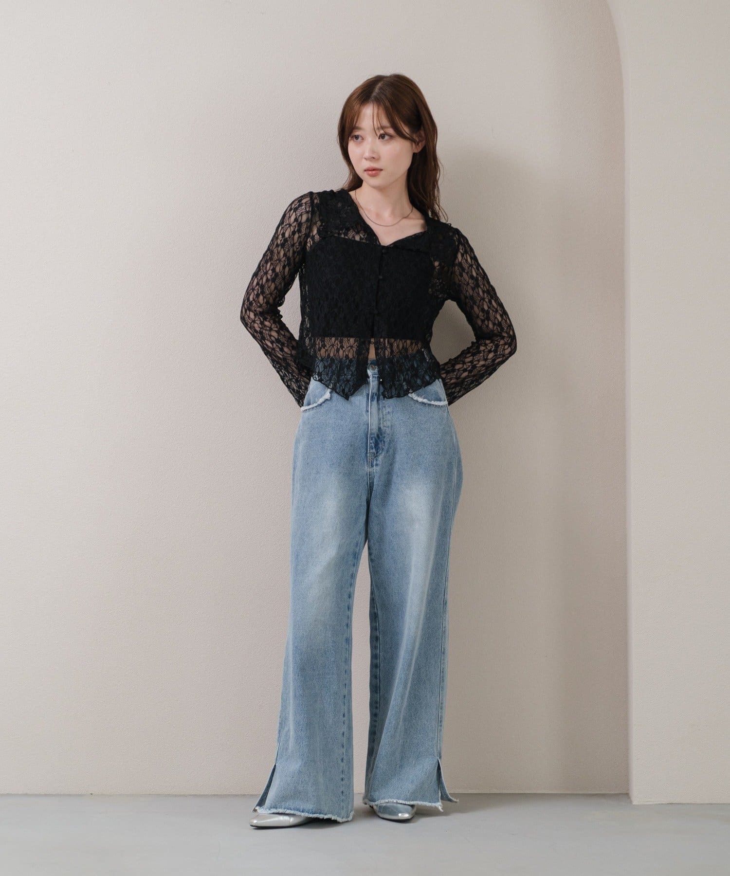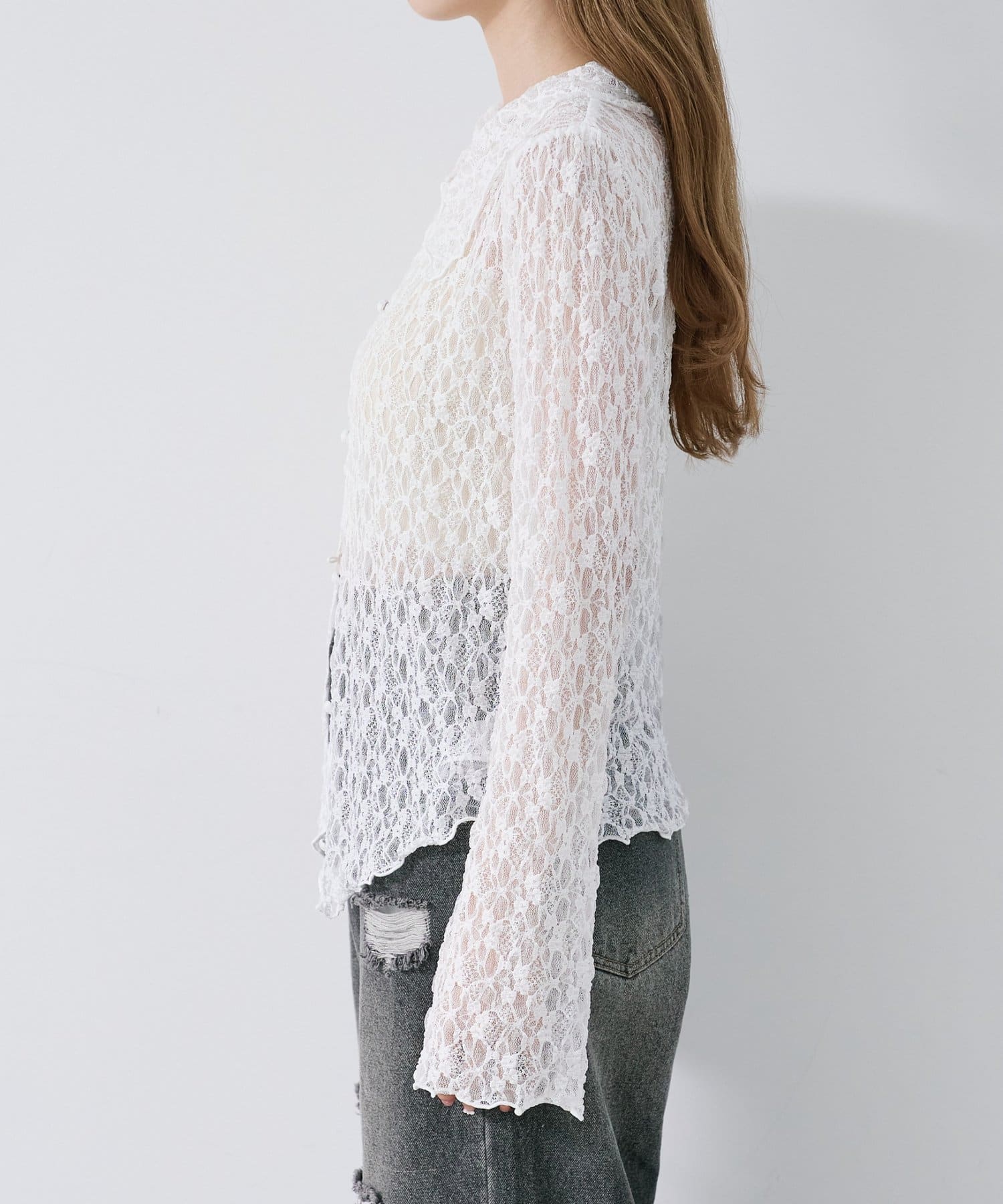 透け感のあるデザインなので、インナー次第で雰囲気が変わります。