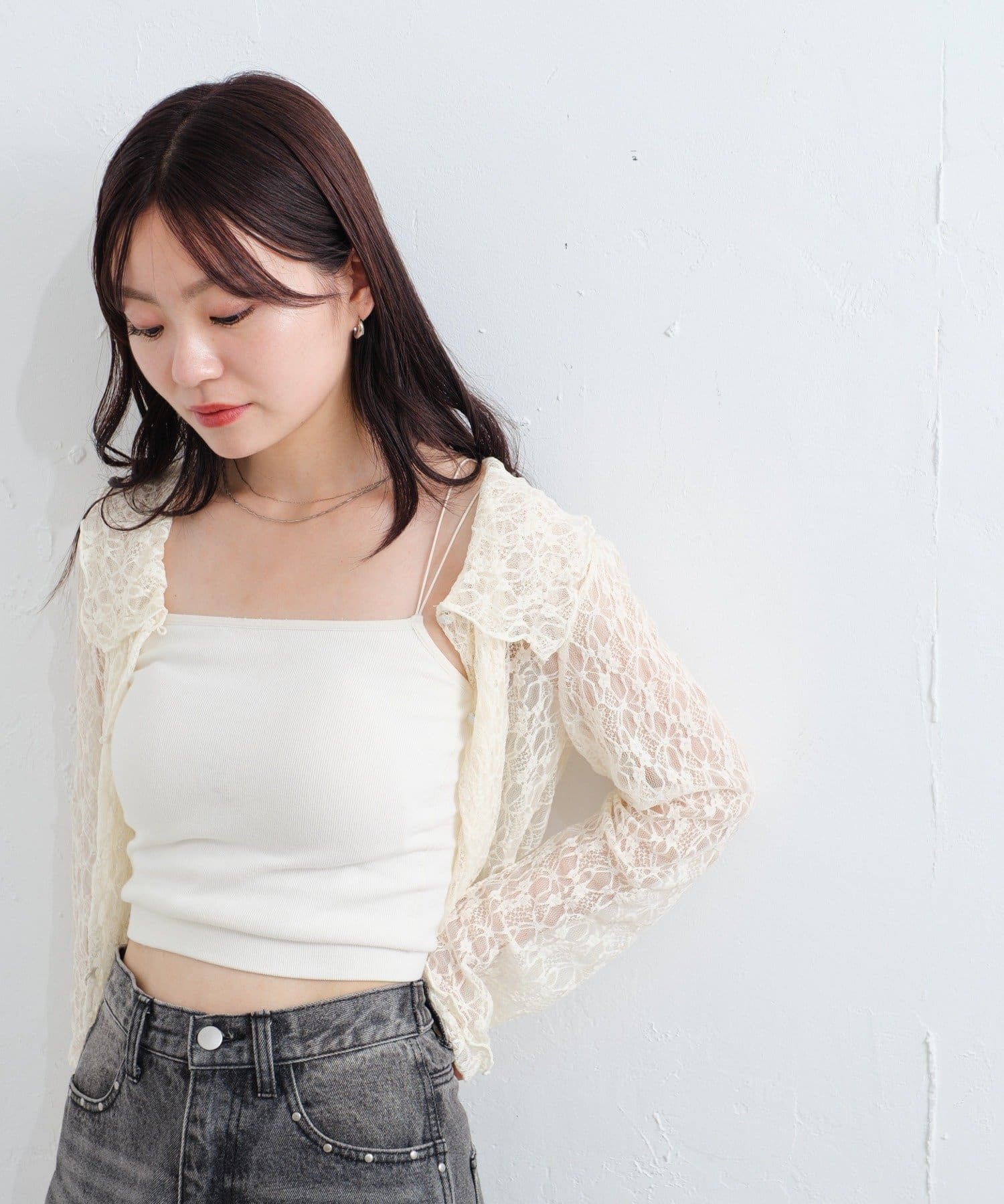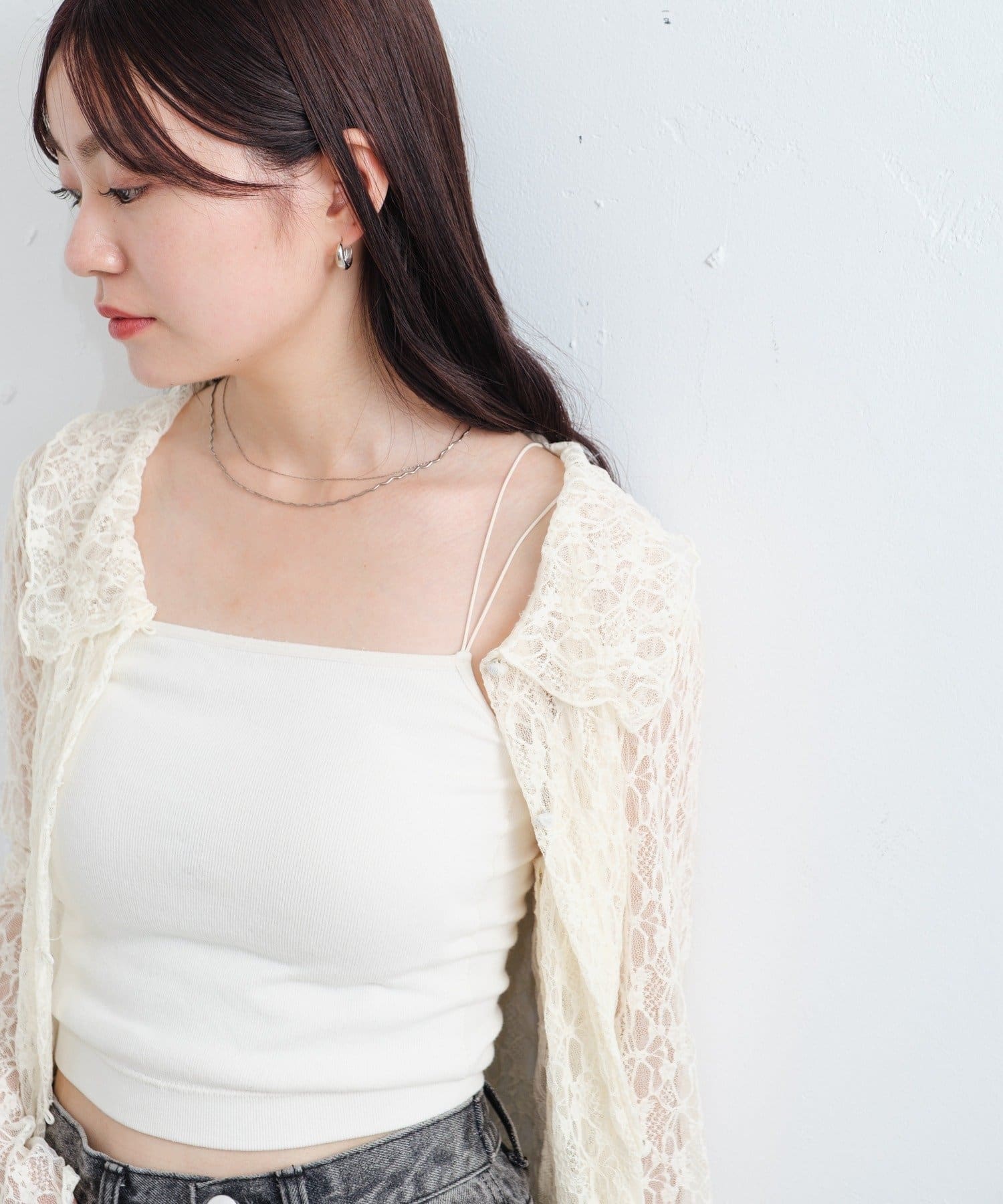 購入場所:パルクローゼットキャミに重ねて着るのも可愛いし、アウターの中に仕込んでチラ見せして着るのも可愛いです!