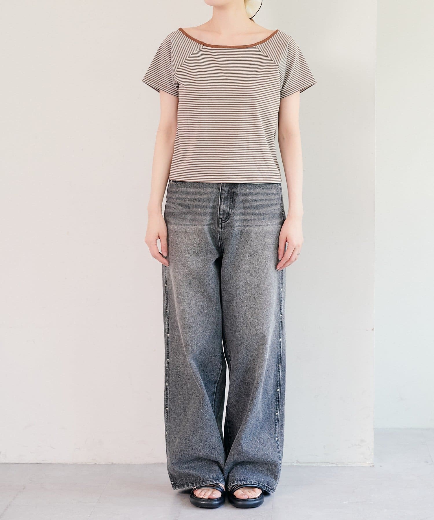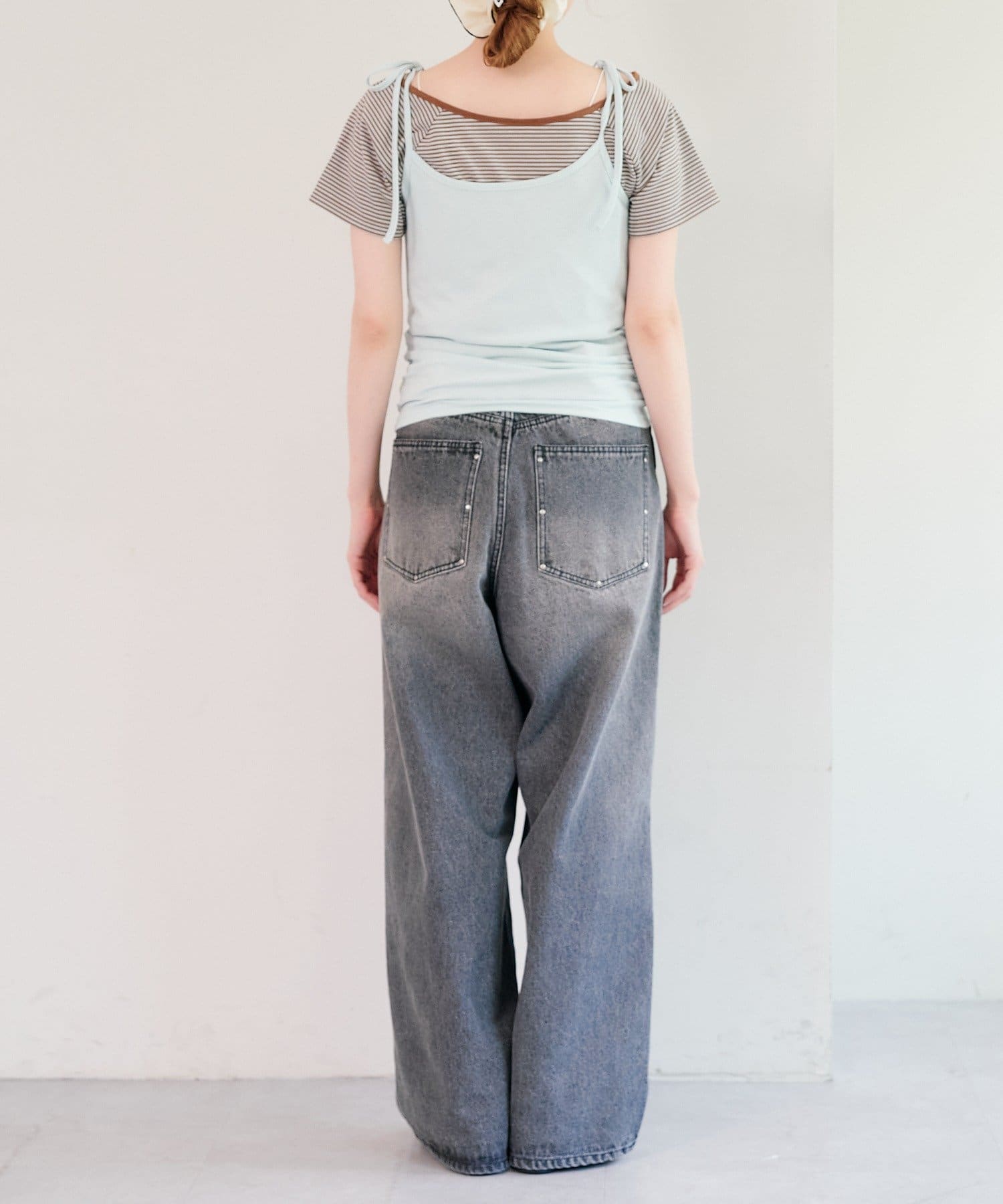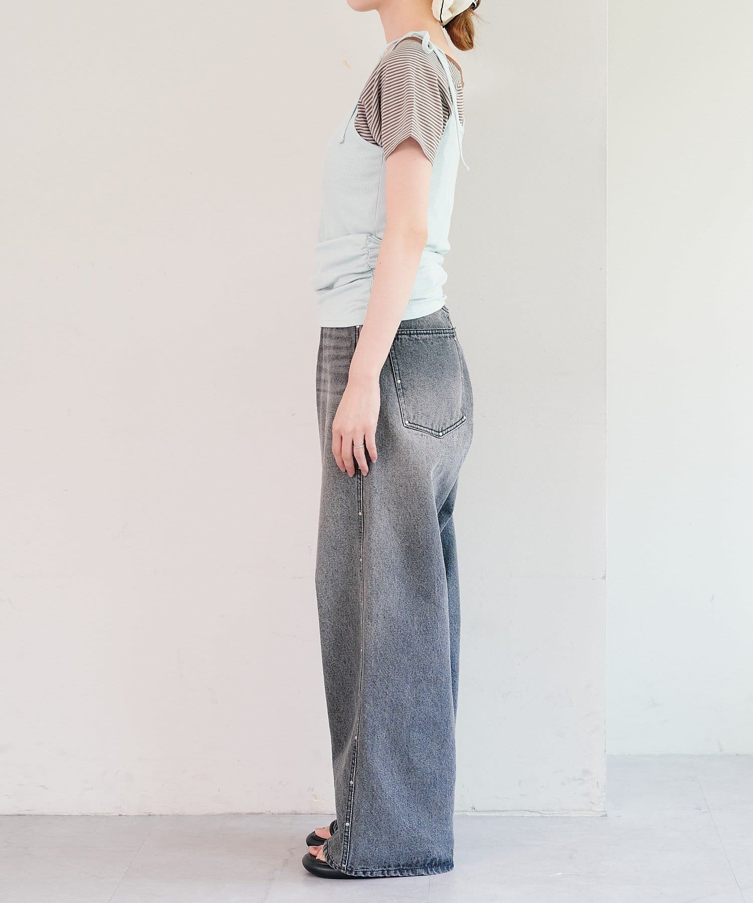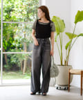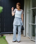 主役になるトップスなのでシンプルなボトム合わせがおすすめ。