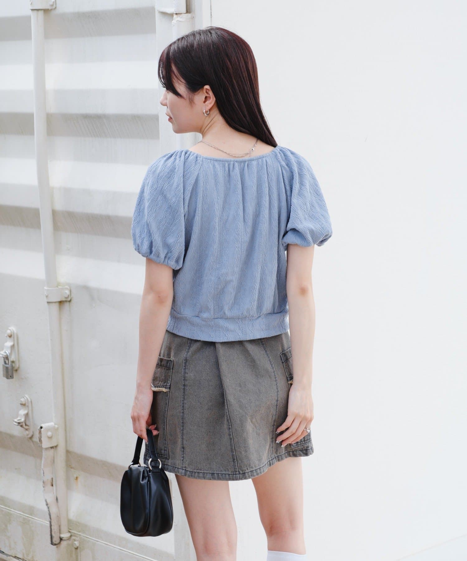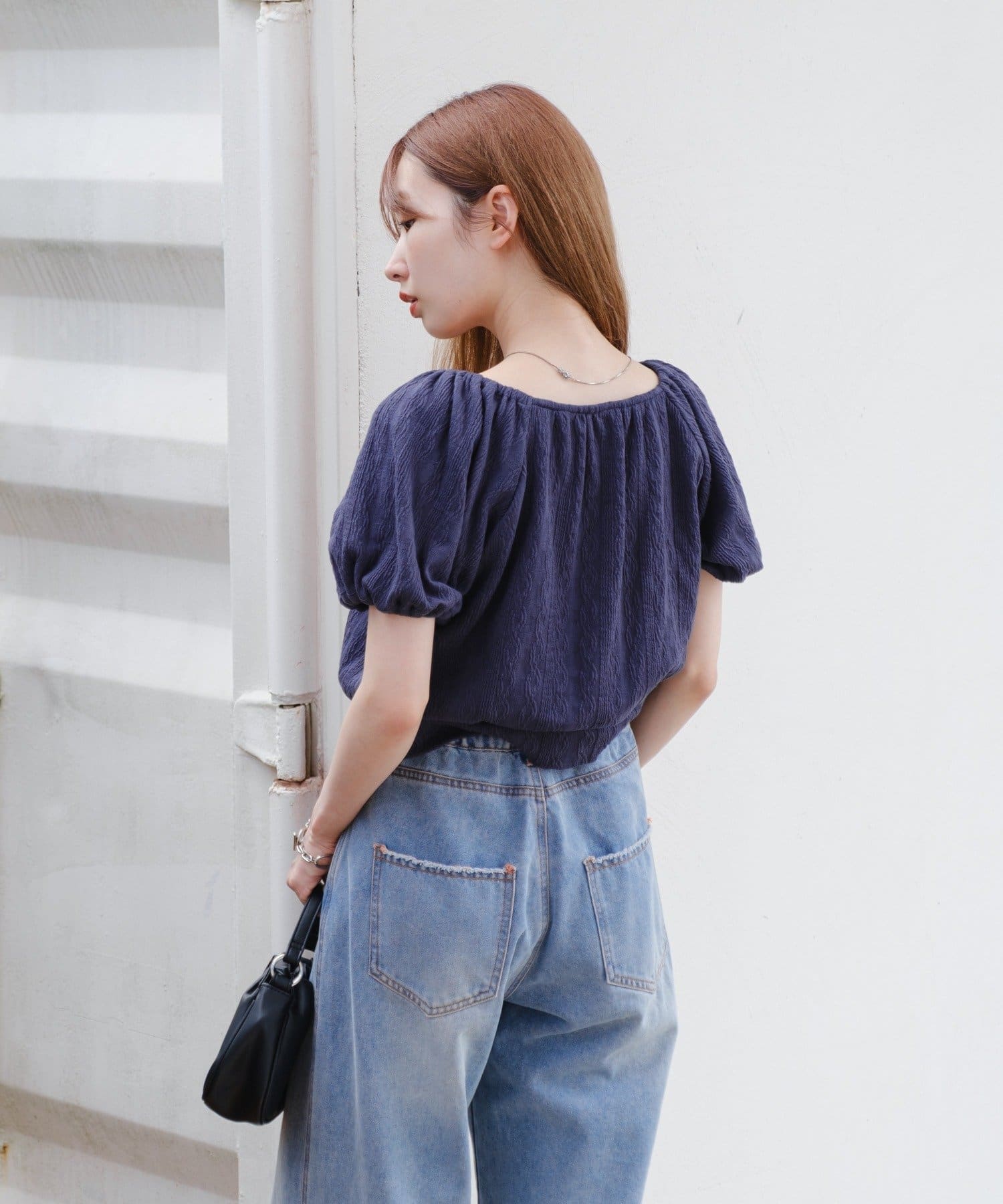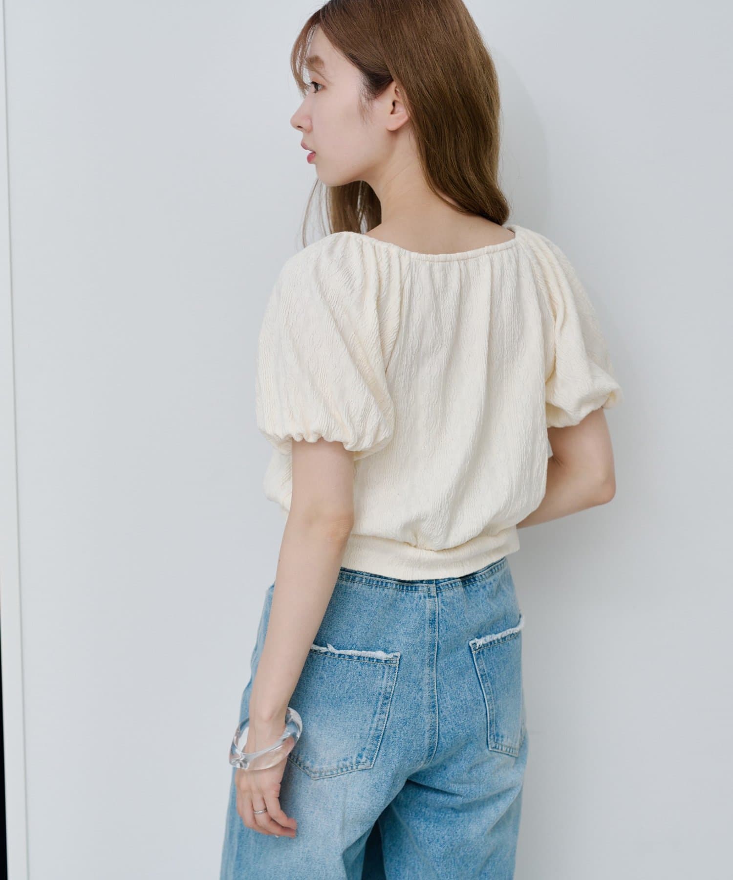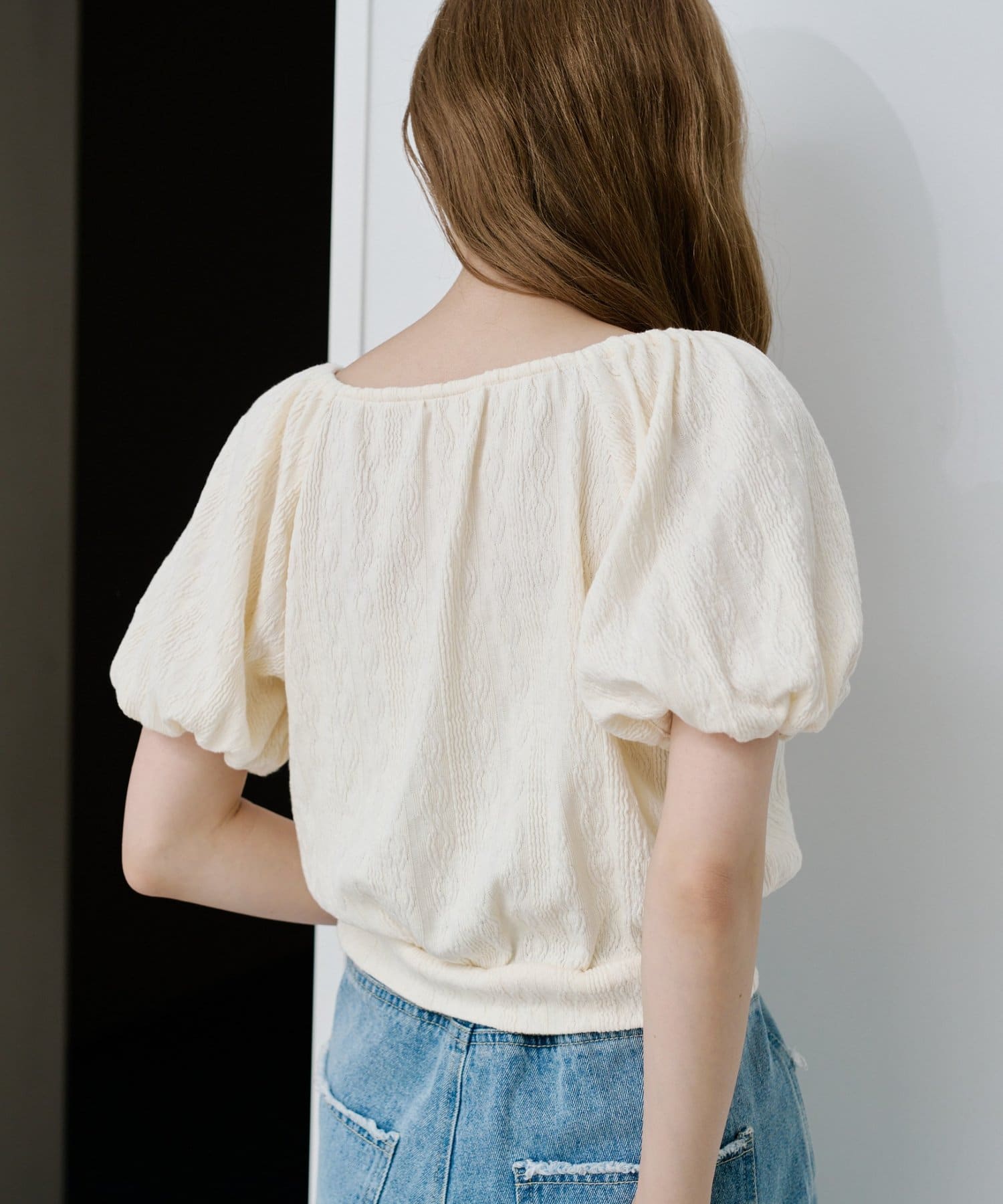ボリューム感のあるパフスリーブで腕周りを華奢見えします。