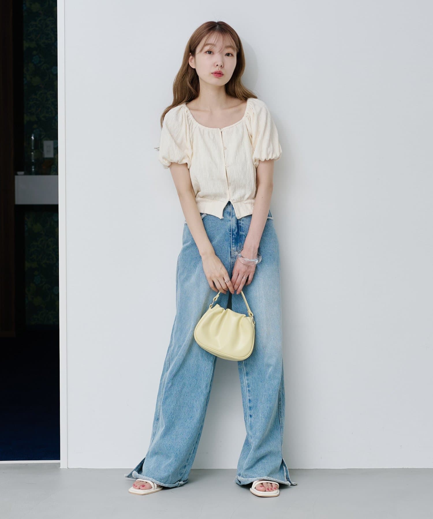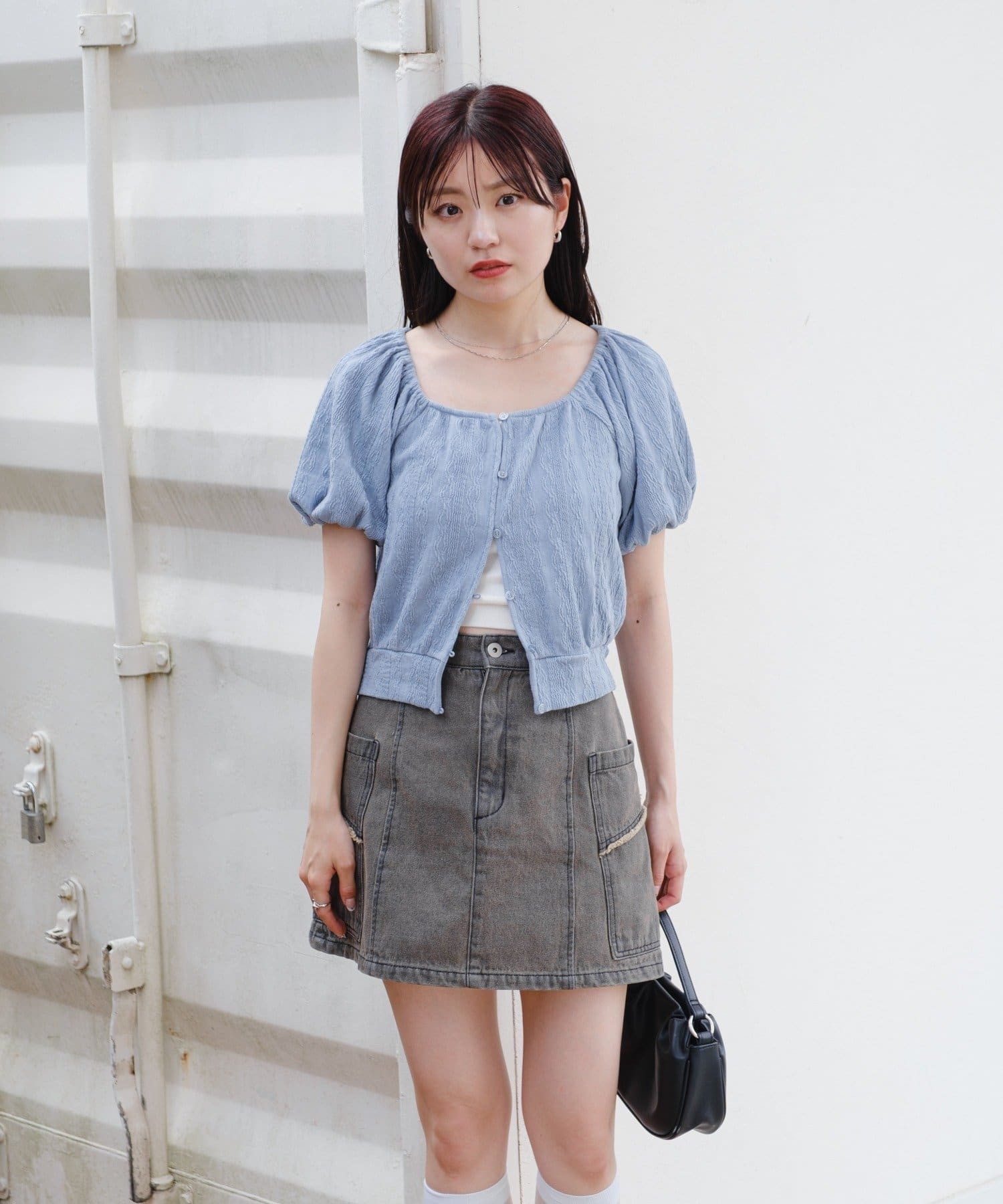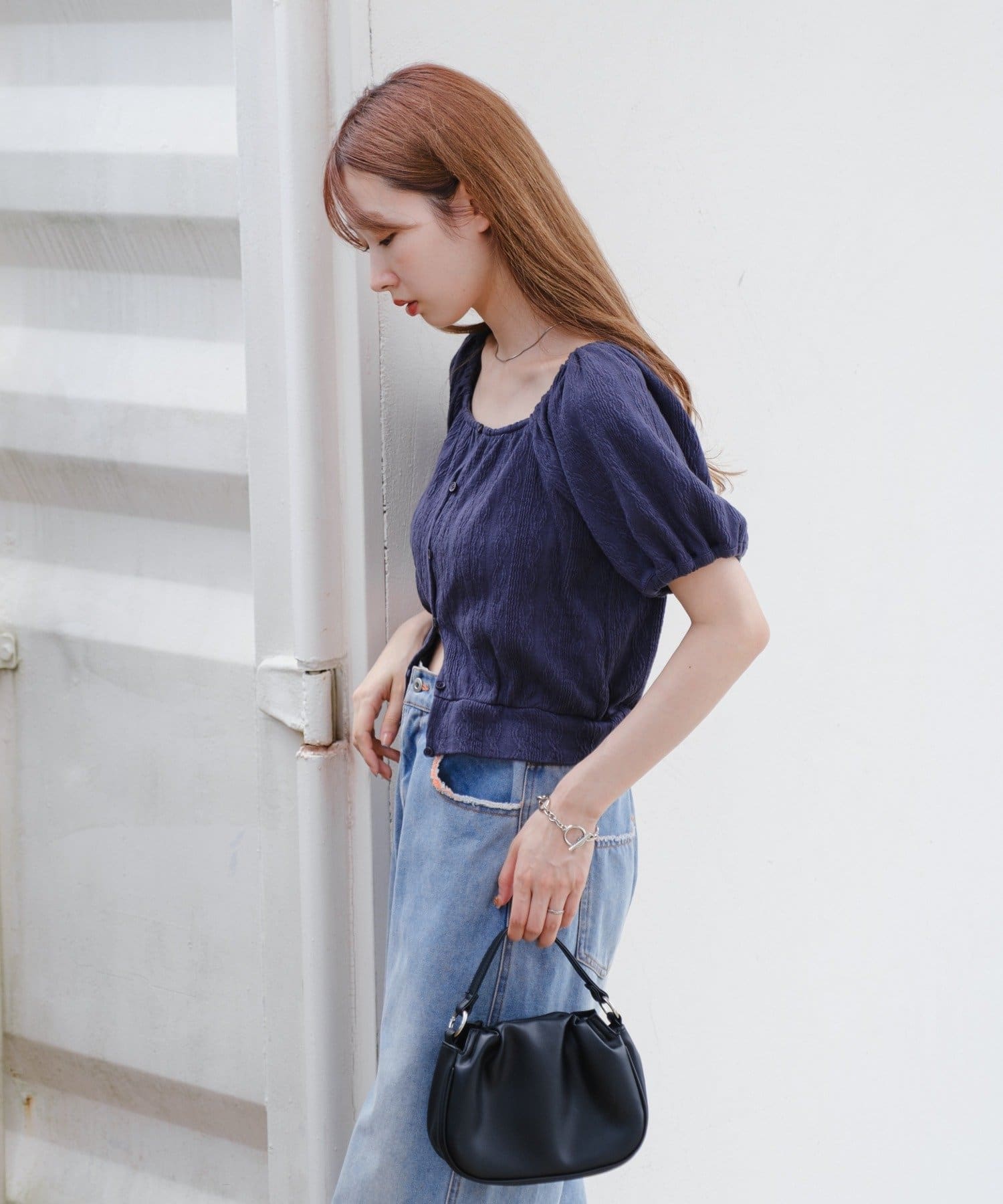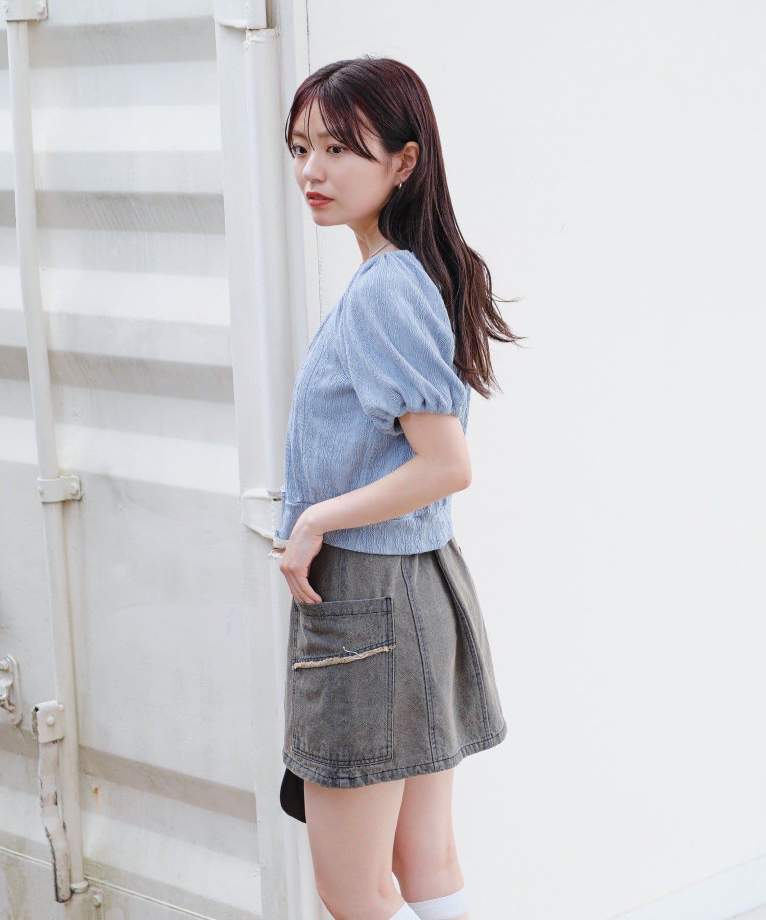 ボリューム感のあるパフスリーブで腕周りを華奢見えします。