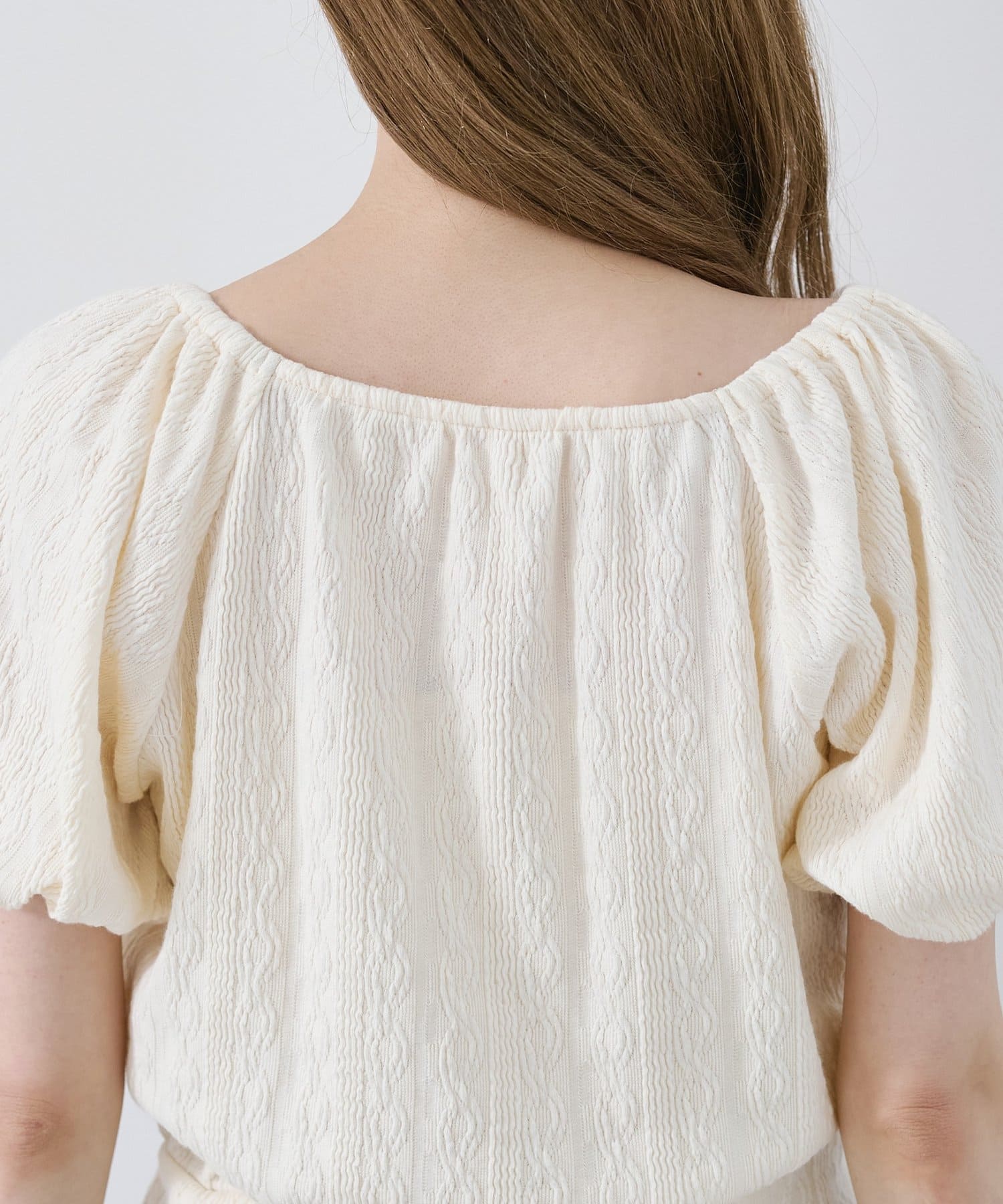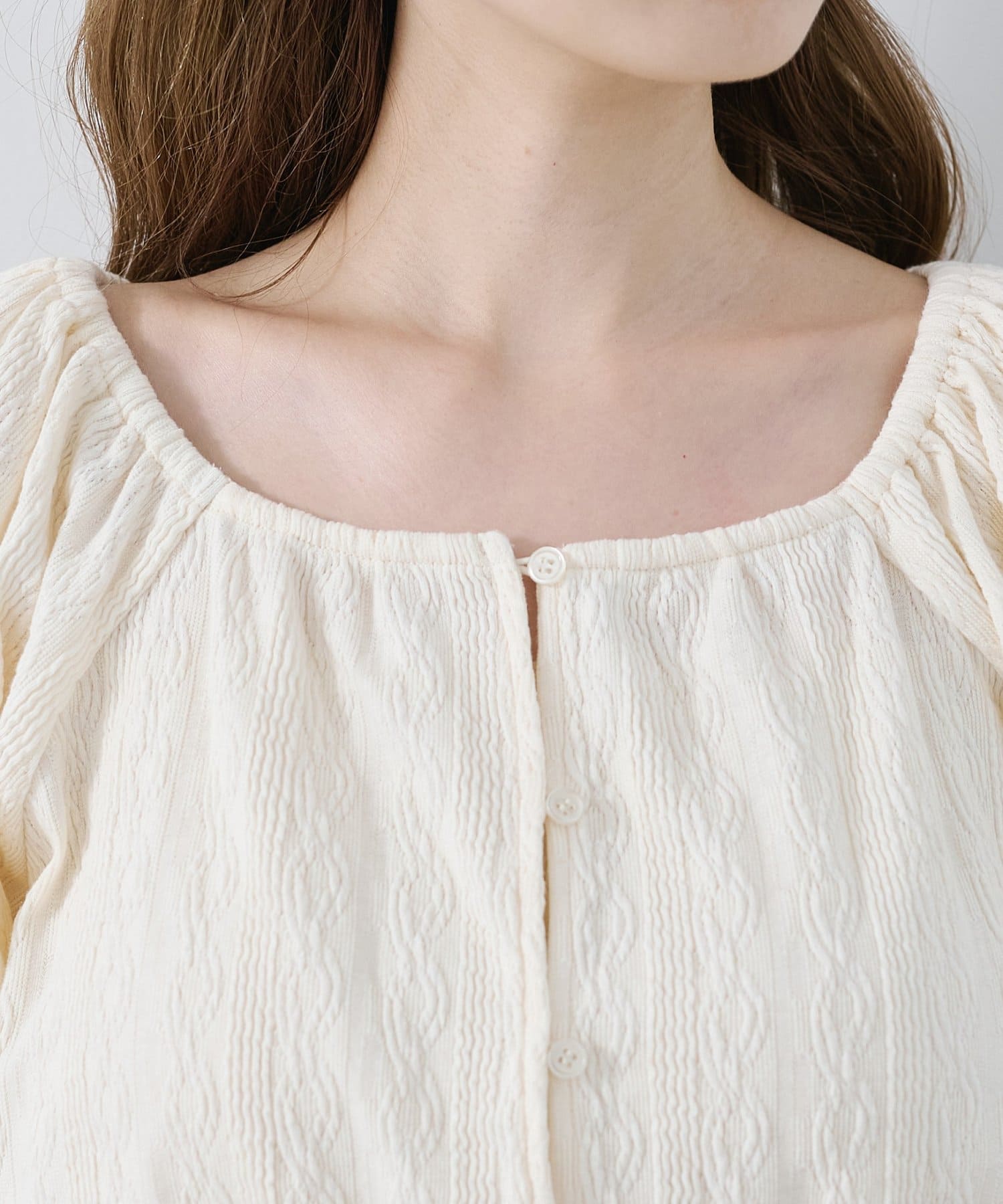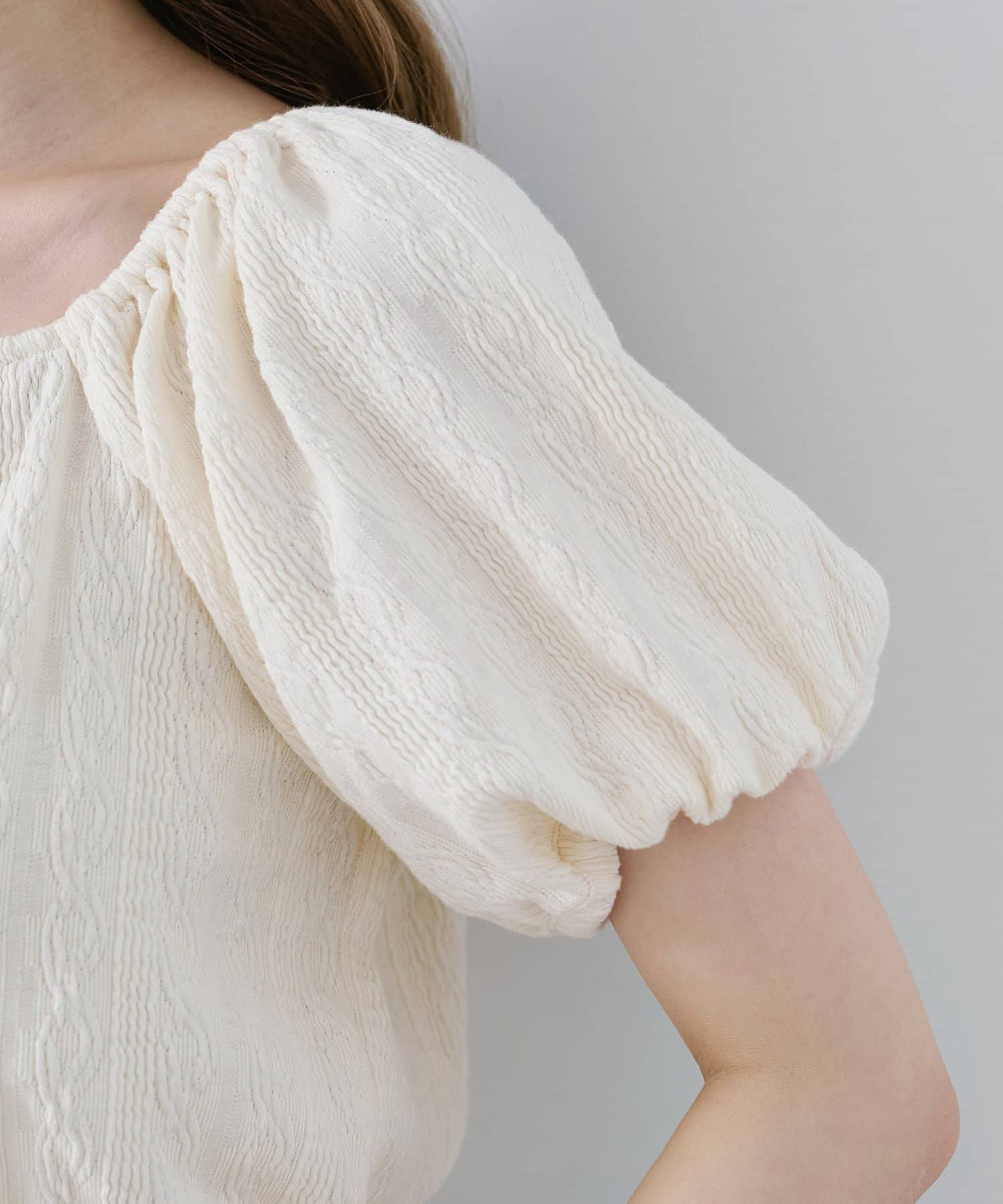 繊細なケーブル調のカットソー素材で、風合いが魅力的。