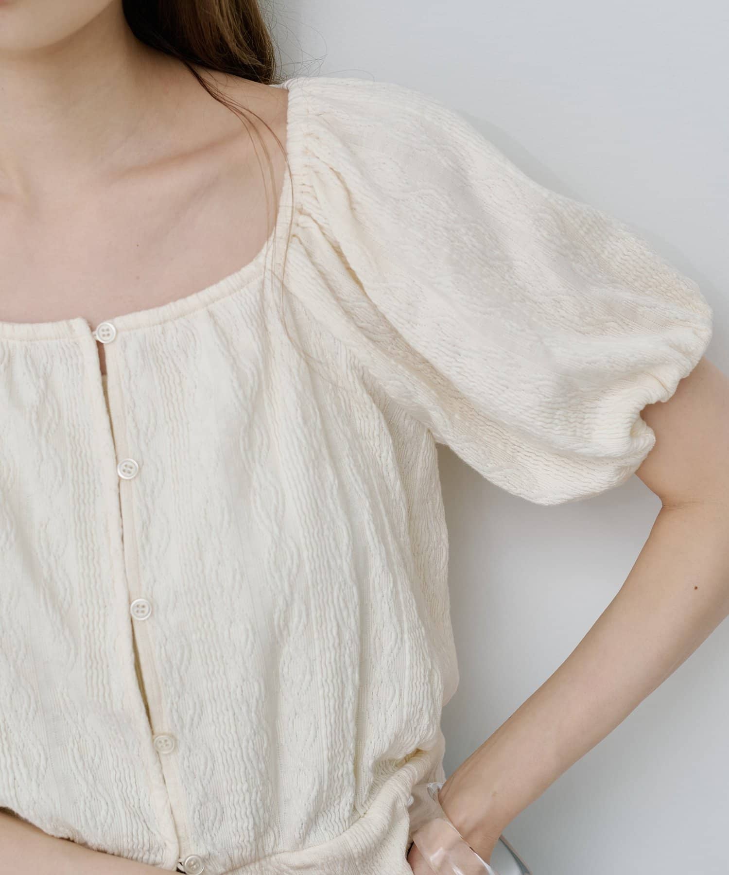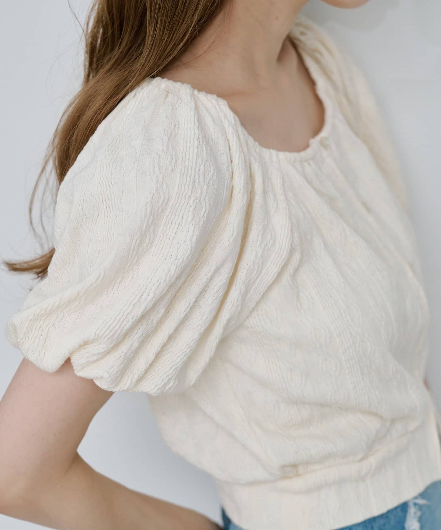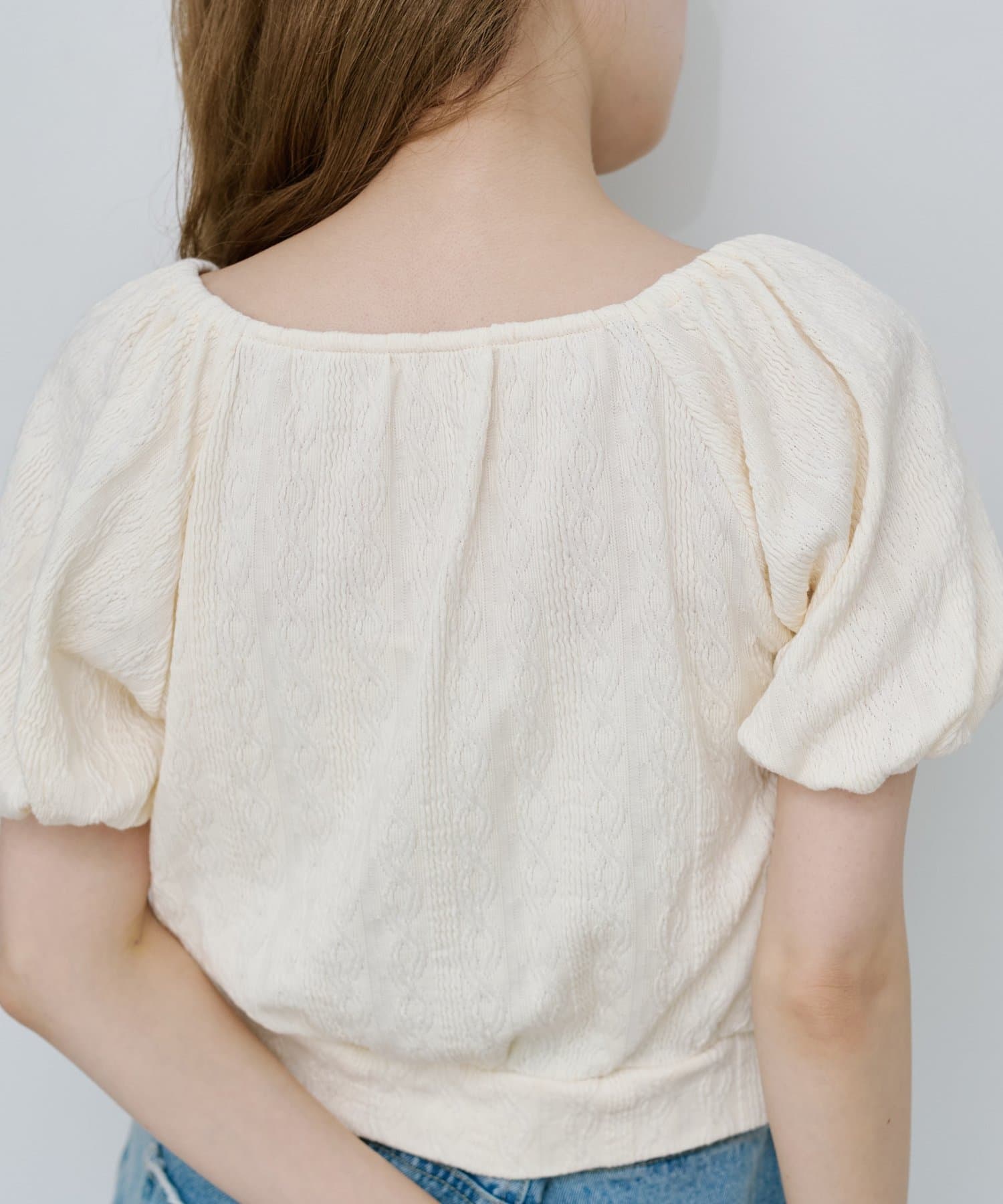繊細なケーブル調のカットソー素材で、風合いが魅力的。
