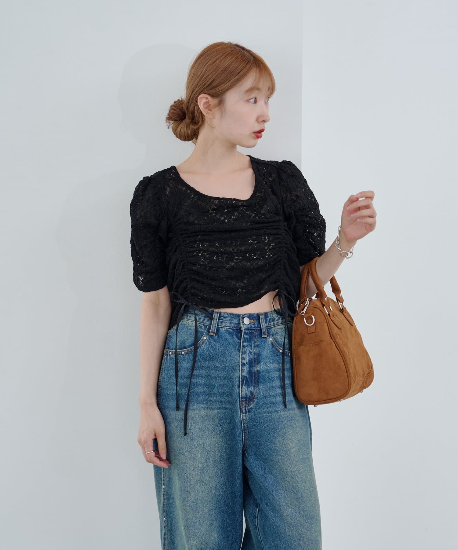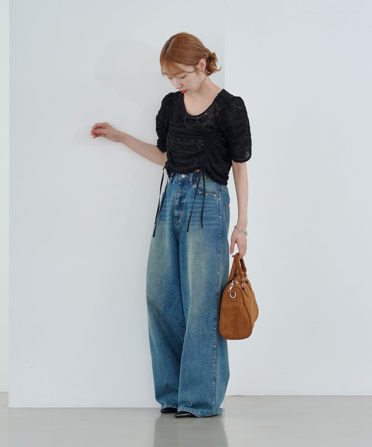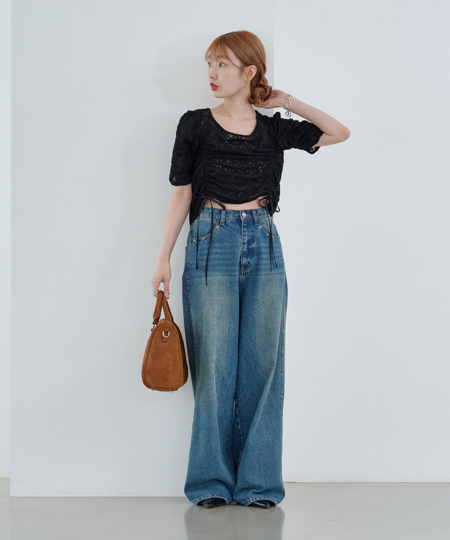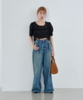 コンパクトトップスはボリュームのあるボトムとの相性抜群。