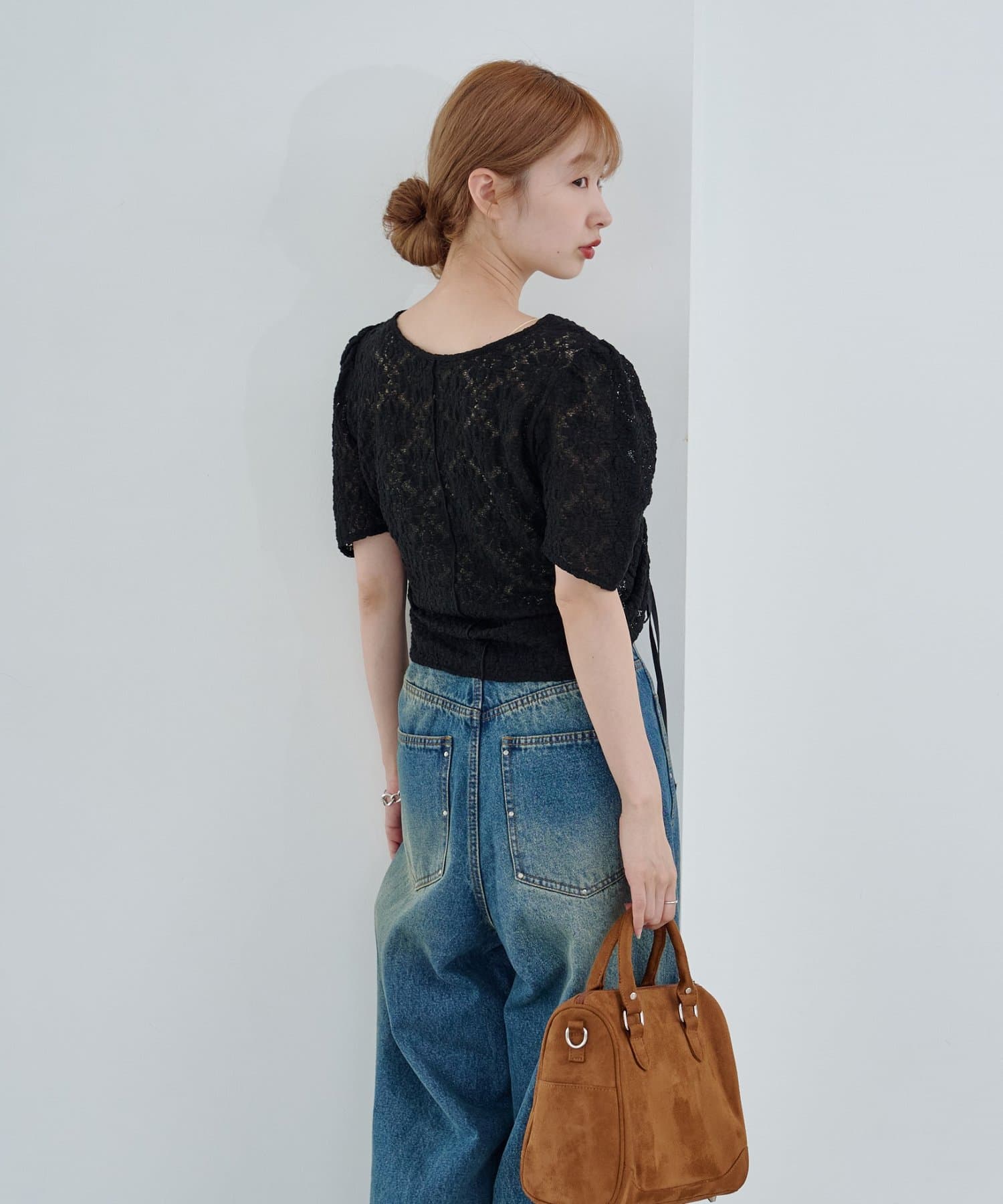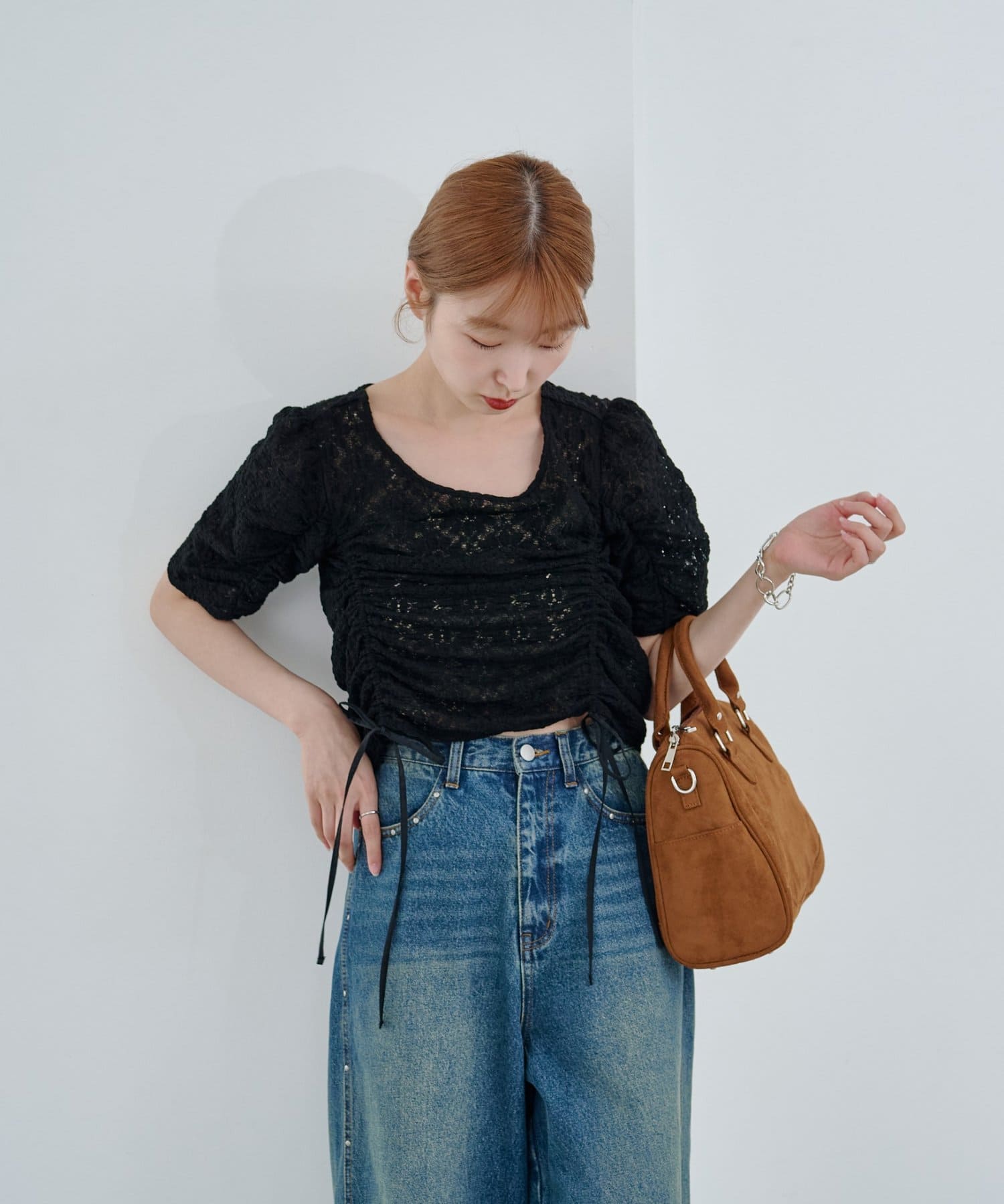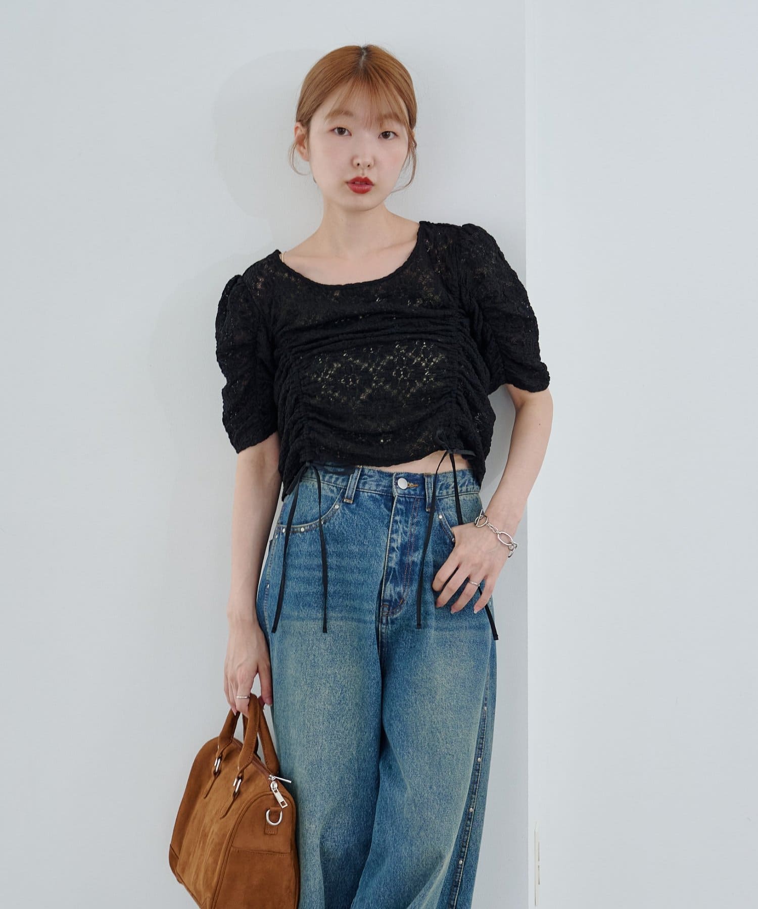 コンパクトトップスはボリュームのあるボトムとの相性抜群。