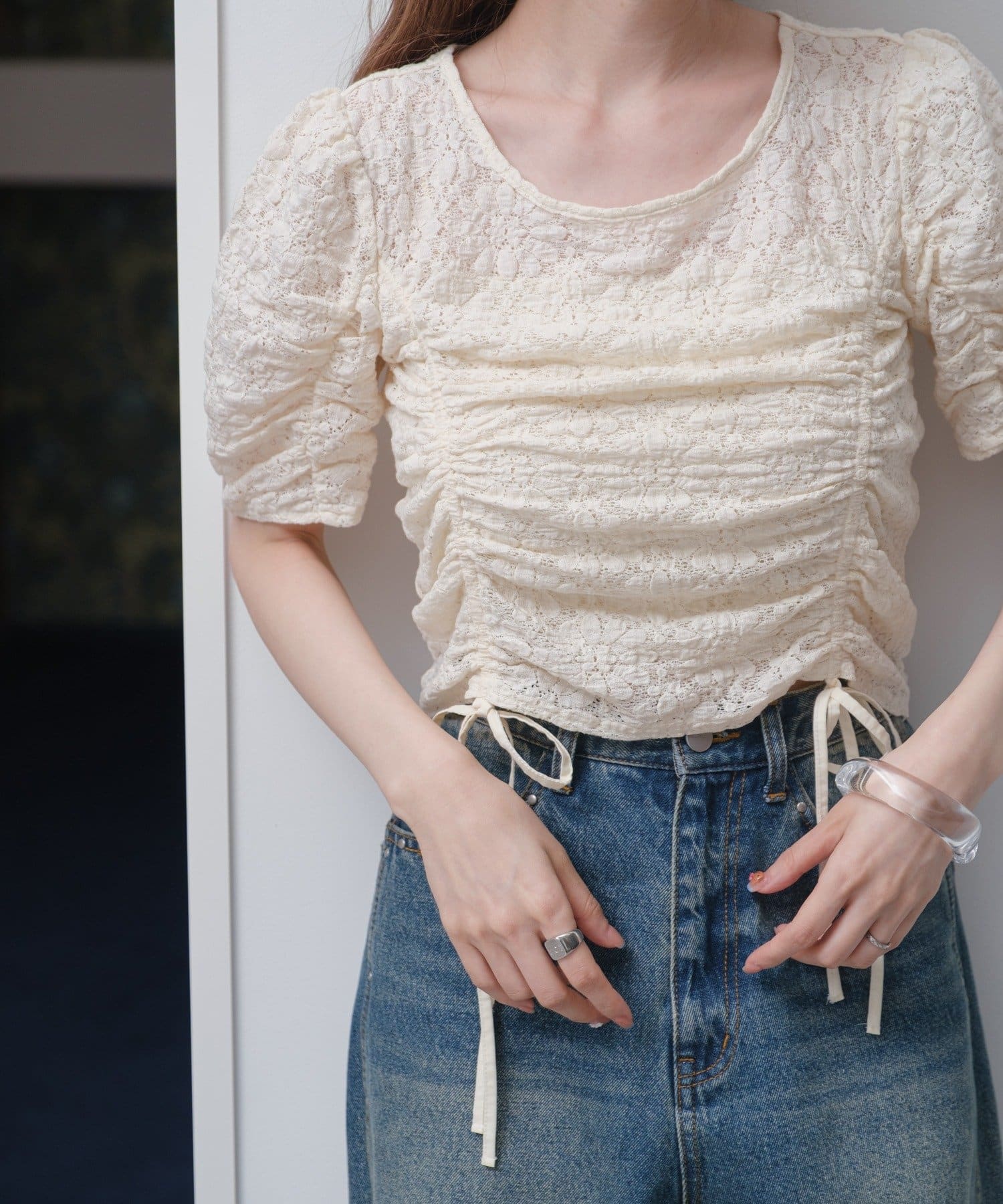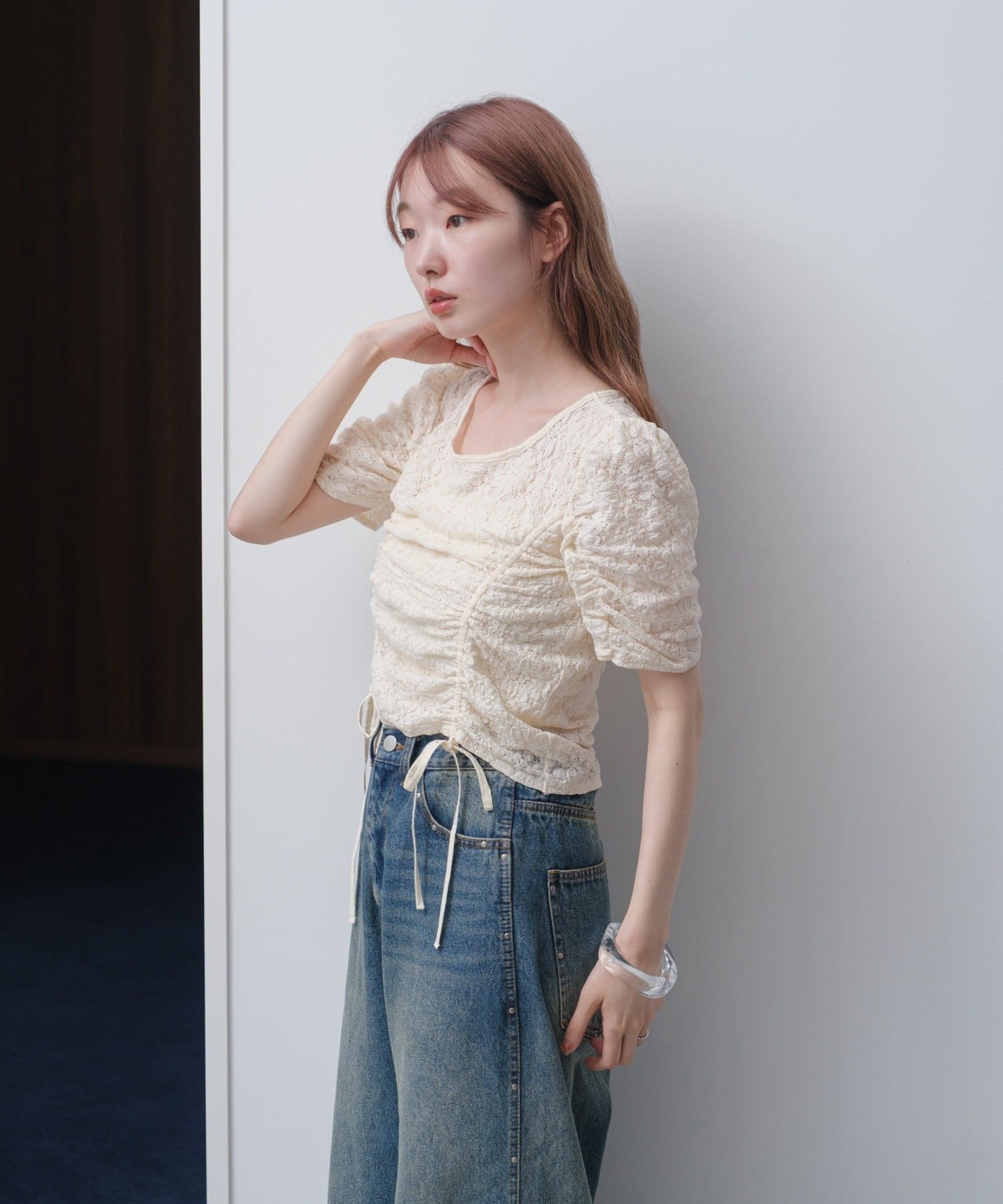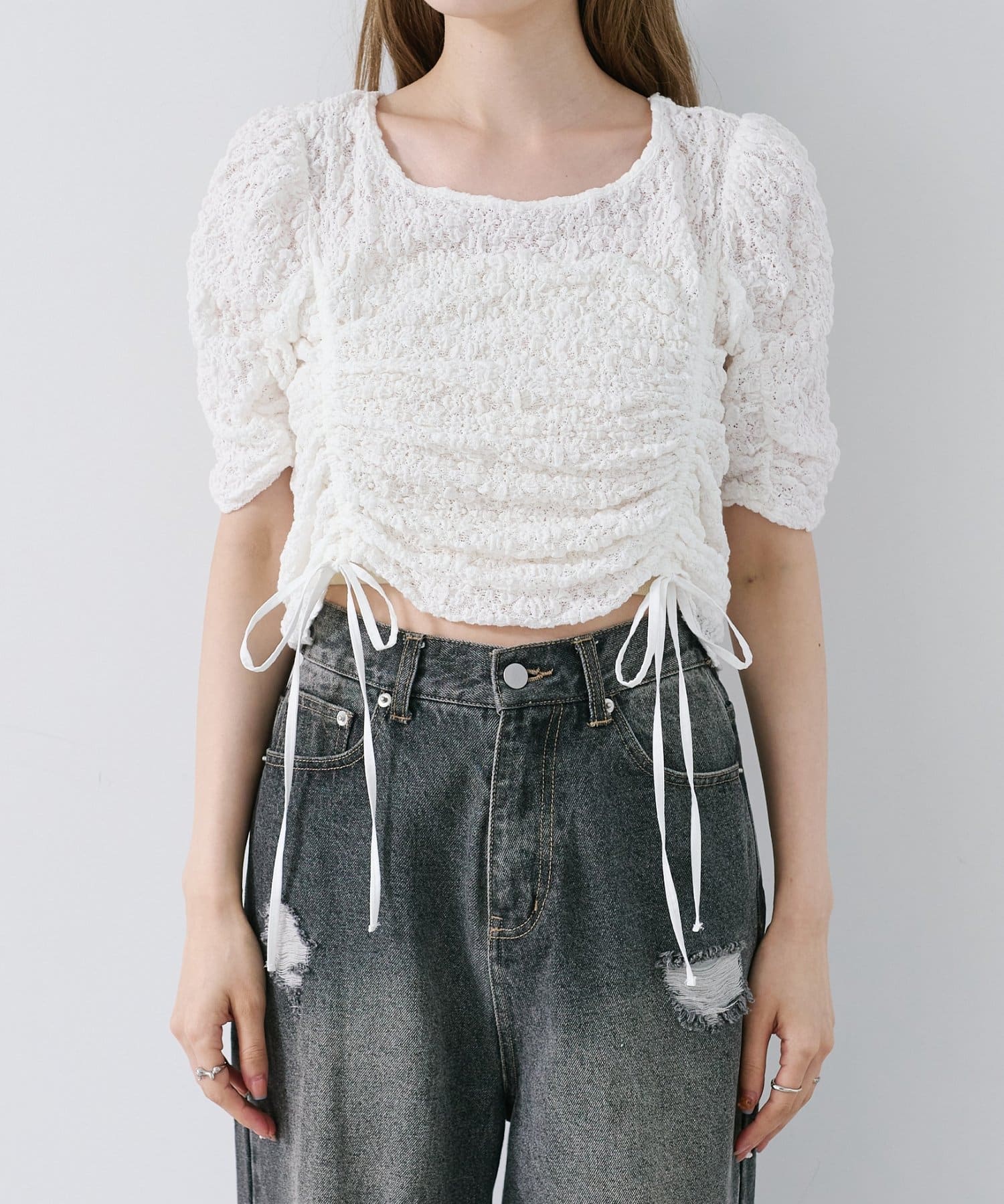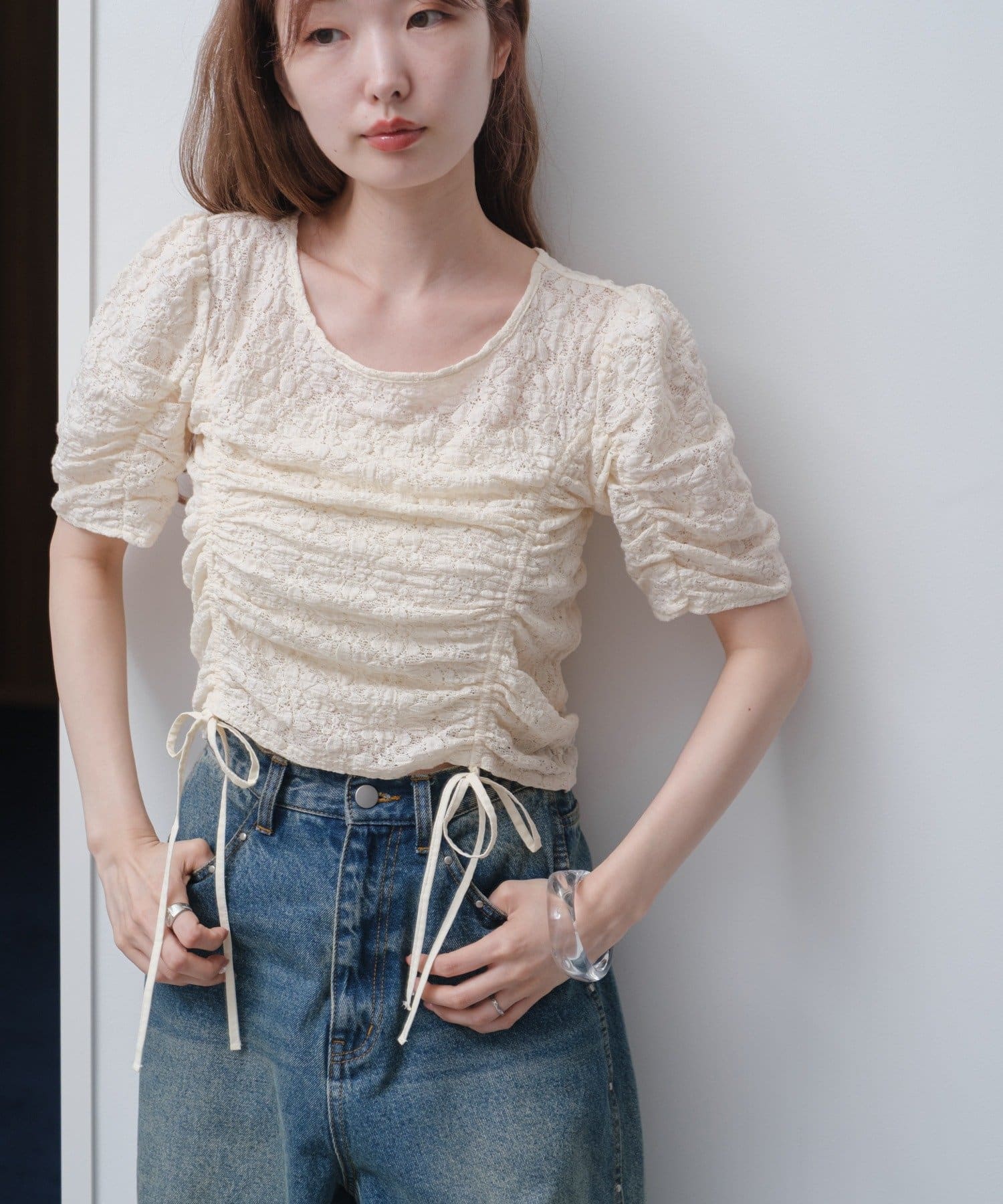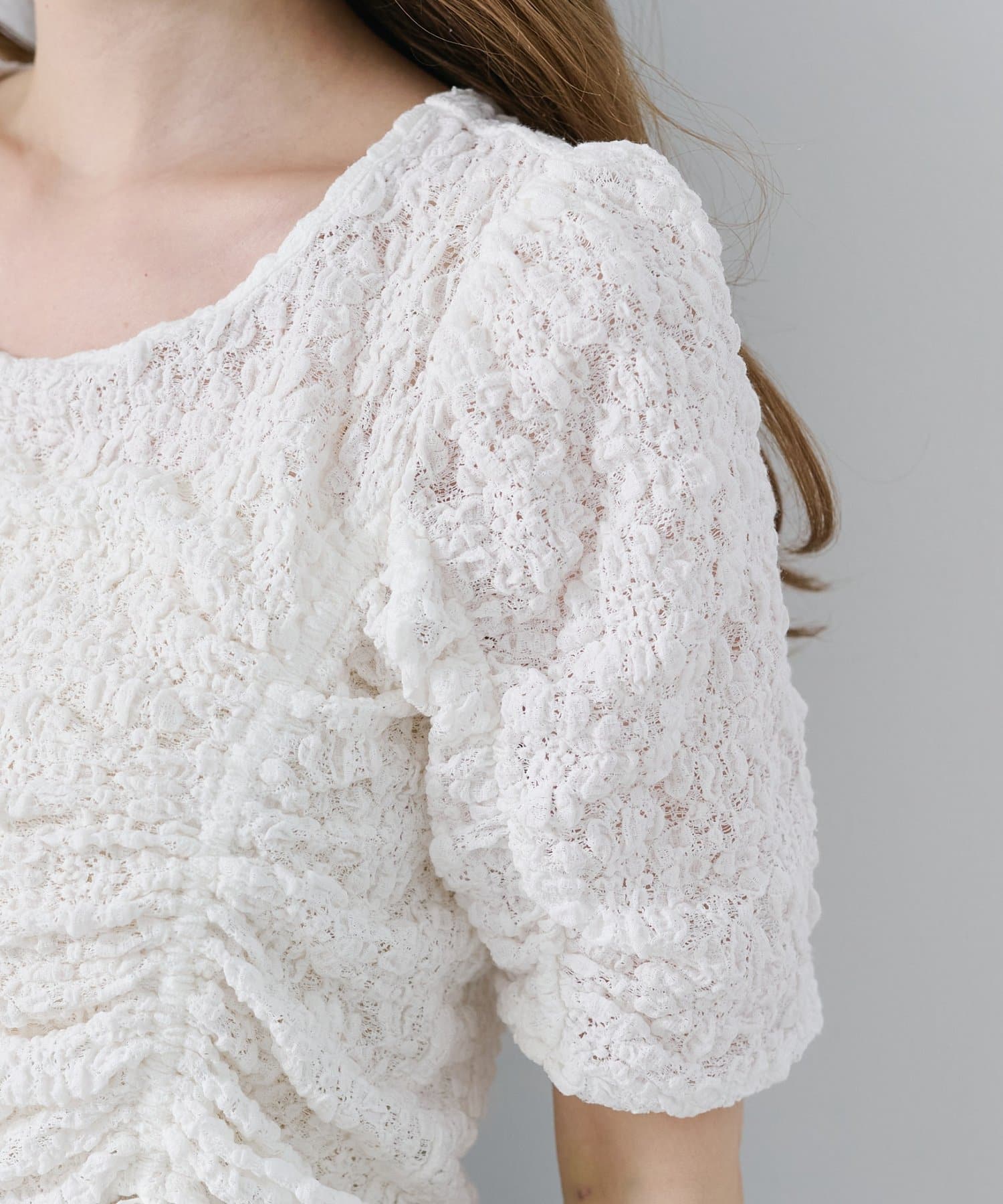 程よく透け感があり、肌に隙間が出来るようなぽこぽことした生地感は夏にぴったり。