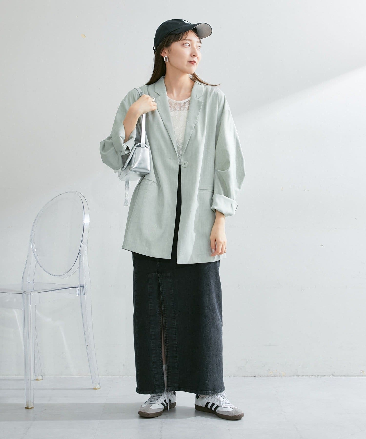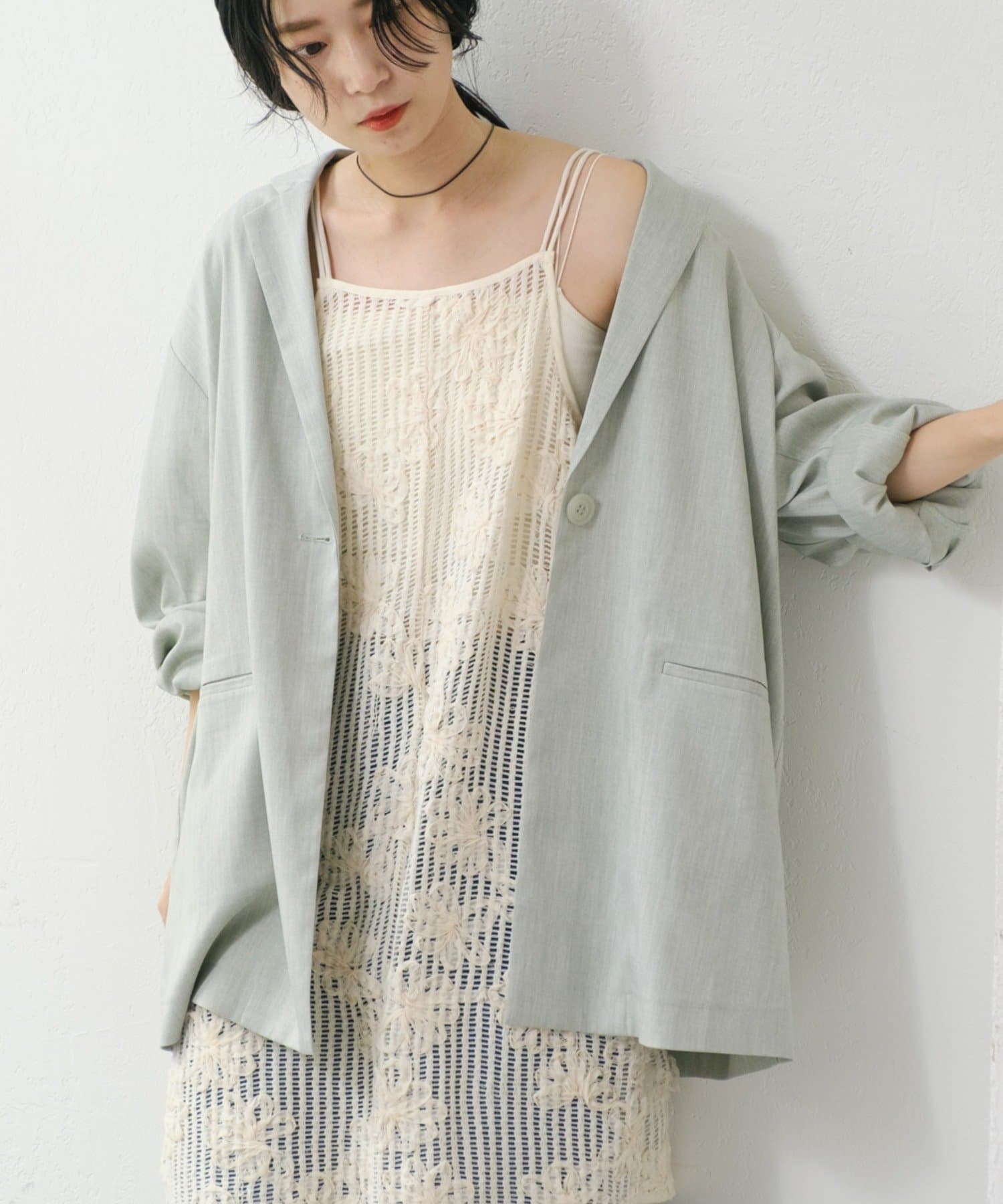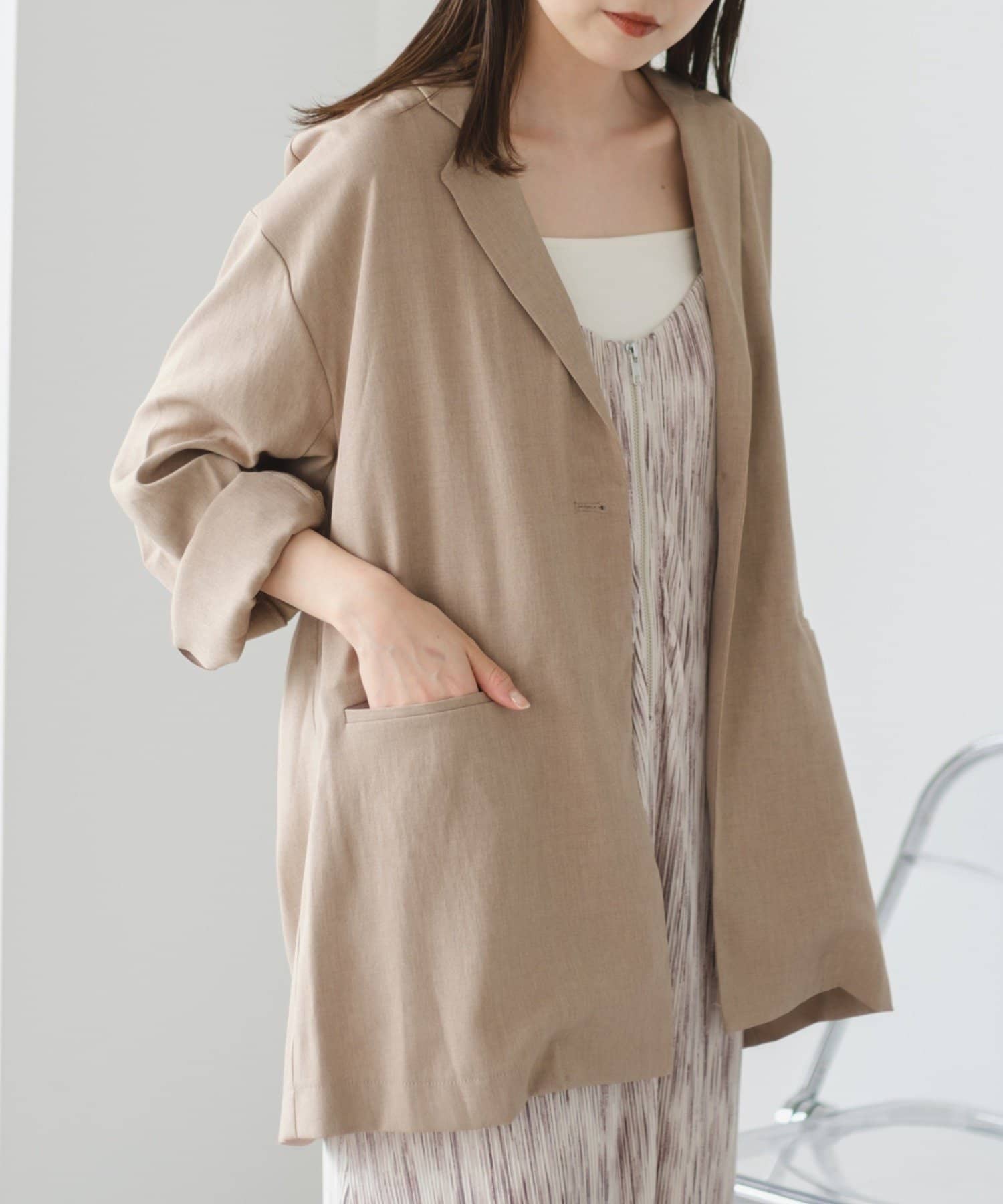 購入場所:店舗サイズ感もゆったりで生地感も裏地なしのタイプなので、夏でも羽織として大活躍してくれそうです!こんなジャケット欲しかった!