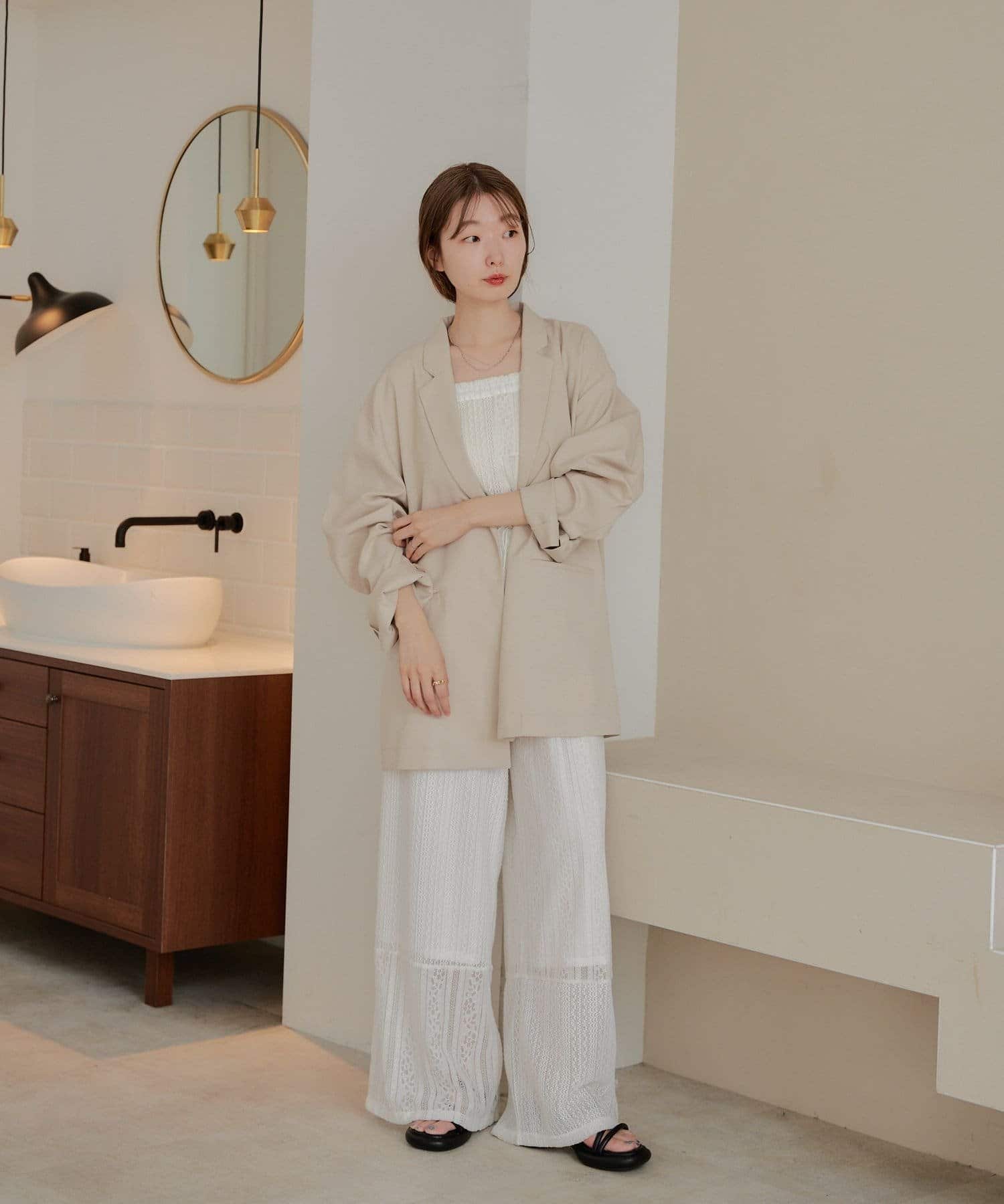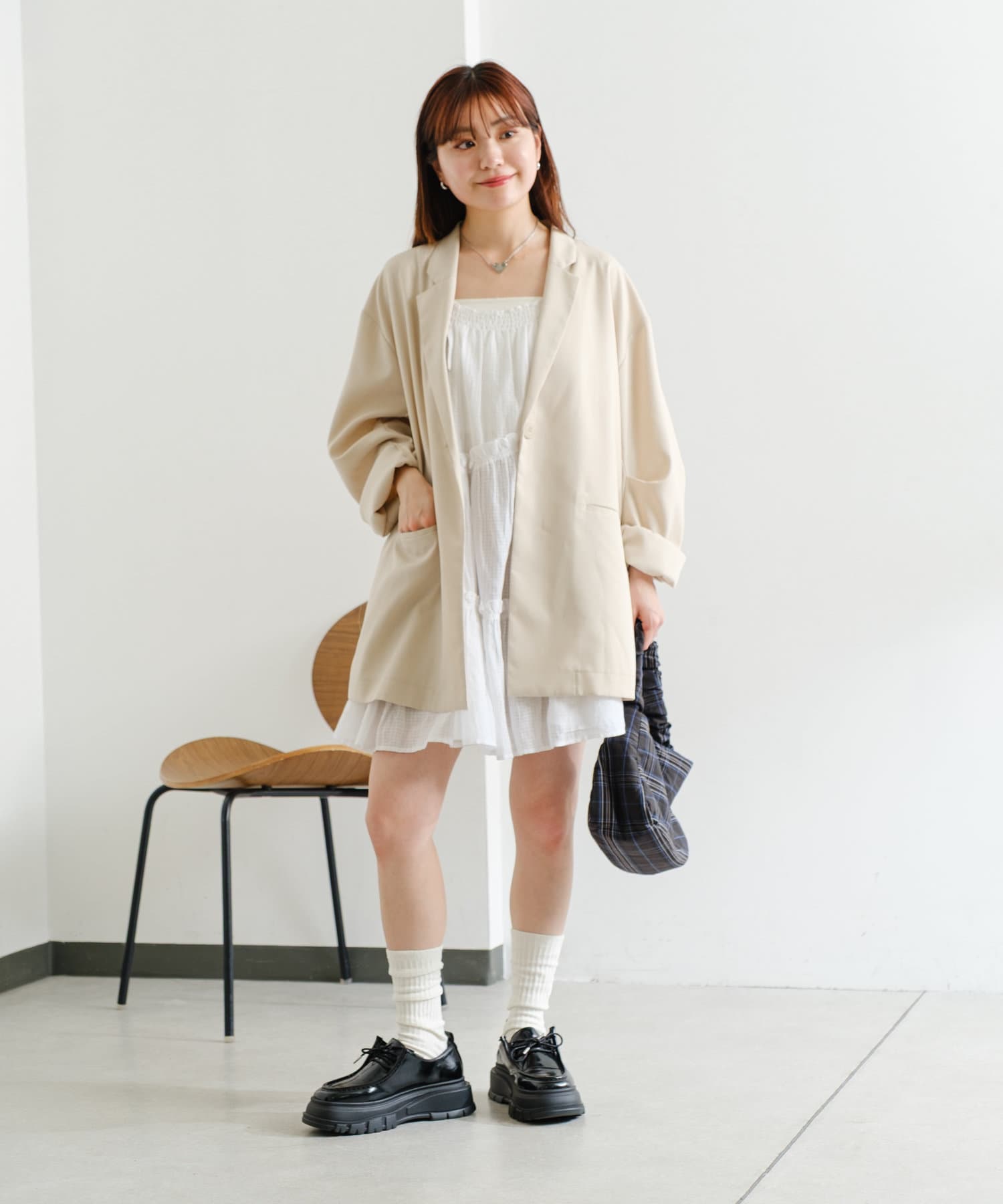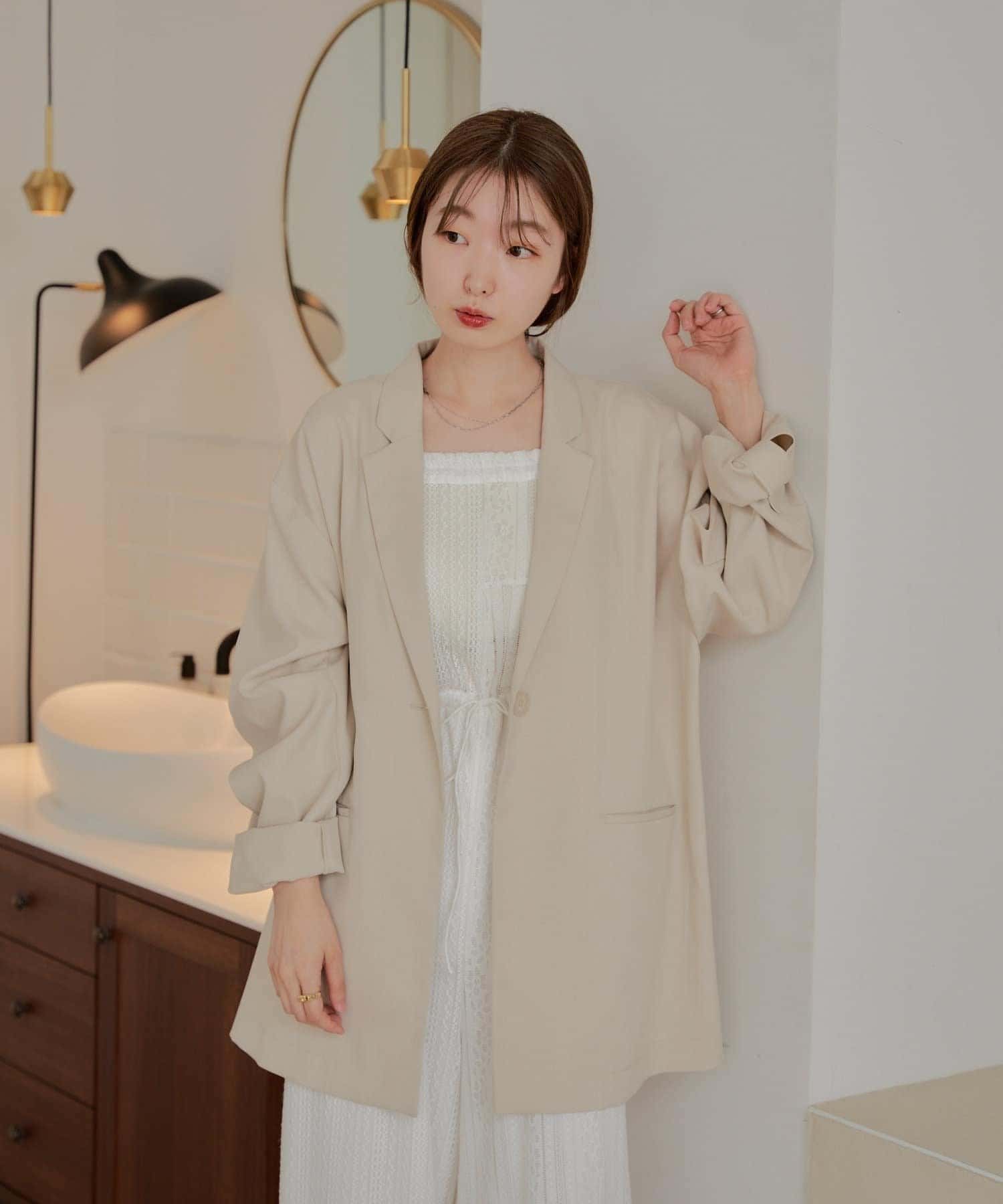 購入場所:店舗サイズ感もゆったりで生地感も裏地なしのタイプなので、夏でも羽織として大活躍してくれそうです!こんなジャケット欲しかった!