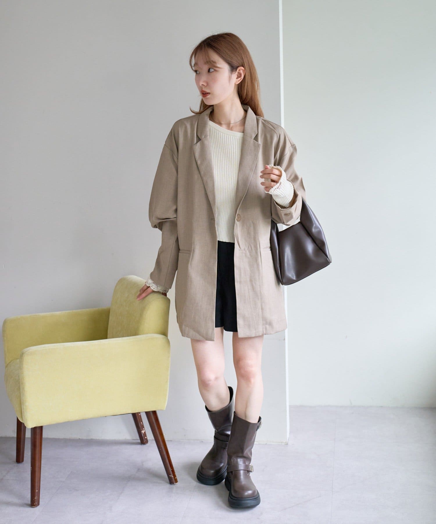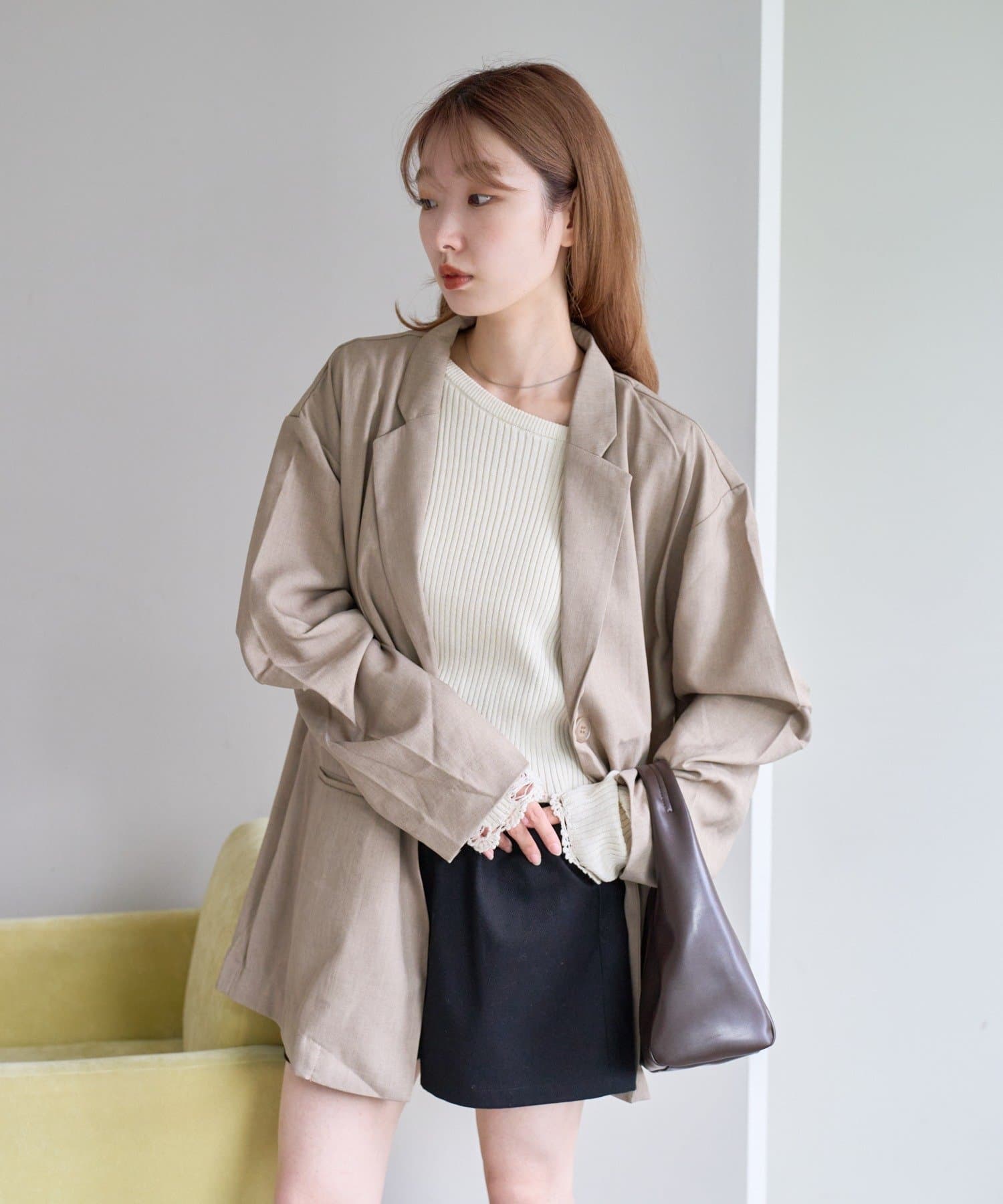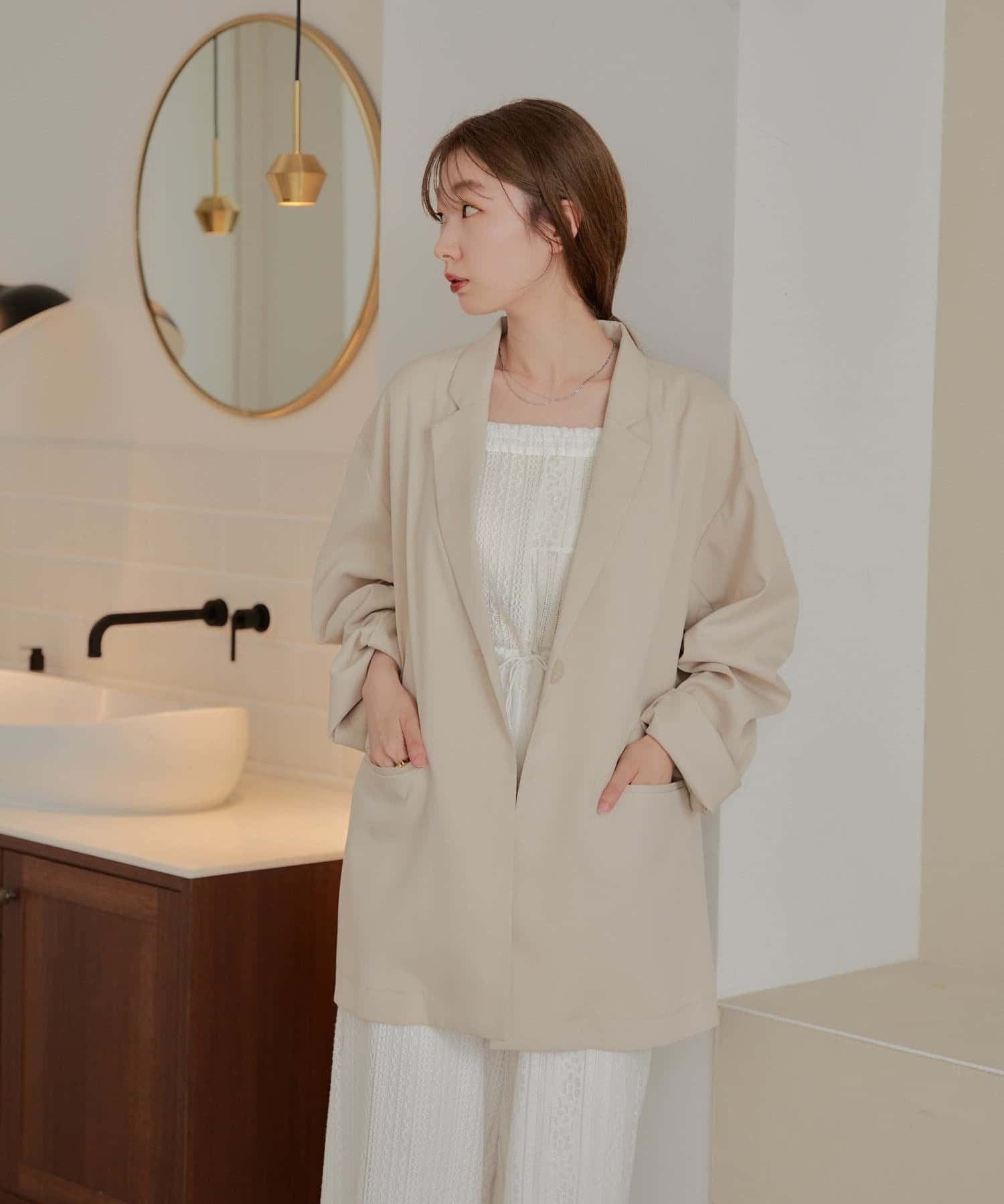 購入場所:店舗たいていのブランドではトップスはSサイズを着ることが多いですが、こちらは少しゆったりしててちょうど良かったです。薄くて軽いのでこれからの時期秋始めくらいまでは着られそうです。袖の形が可愛くてジャケットですがよりカジュアルに着られるかなと思って買いました、カジュアルとキレイめのバランスがいいので色んな物に合わせやすいです。