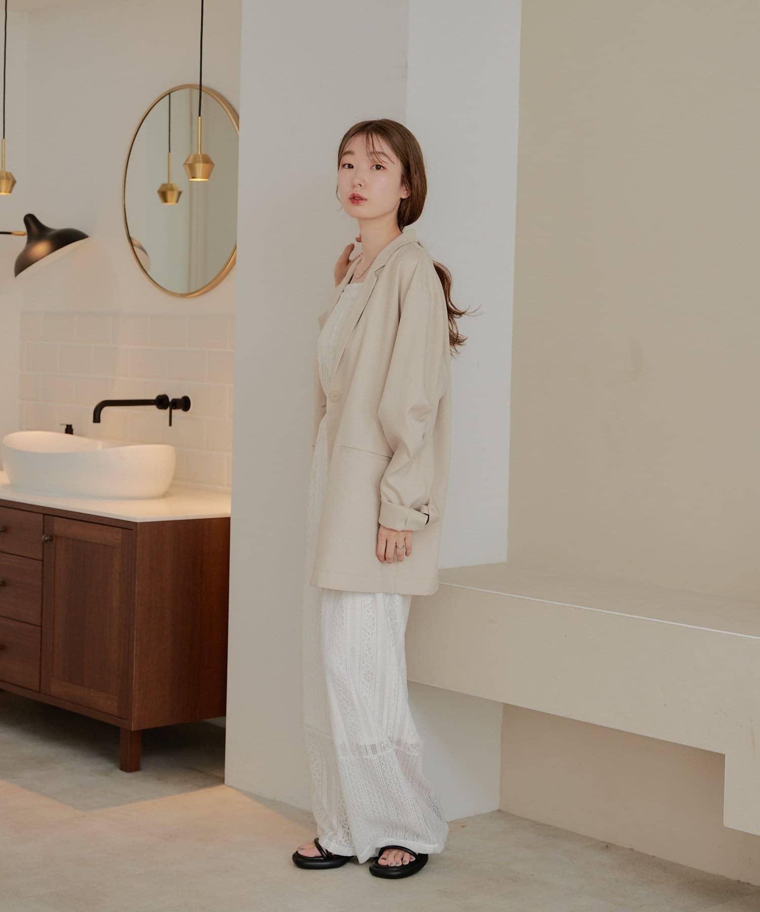 ワンピースやロングスカートと合わせると大人っぽい印象に。
