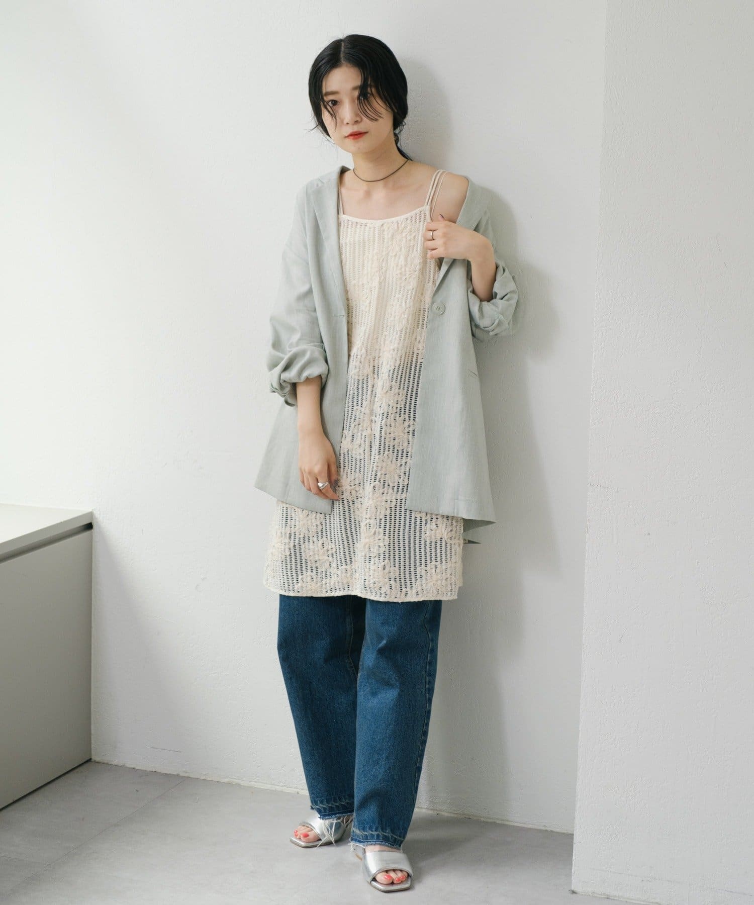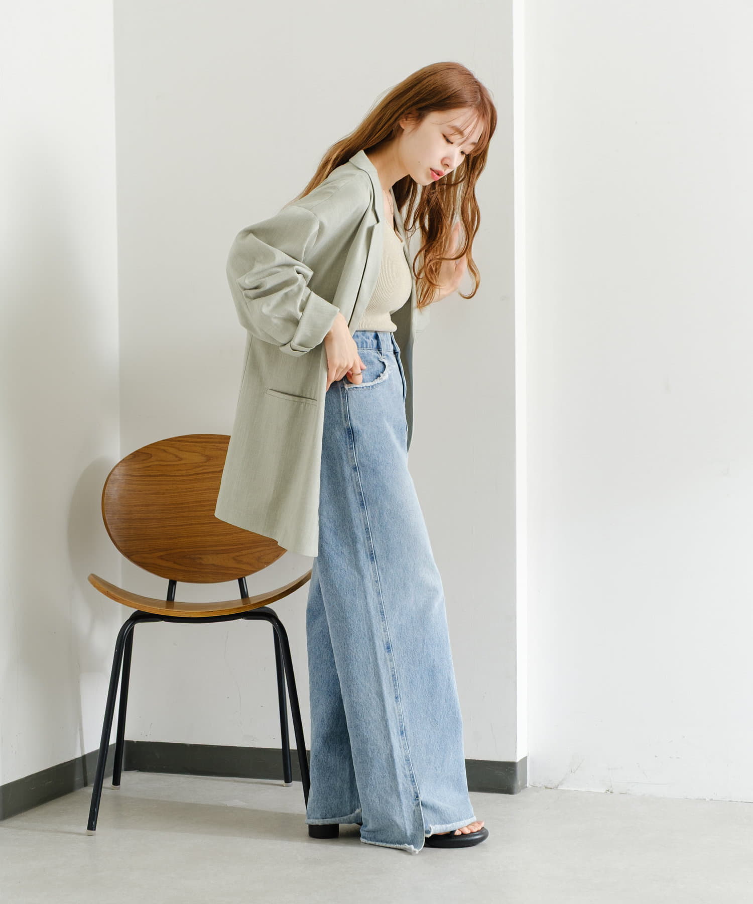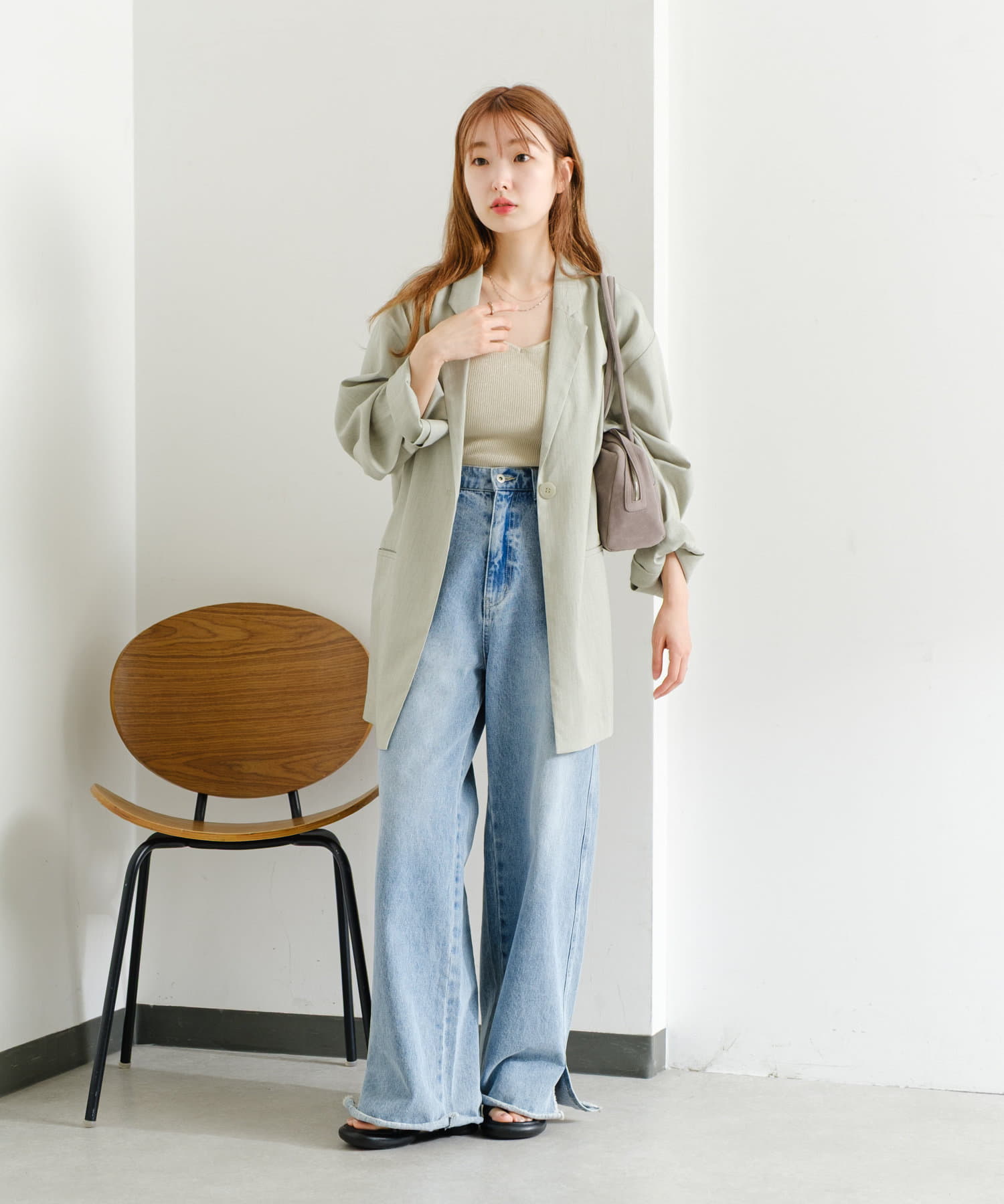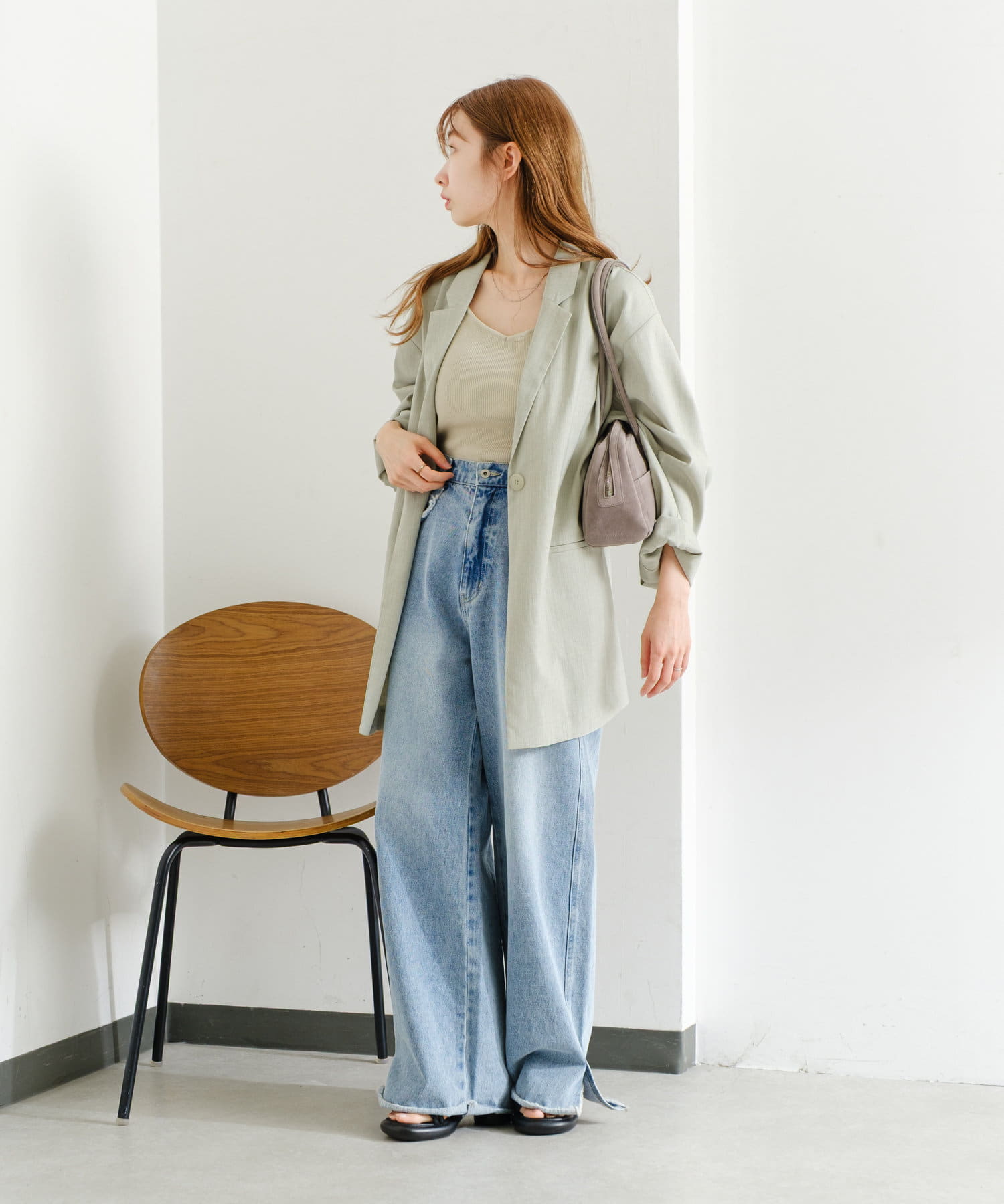 カジュアルダウンしたい方はデニムやカット素材合わせがおすすめ。