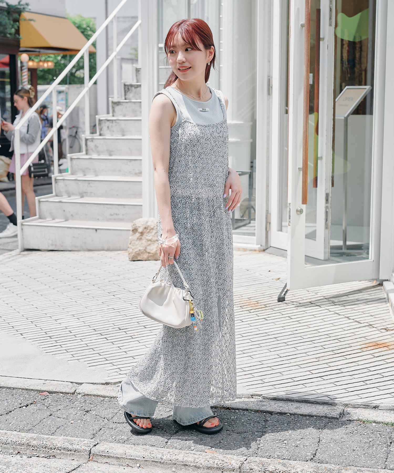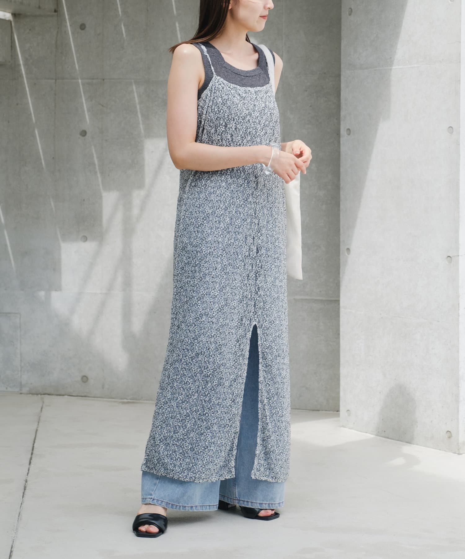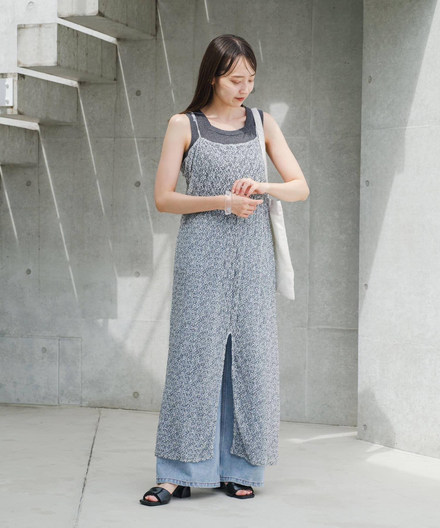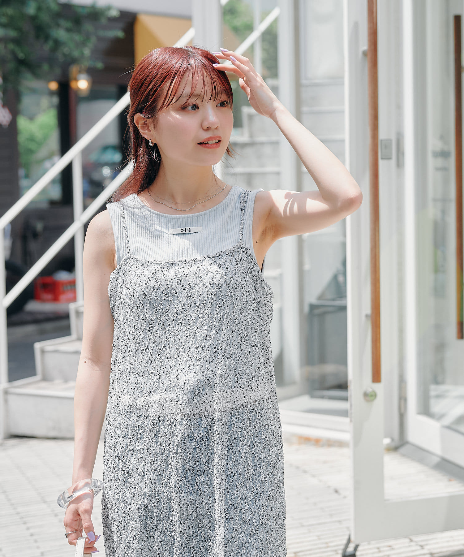 インナー次第で着方を楽しめるフラワーキャミワンピース