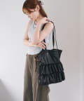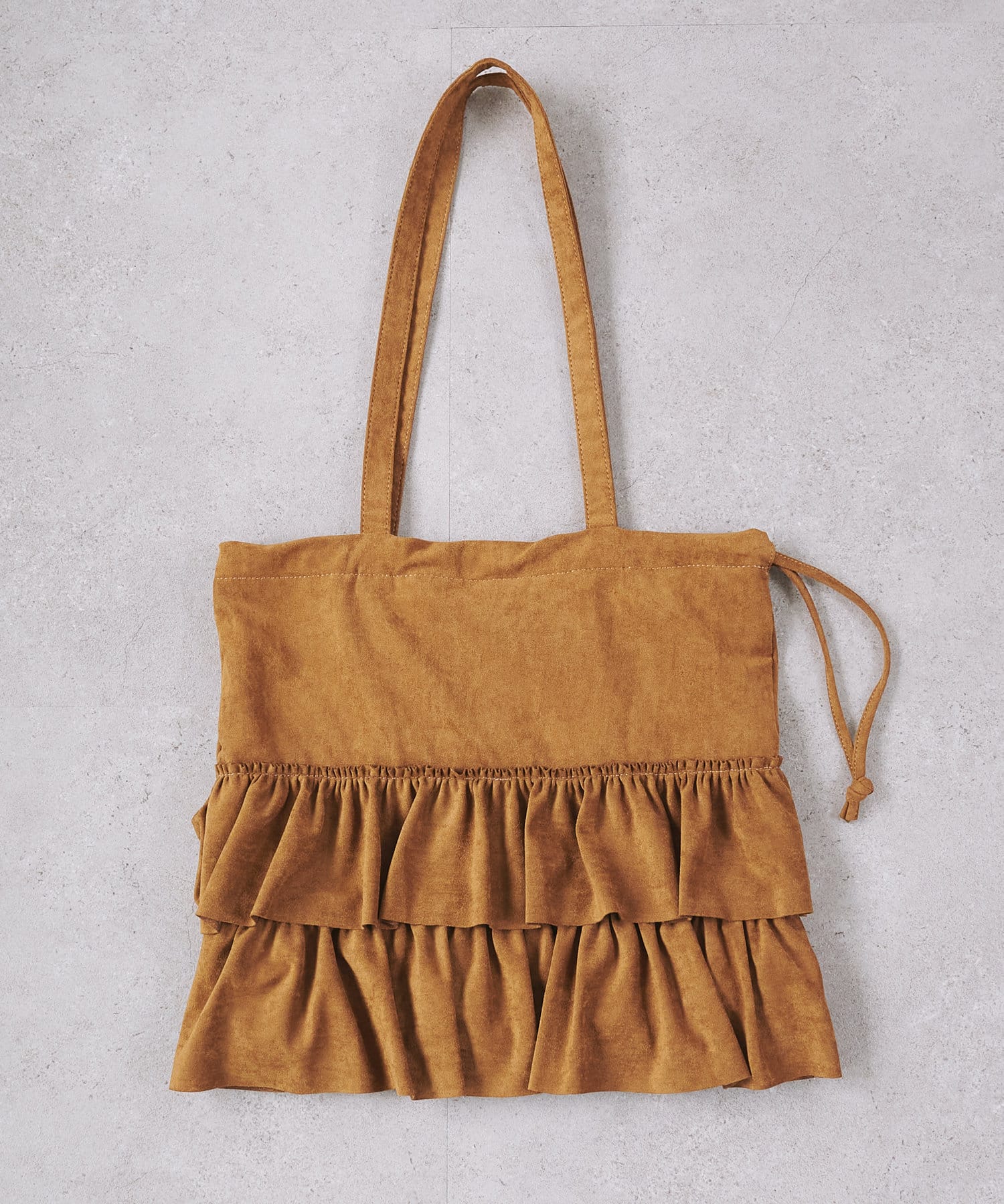 【A4サイズ対応/PUレザー&スエード】フリルトートバッグ