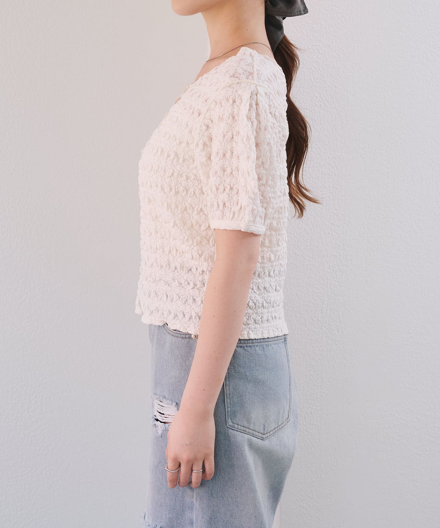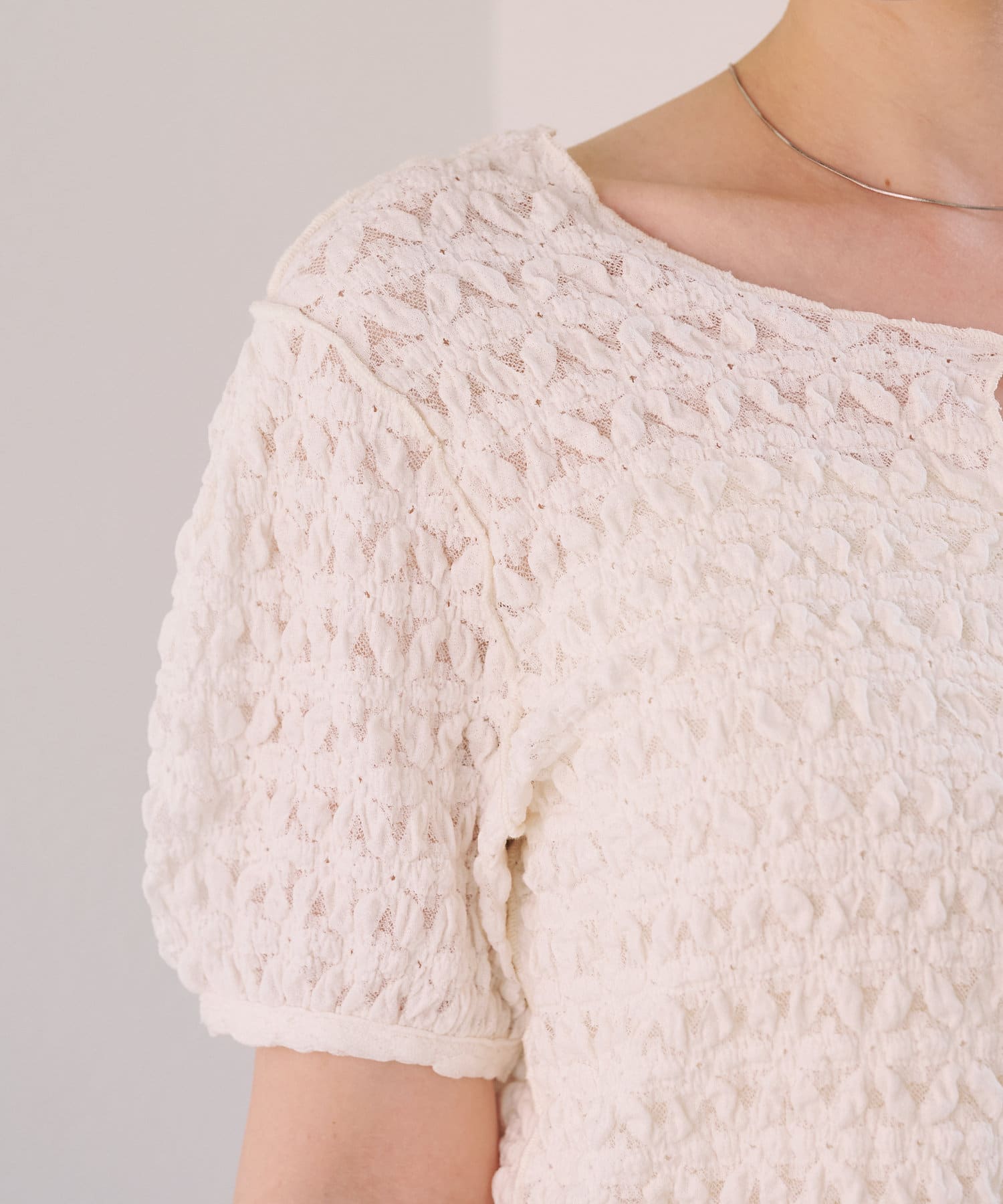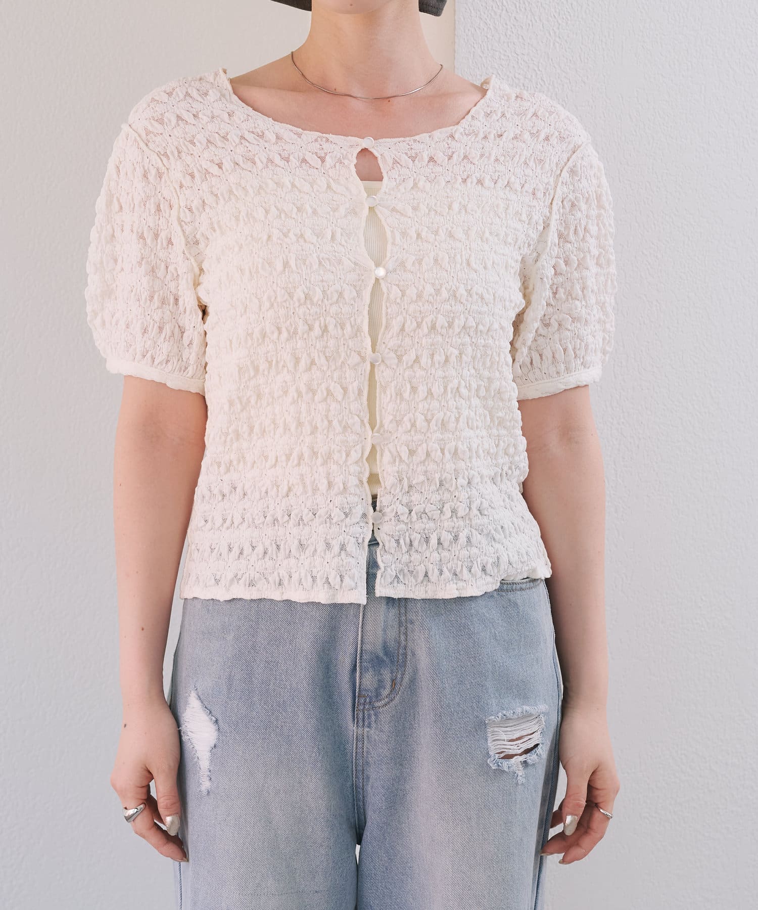 ぽこぽことしたジャガードデザインがポイントの2WAYトップス。