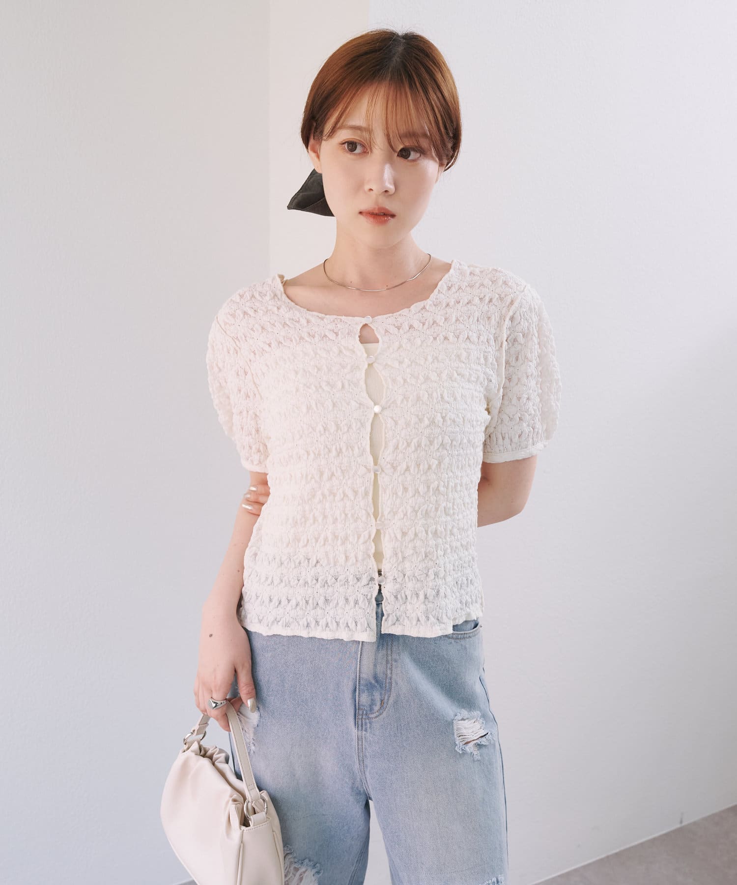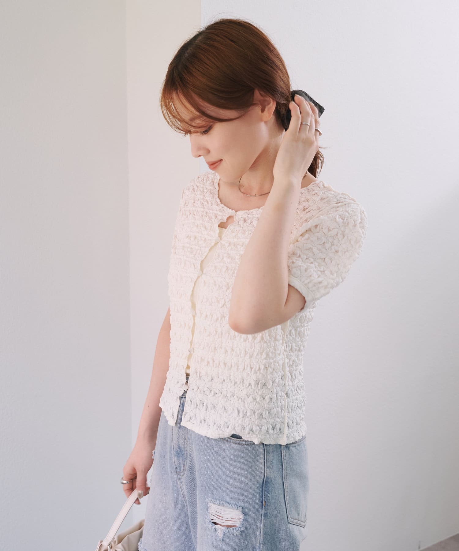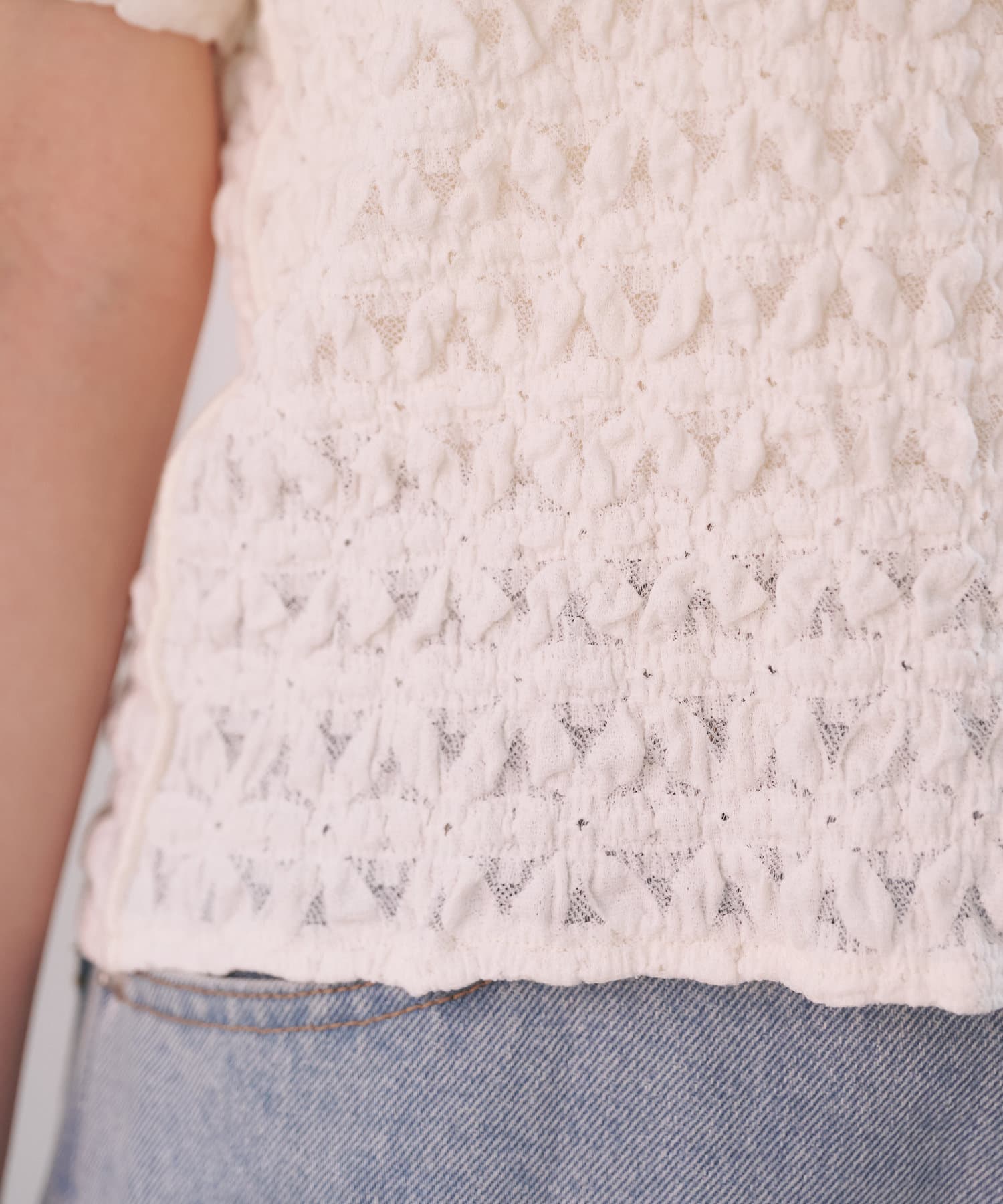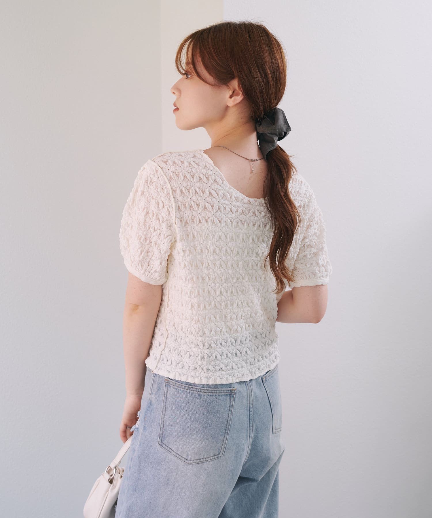 ぽこぽことしたジャガードデザインがポイントの2WAYトップス。