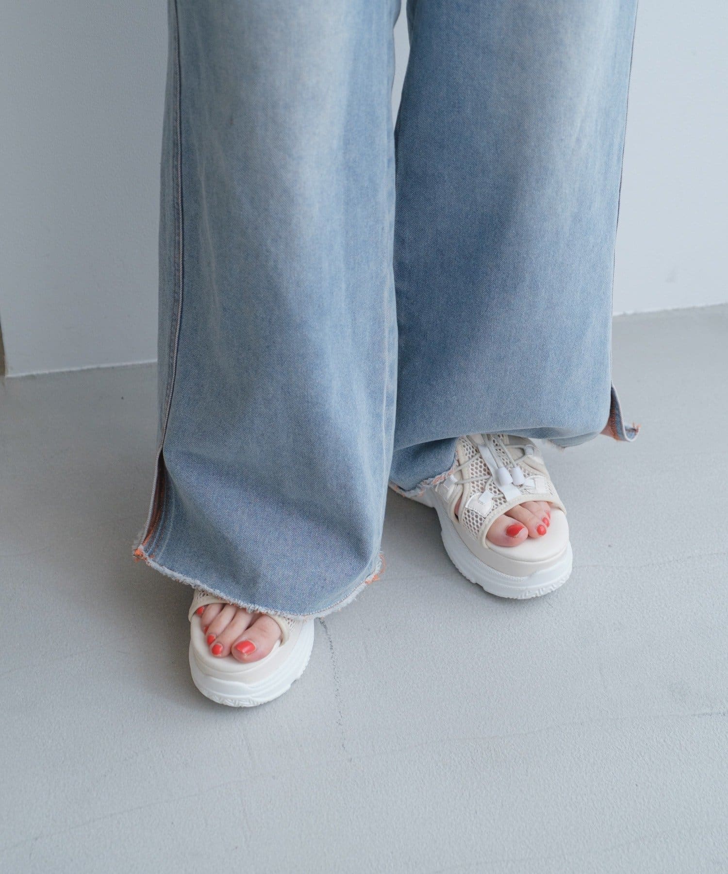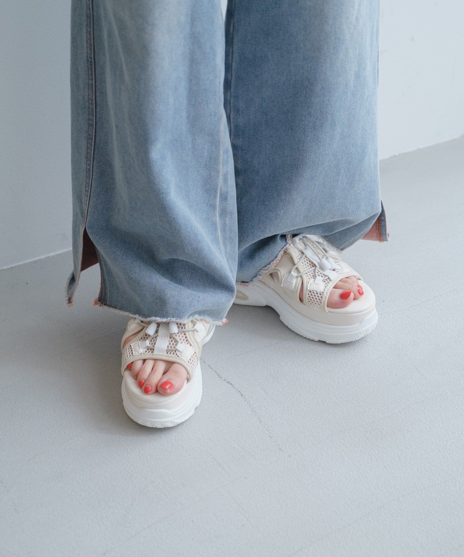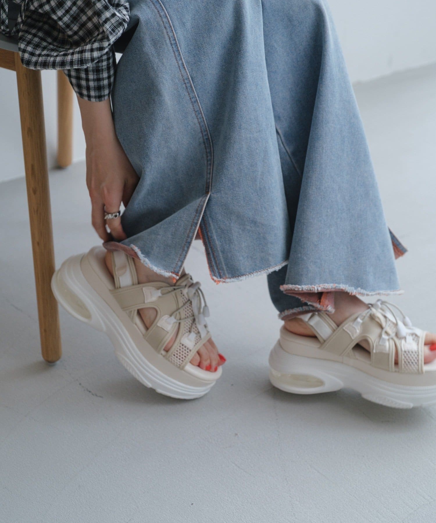 スポーティーなデザインと女性らしさを兼ね備えたスニーカーソールサンダル
