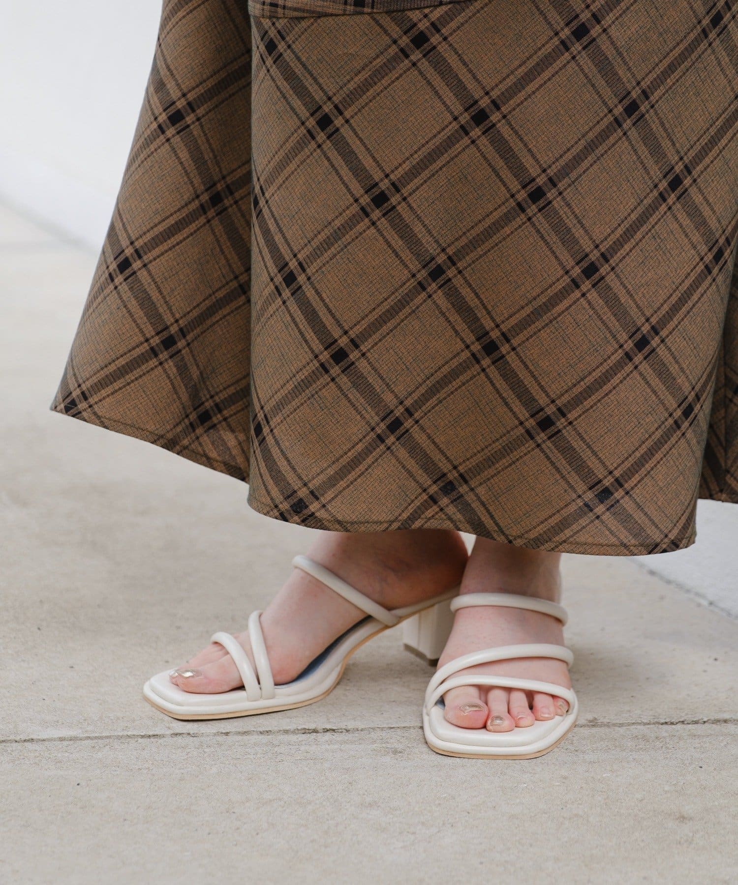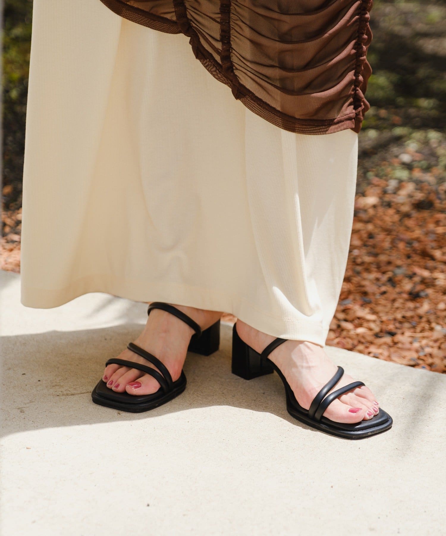 安定と美脚見えの良いとこ取りスクエアサンダル