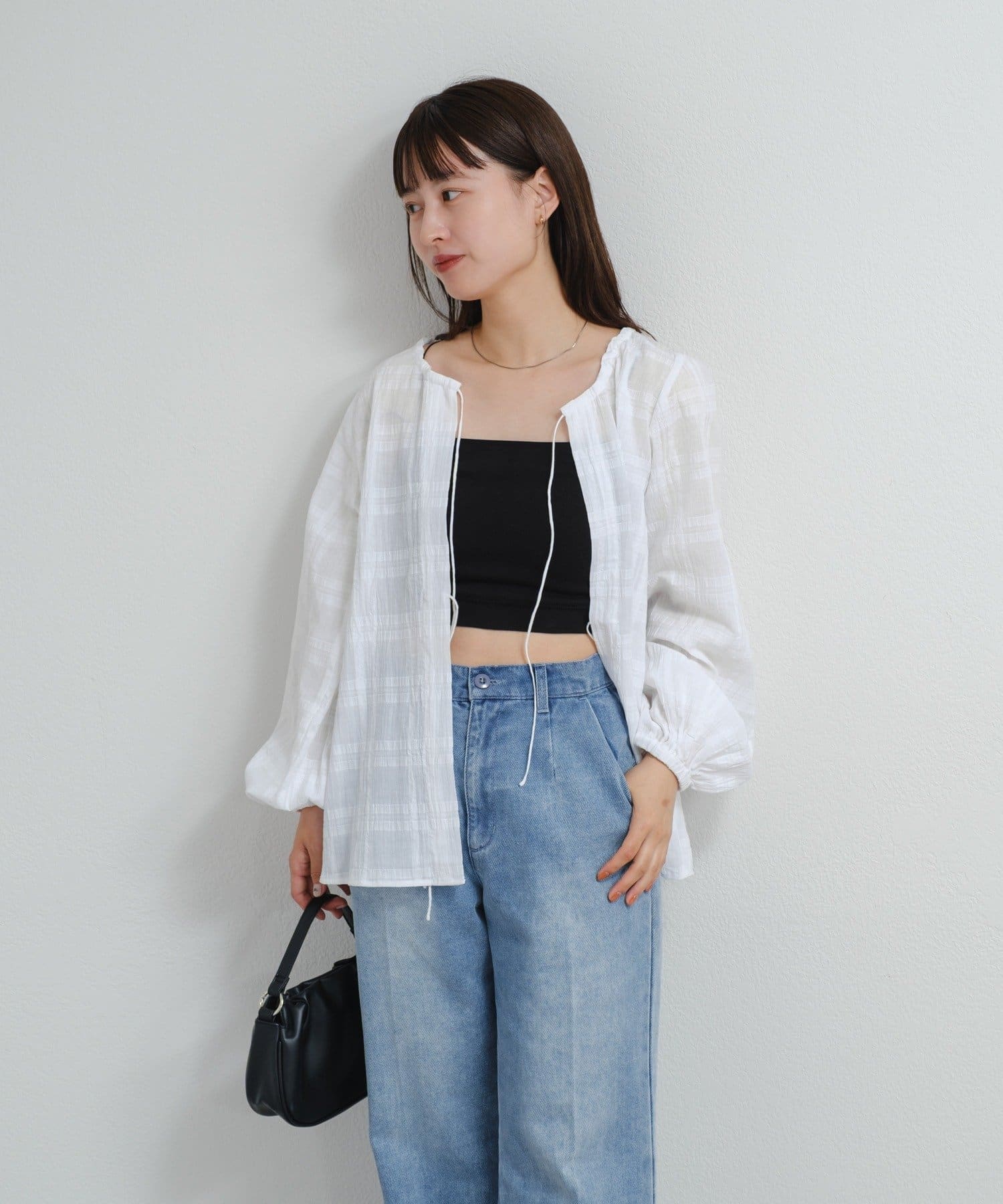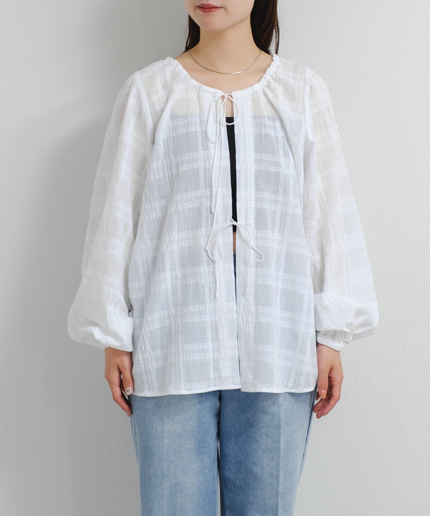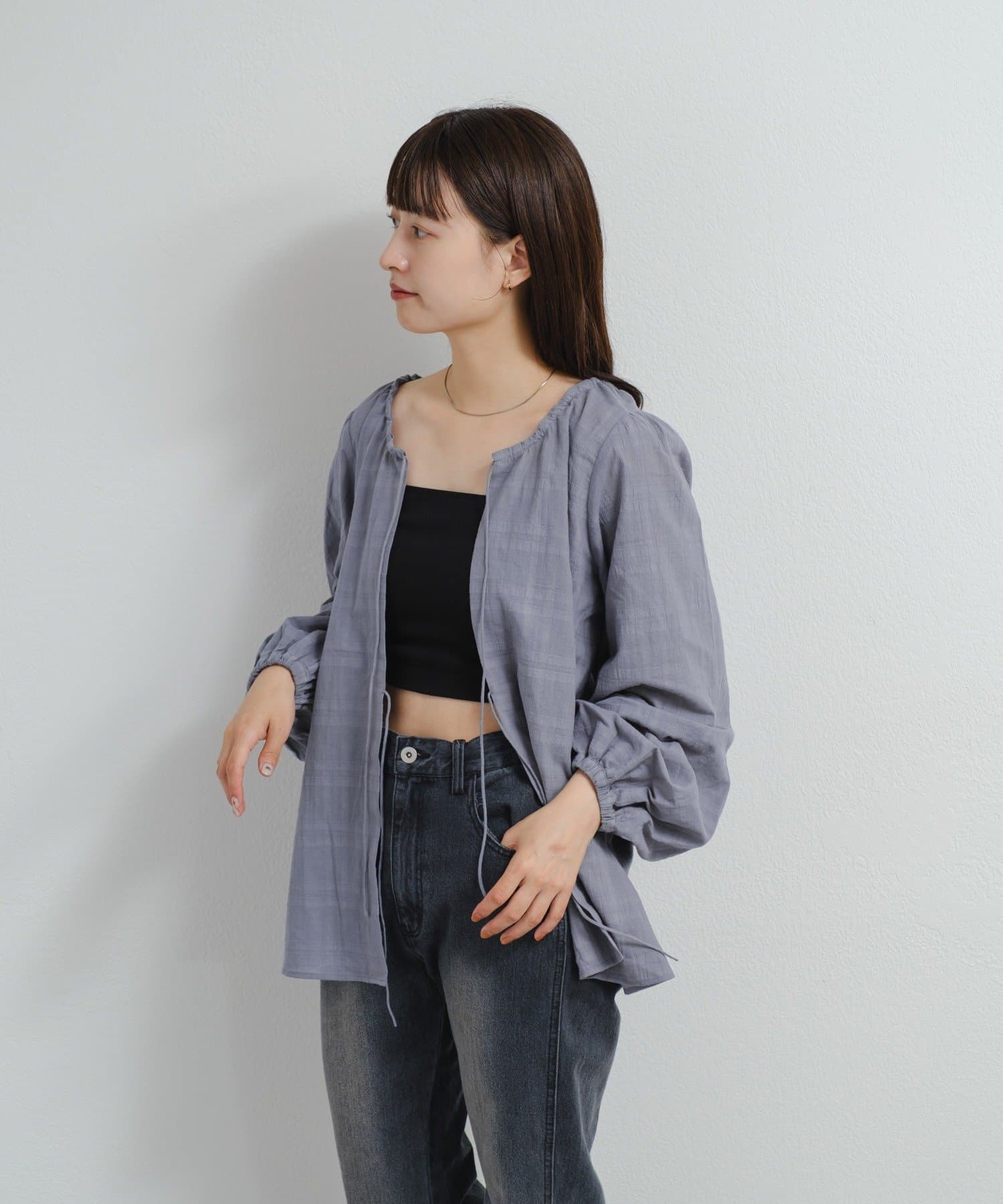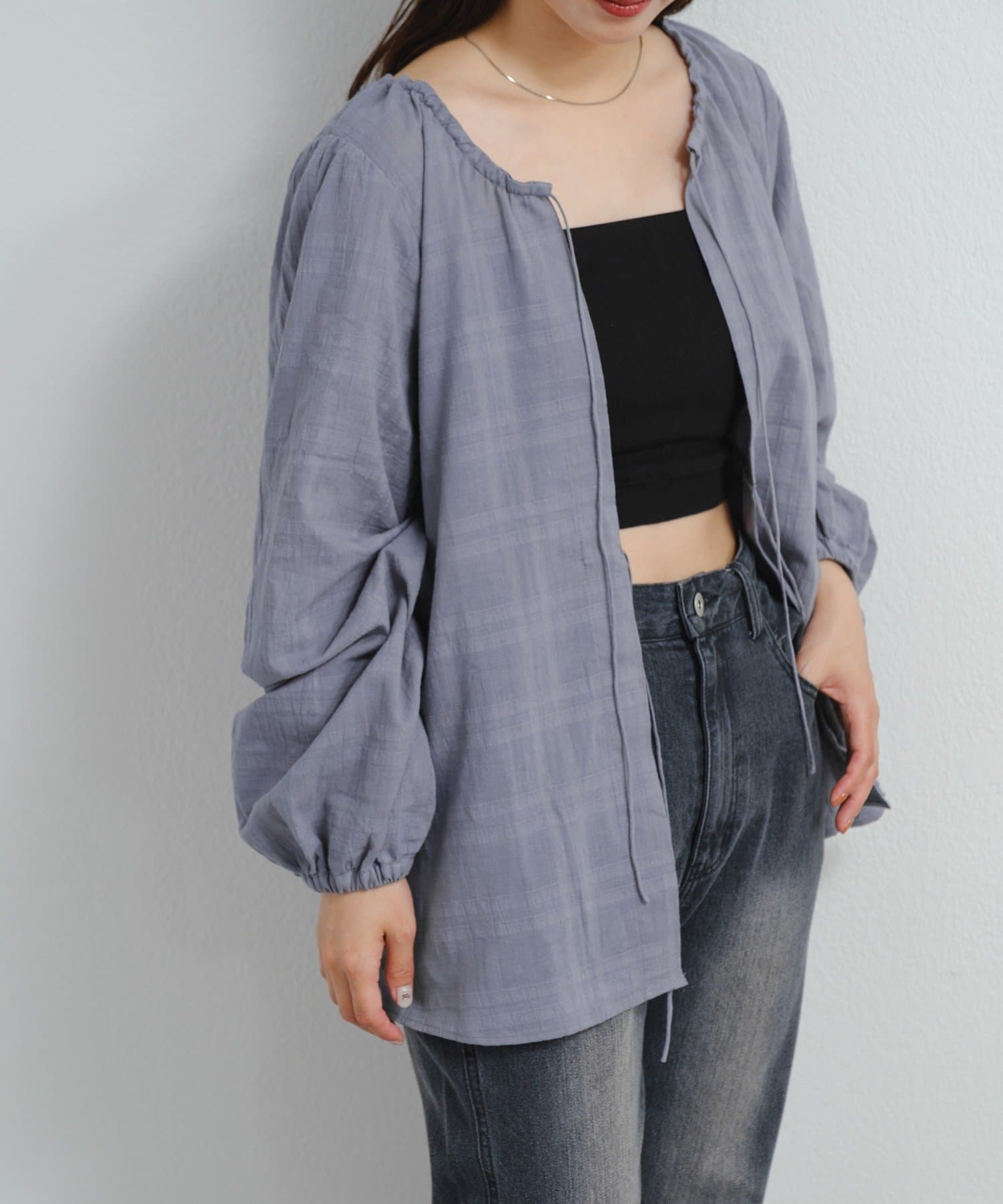 フロントの紐で軽く結ぶこともでき、ゆるっと羽織るのもおすすめ。