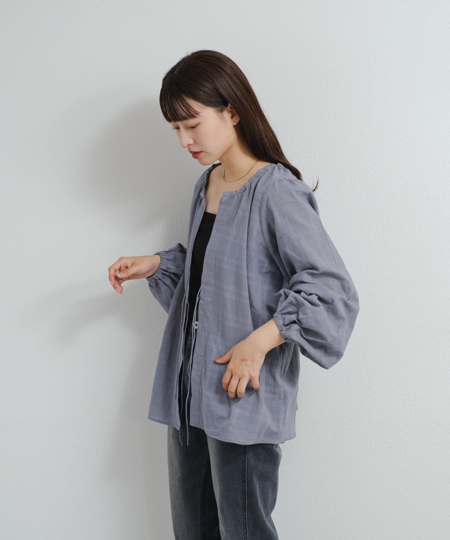 前を閉じてブラウスとしてはもちろん、羽織としても着られる2WAY仕様。
