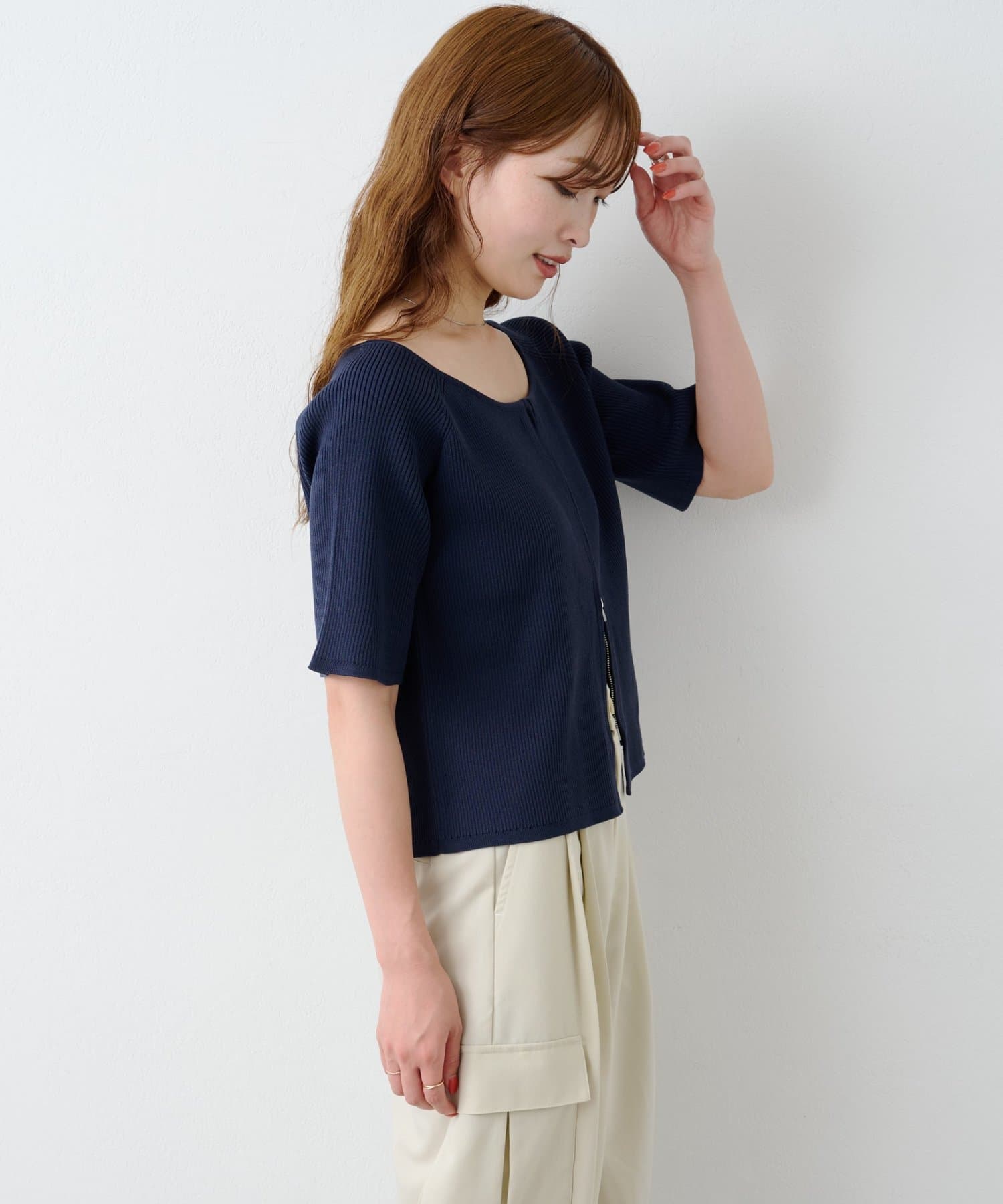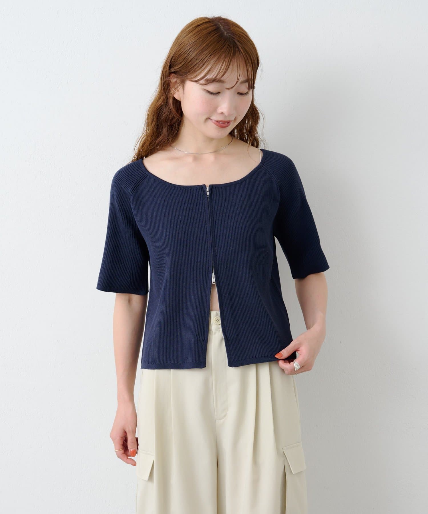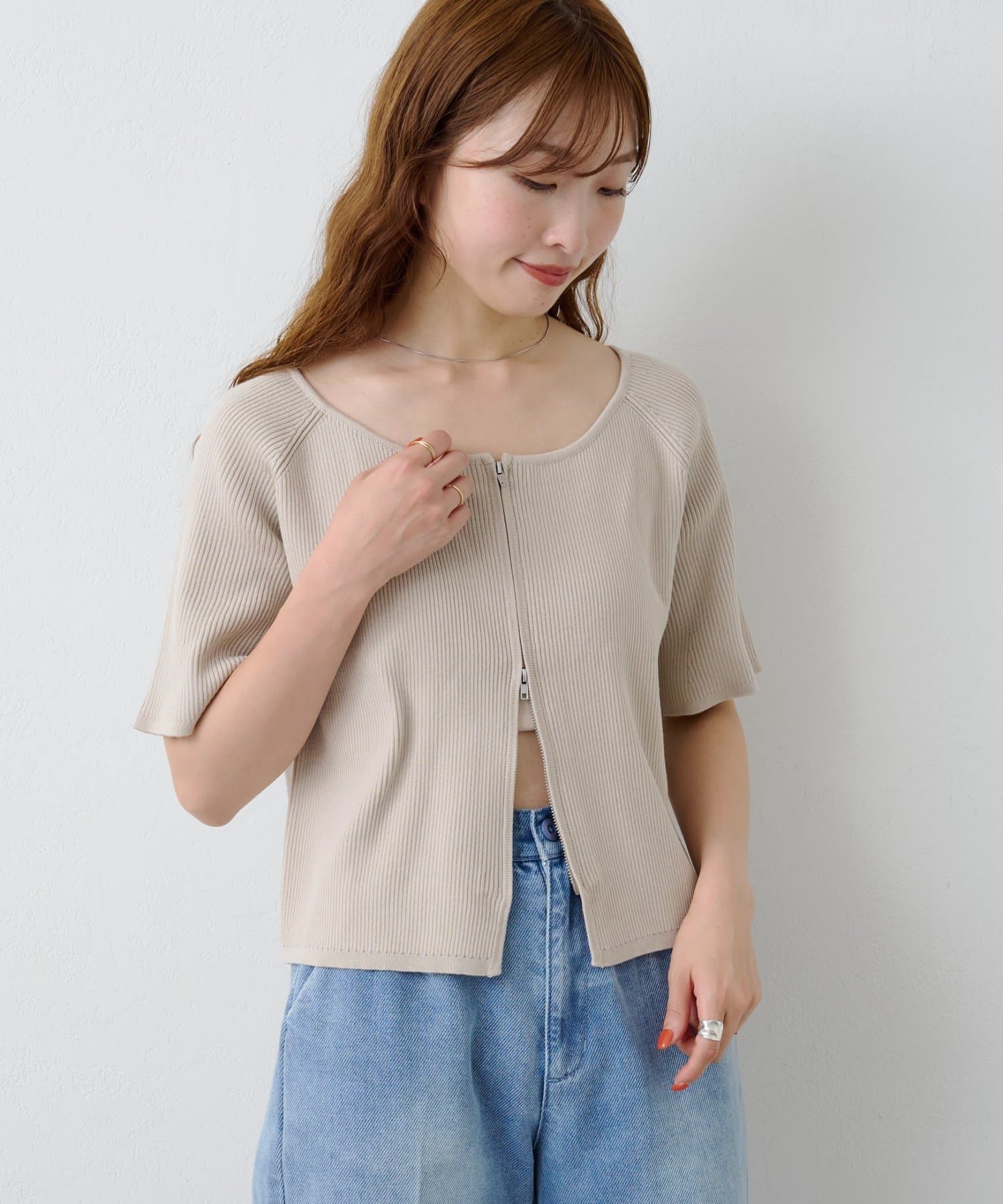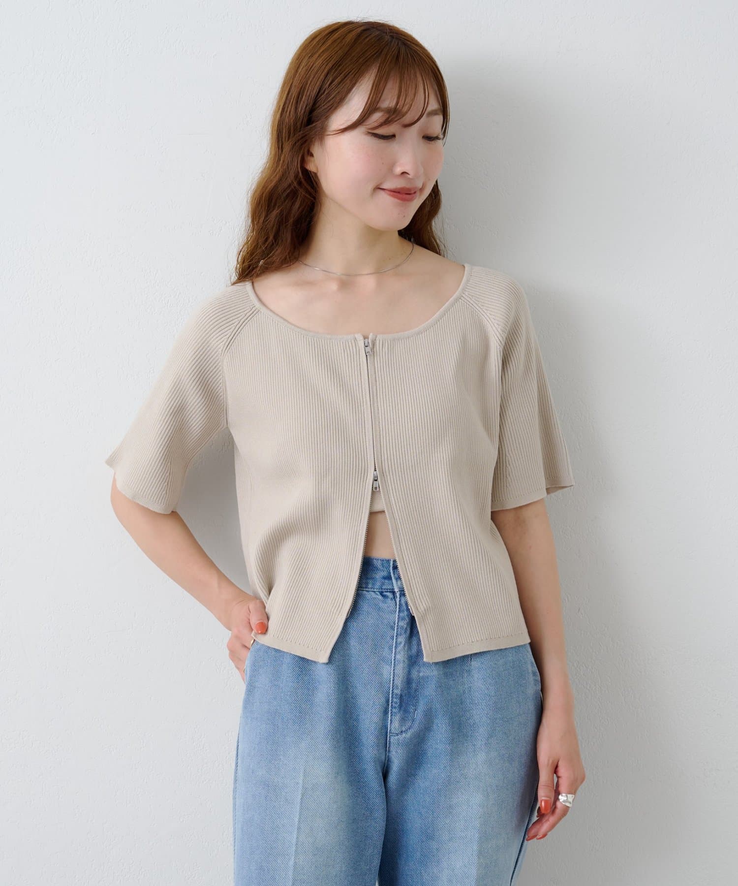 【Kastane】B オフショルZIPカーディガン
