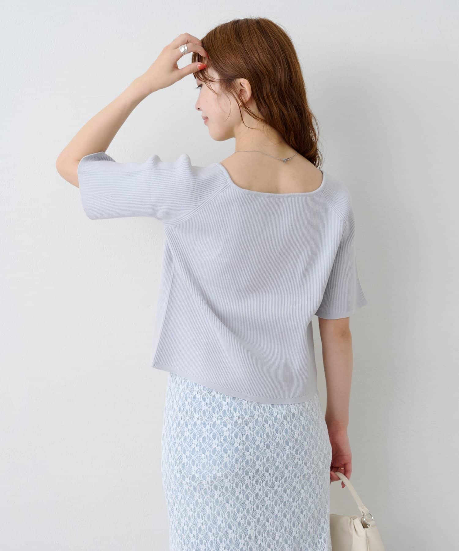 首元や袖口の控えめなアクセントが、上品な印象をプラス。