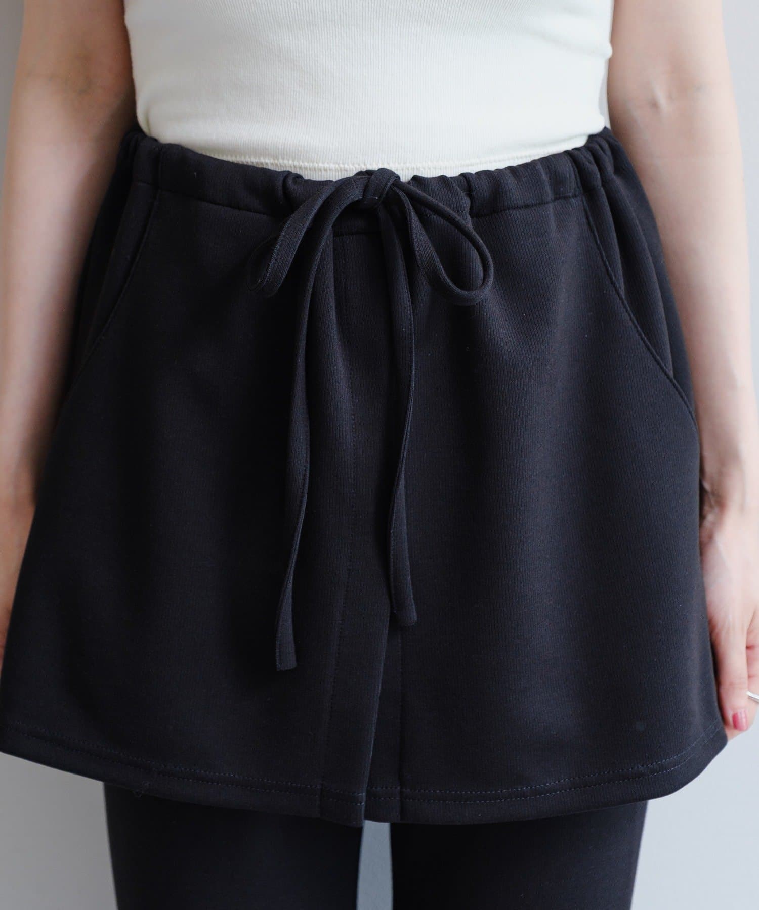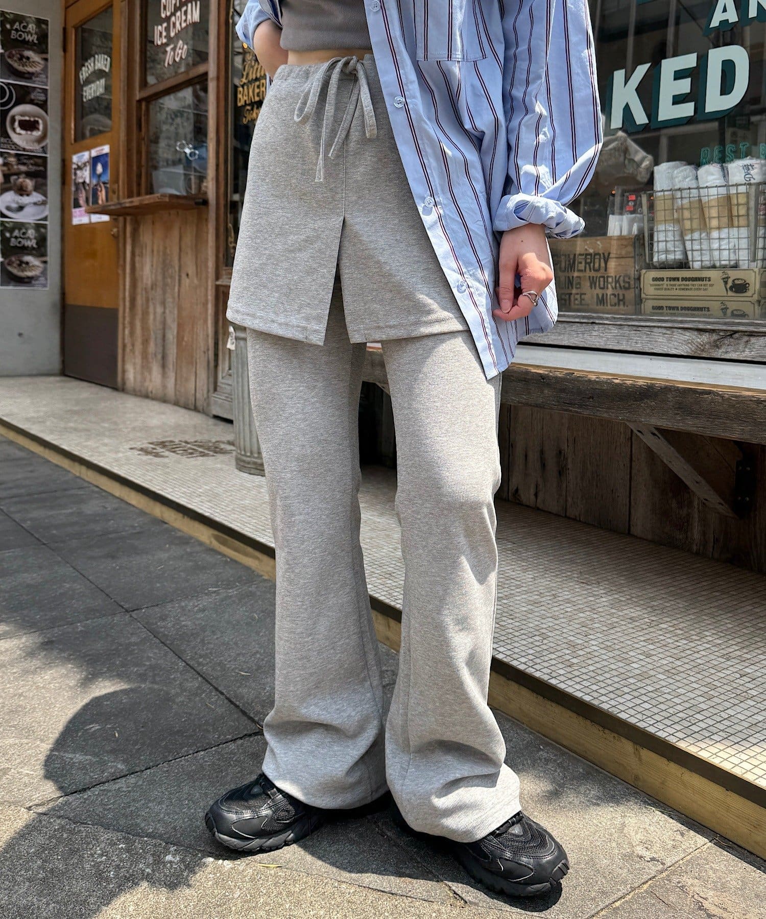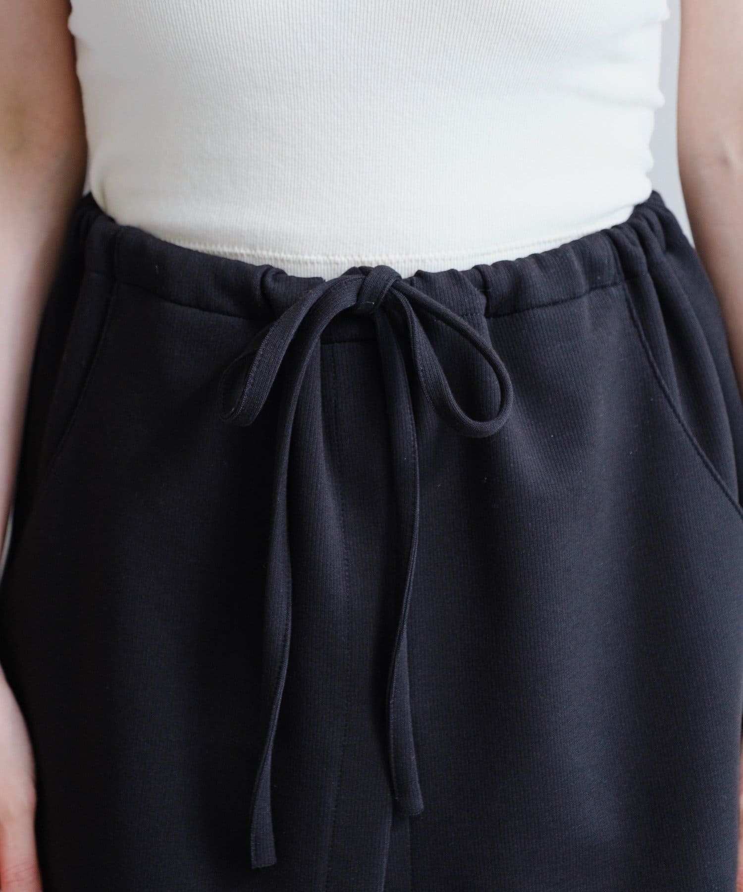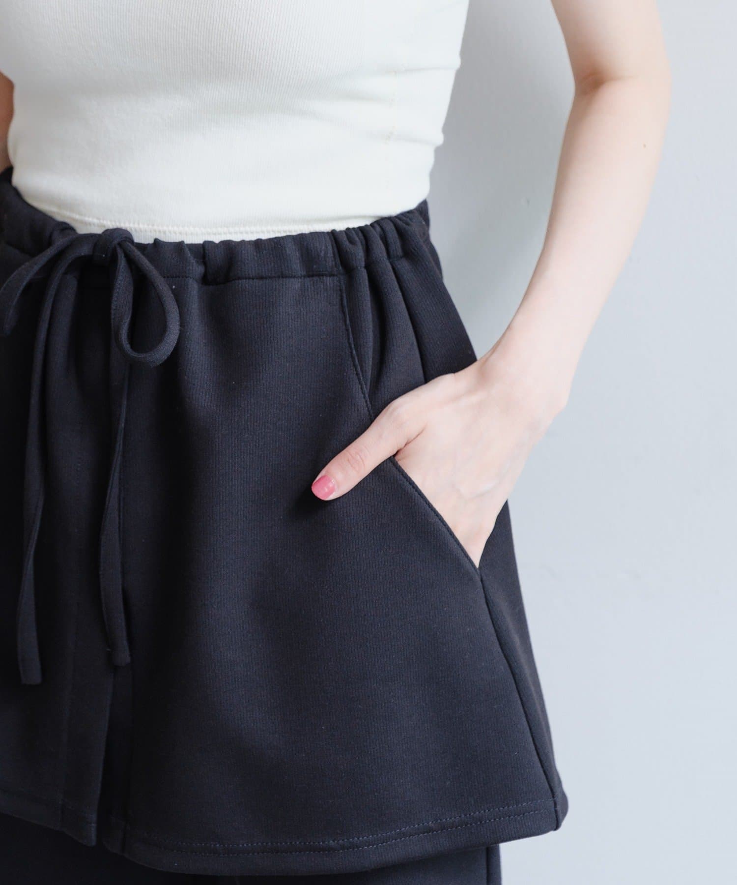 細めのシルエットが脚長効果を叶えるスウェットスカパン