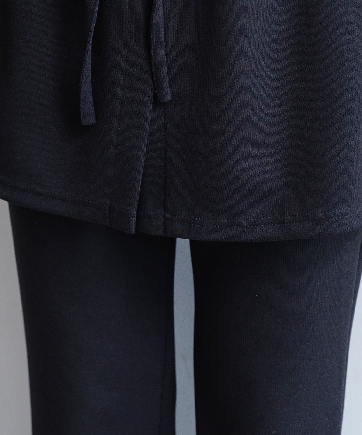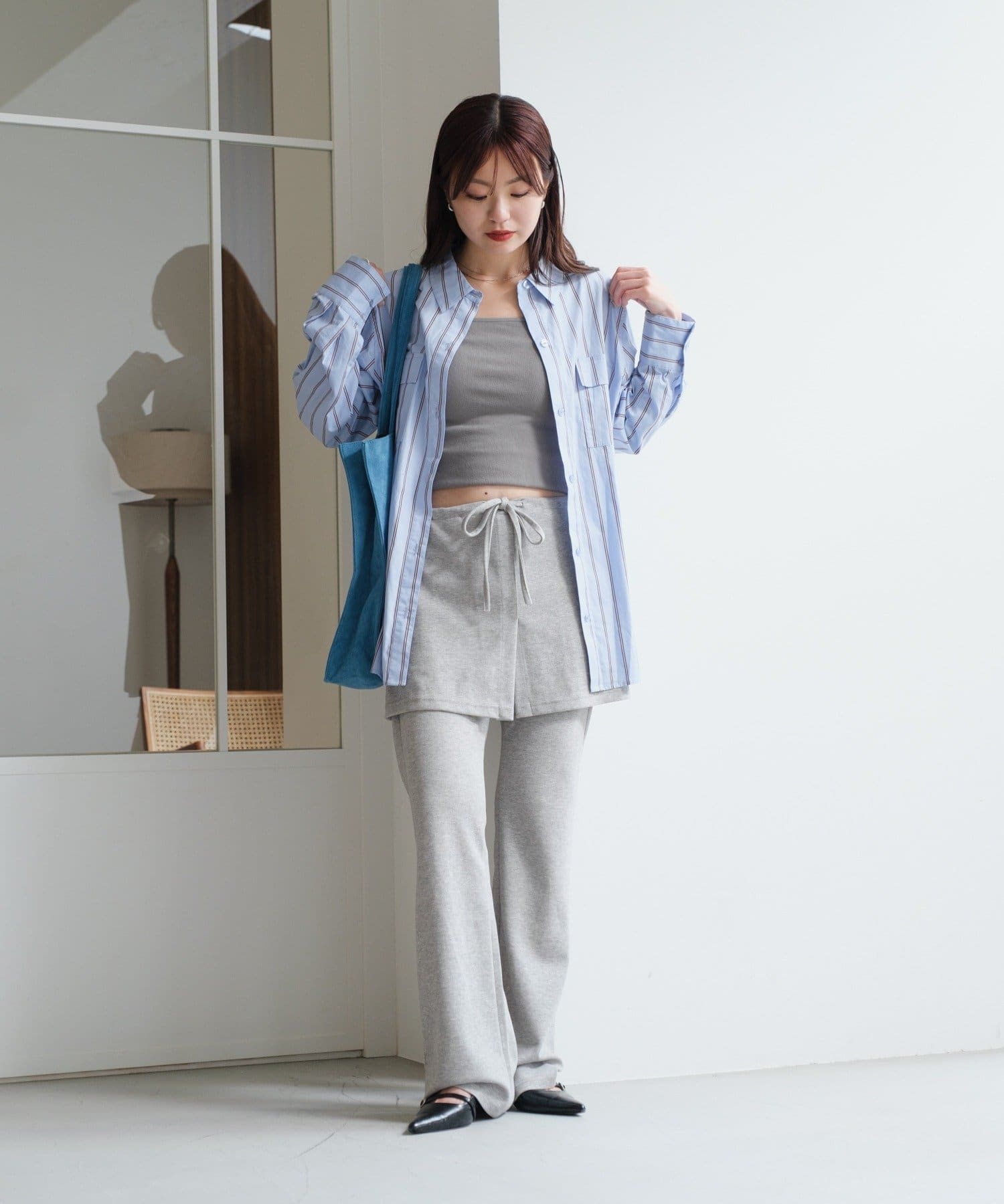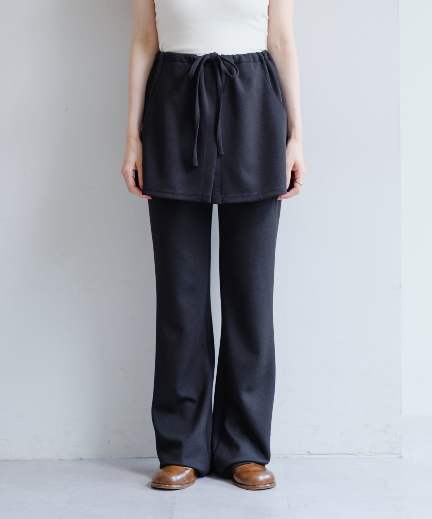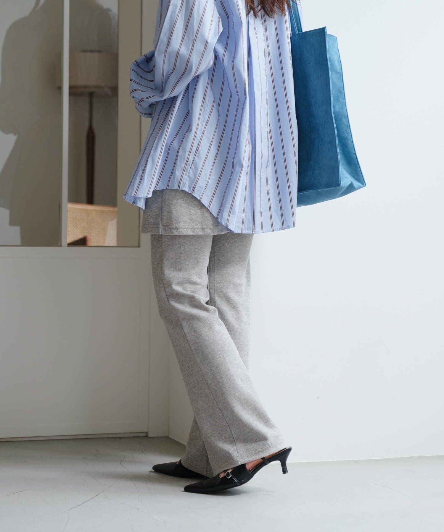細めのシルエットが脚長効果を叶えるスウェットスカパン