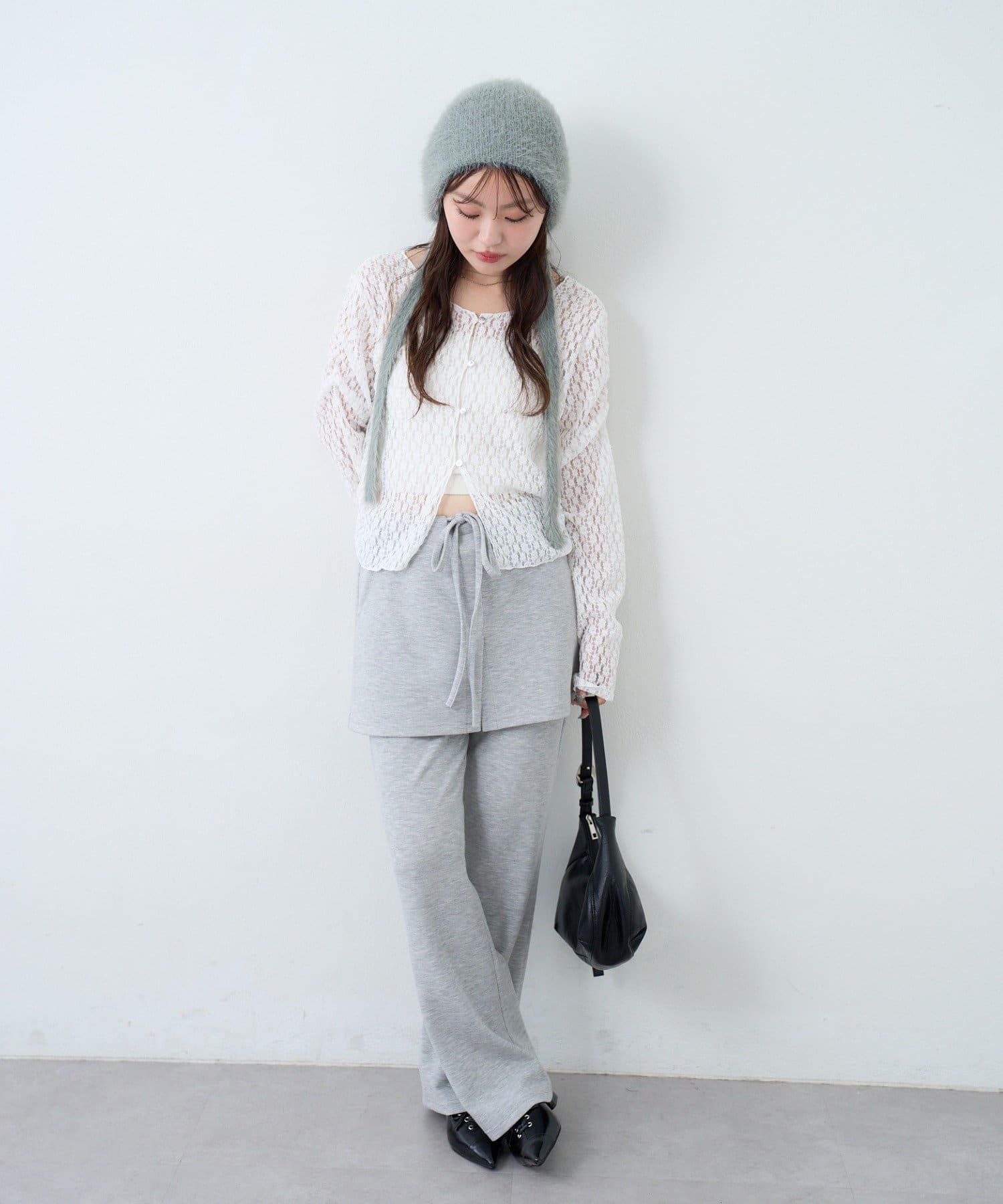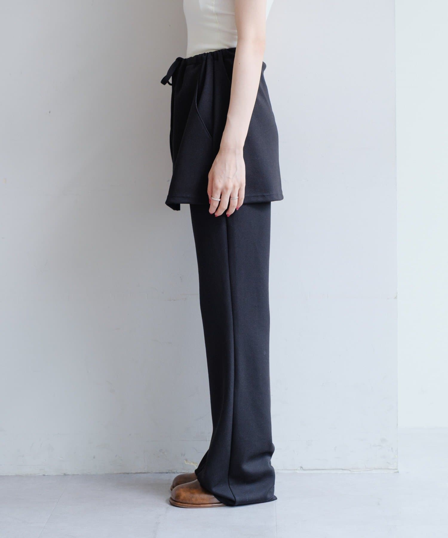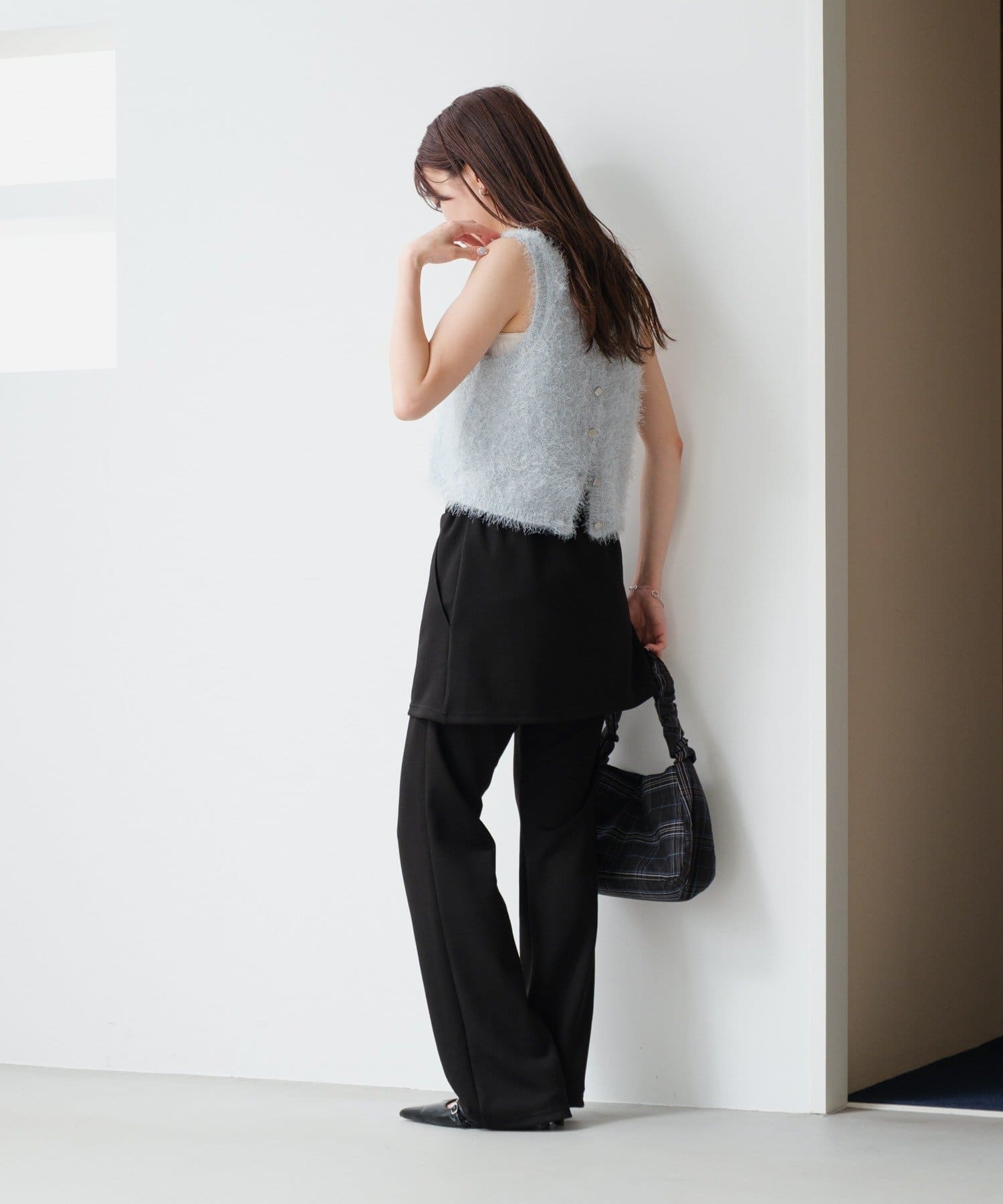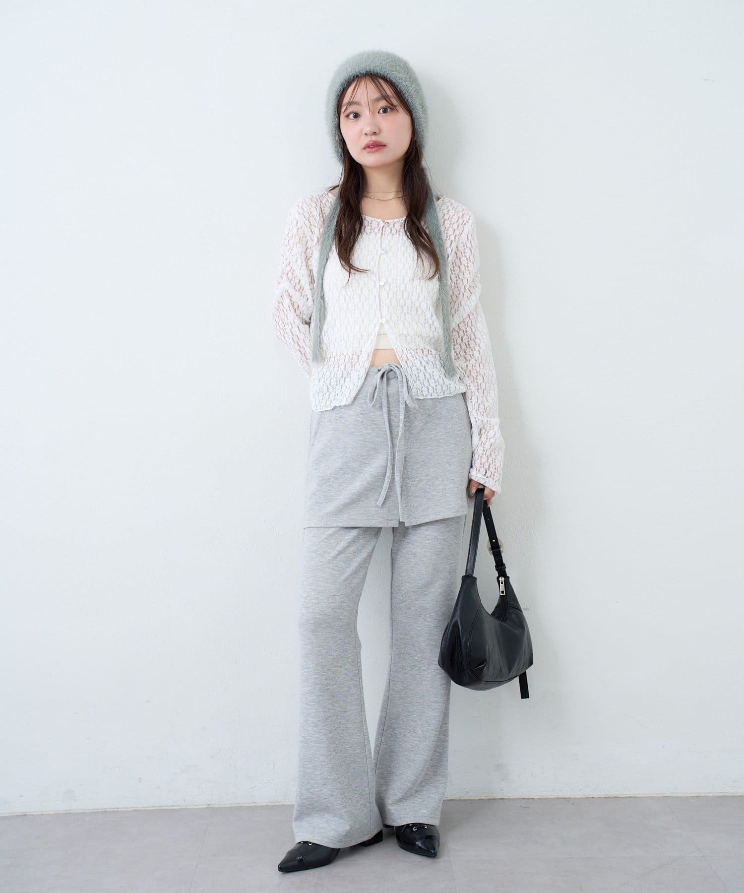細めのシルエットが脚長効果を叶えるスウェットスカパン