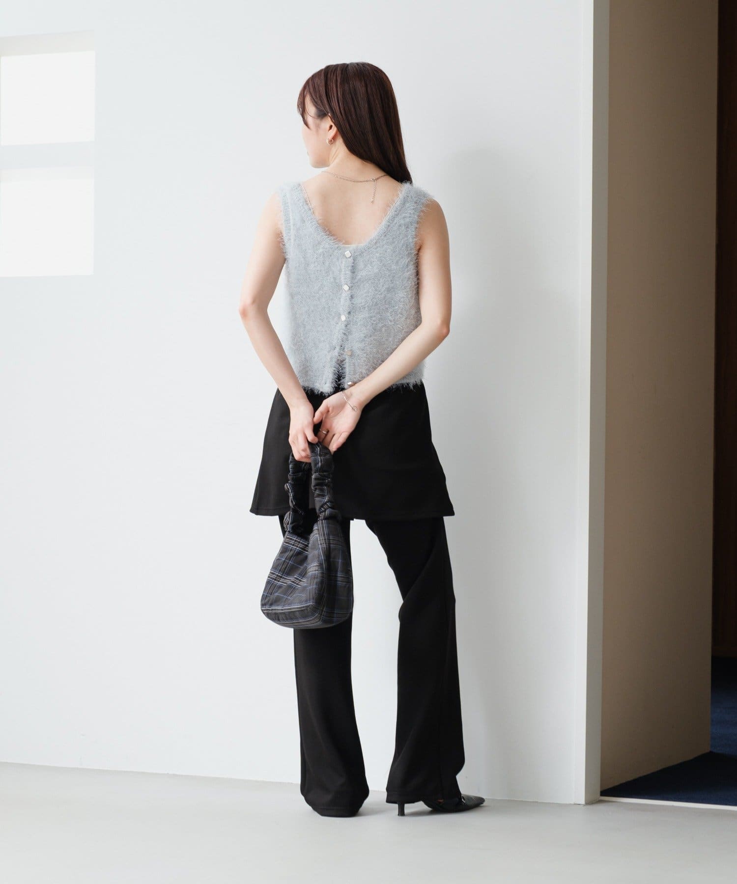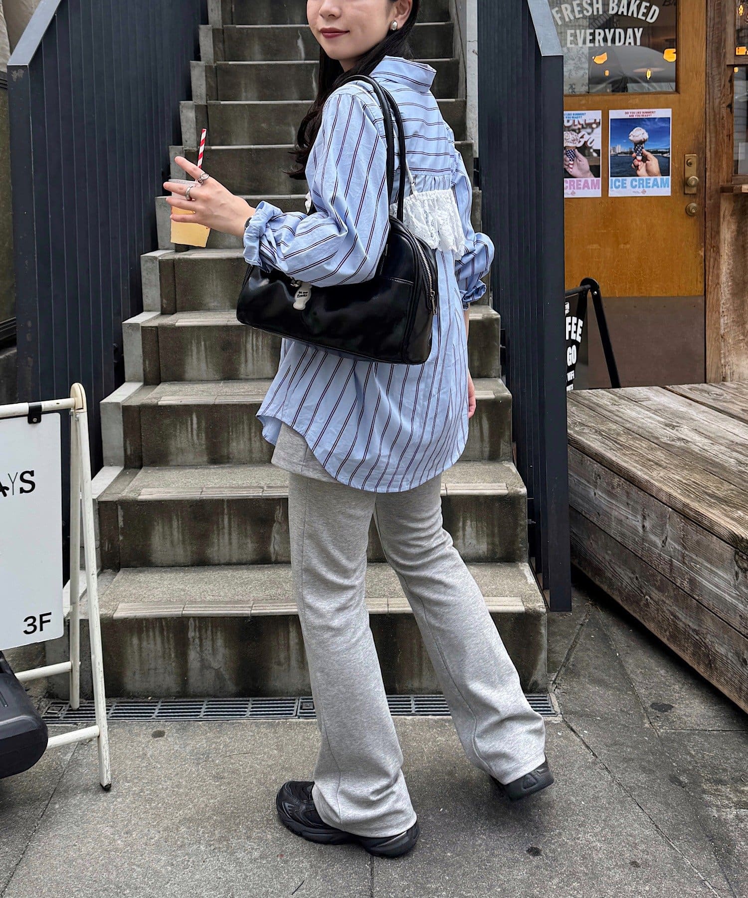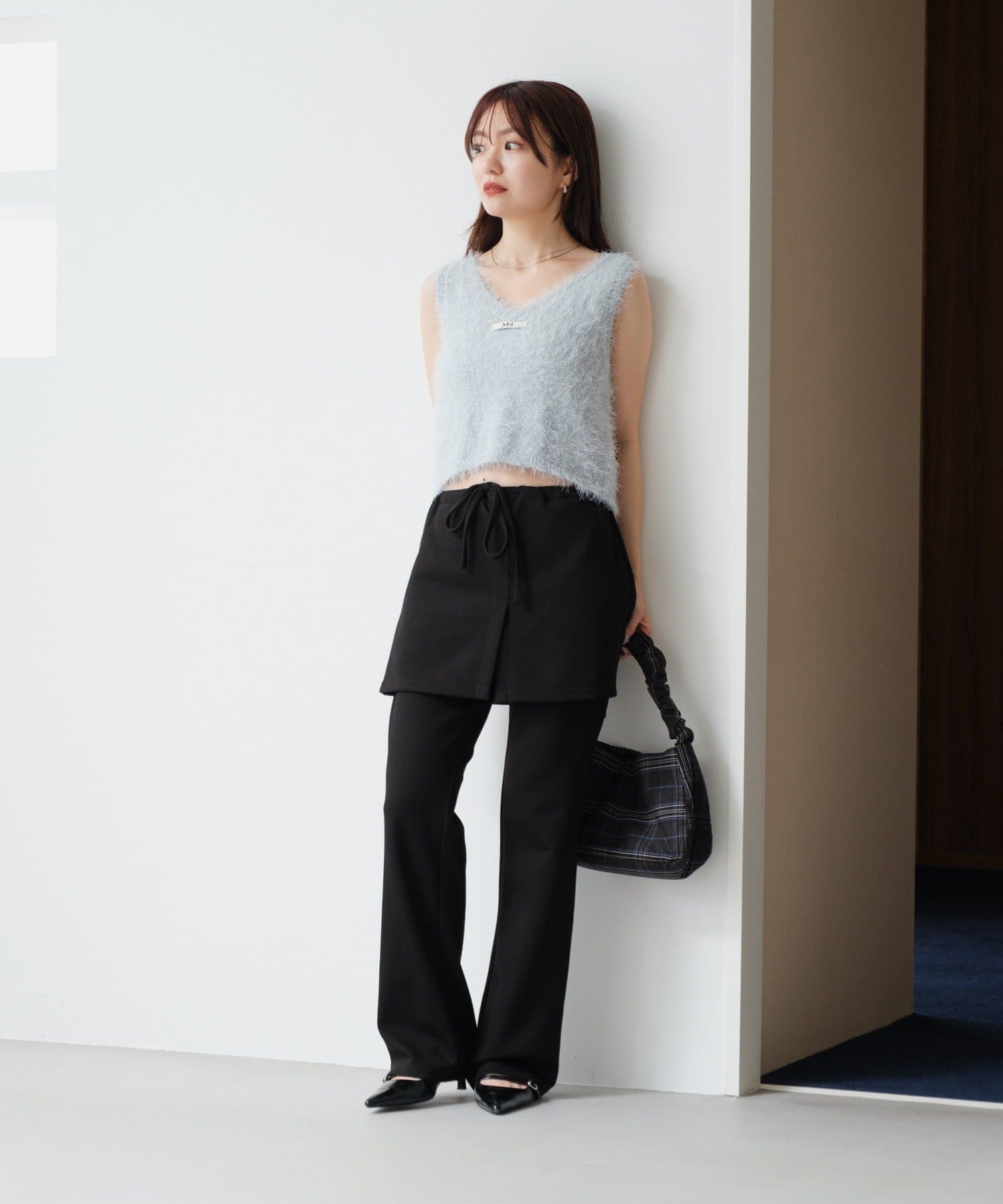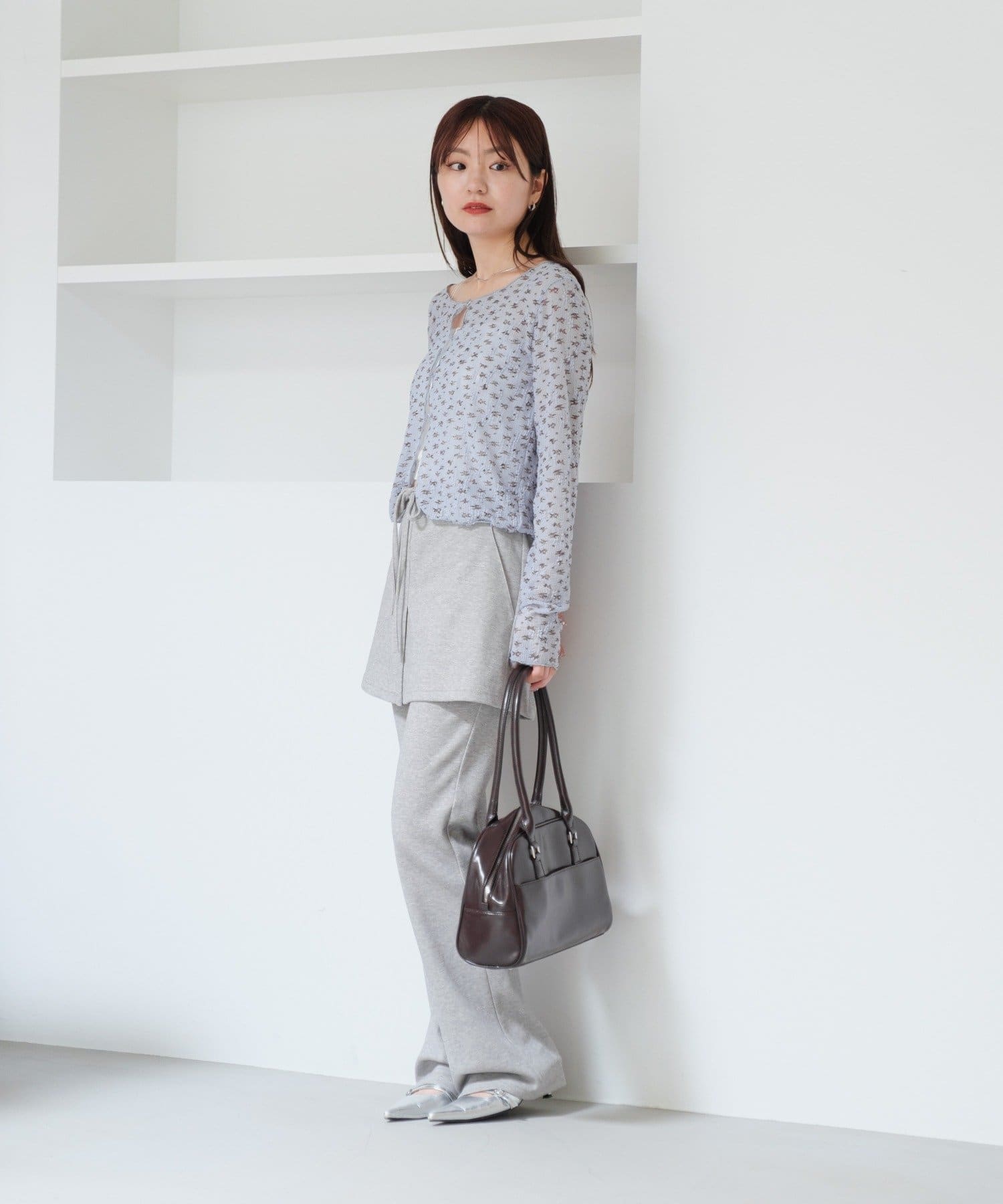 細めのシルエットが脚長効果を叶えるスウェットスカパン