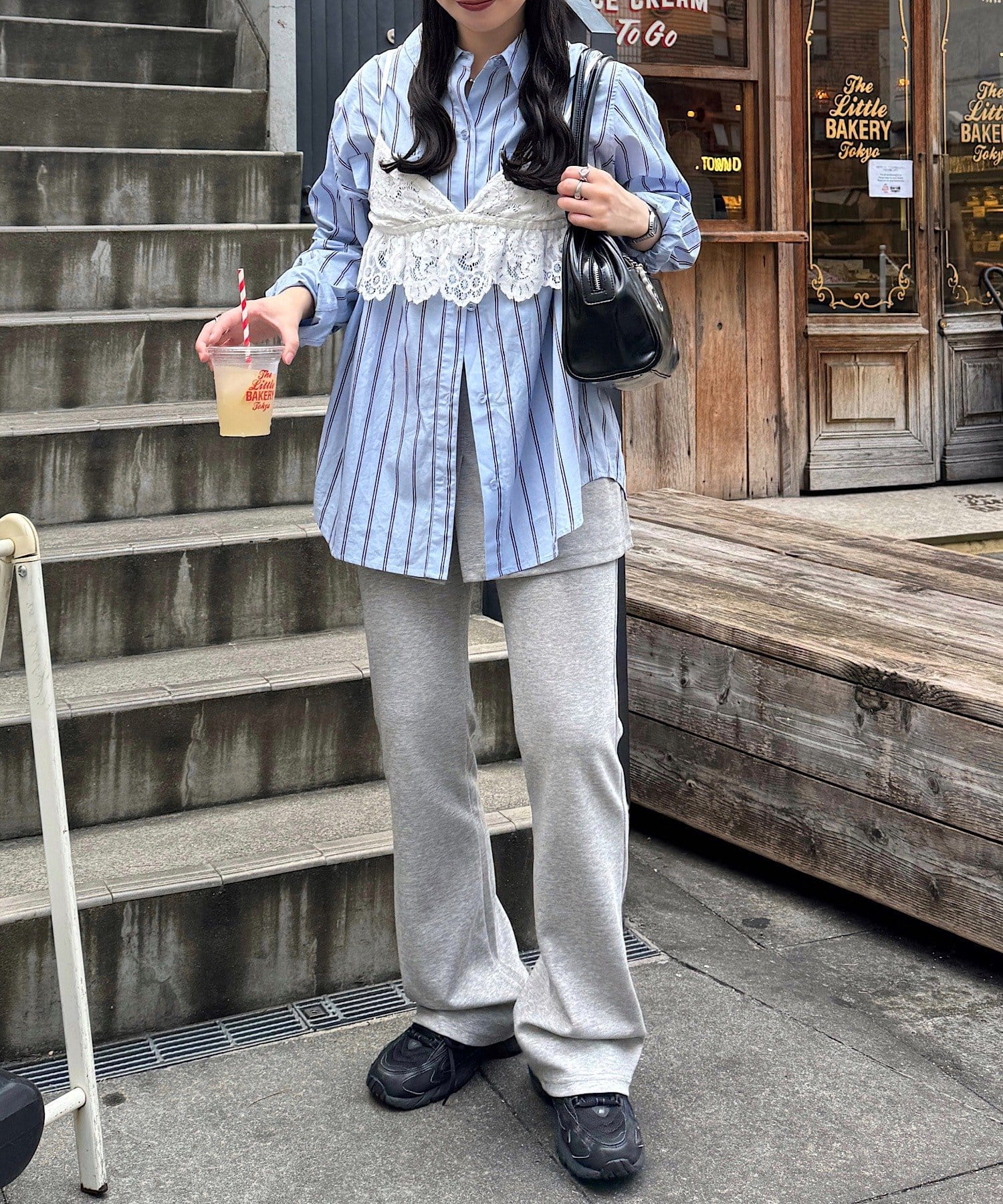 レースやシアー素材のインナーなど甘めのアイテムとも相性抜群です。