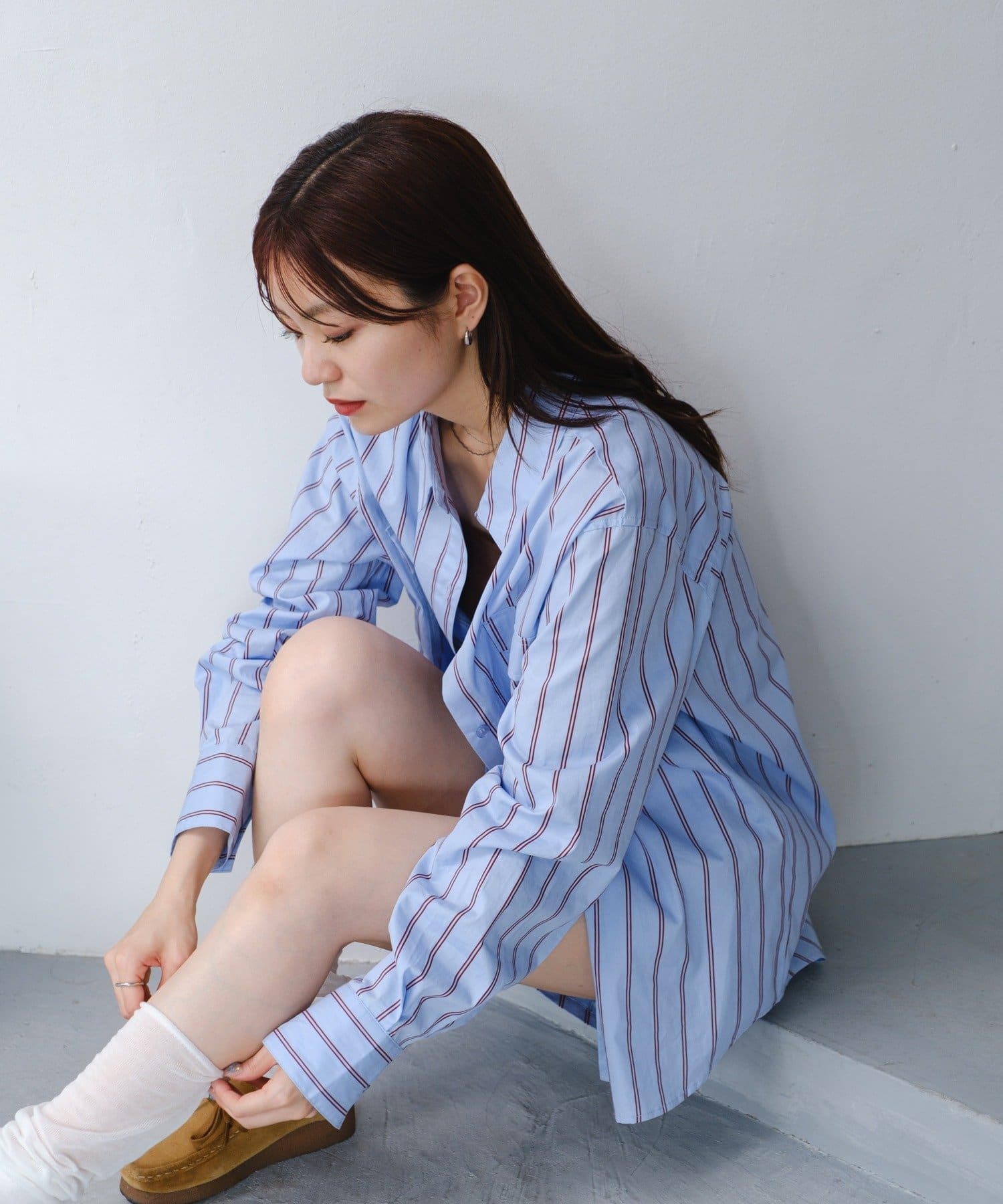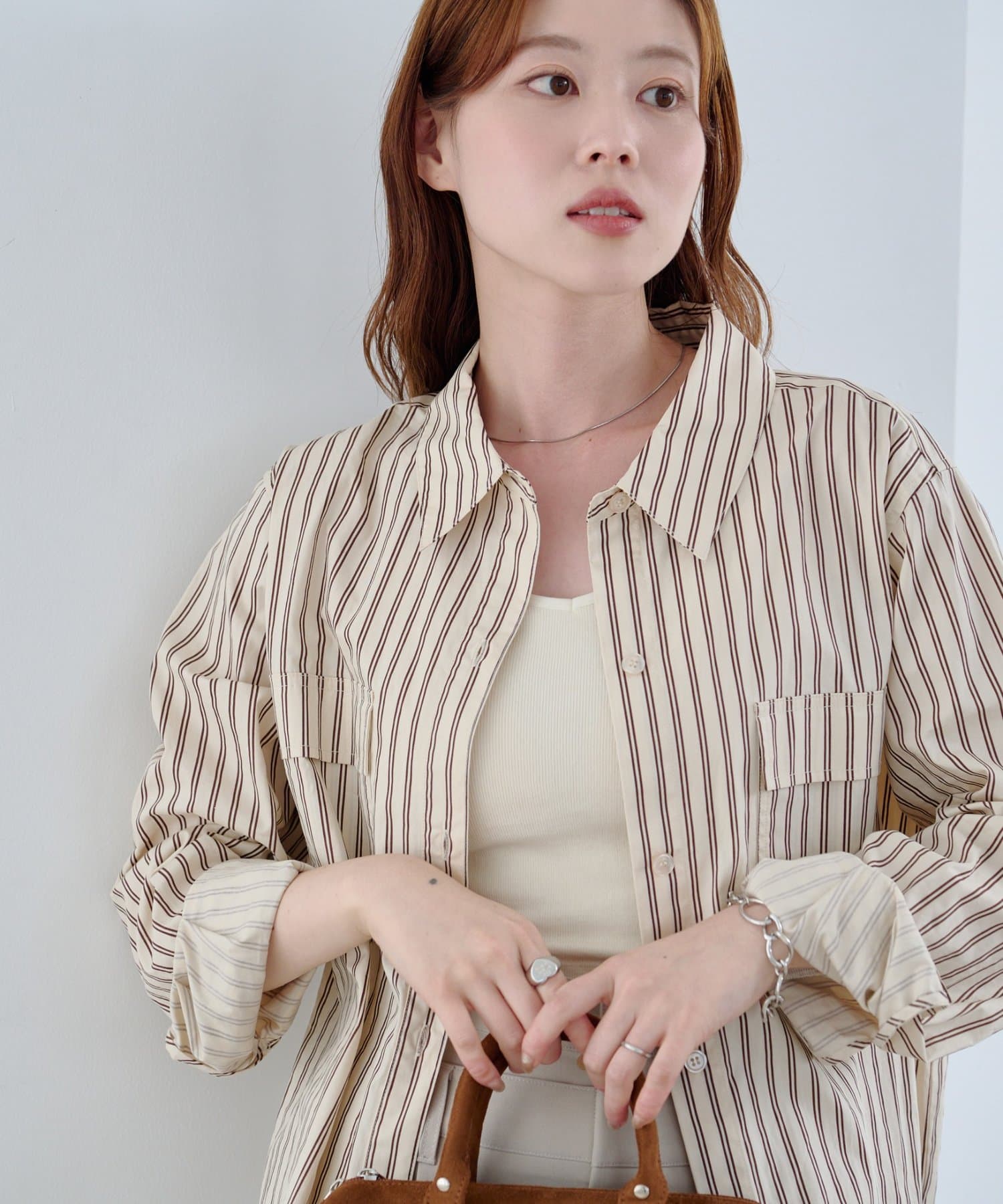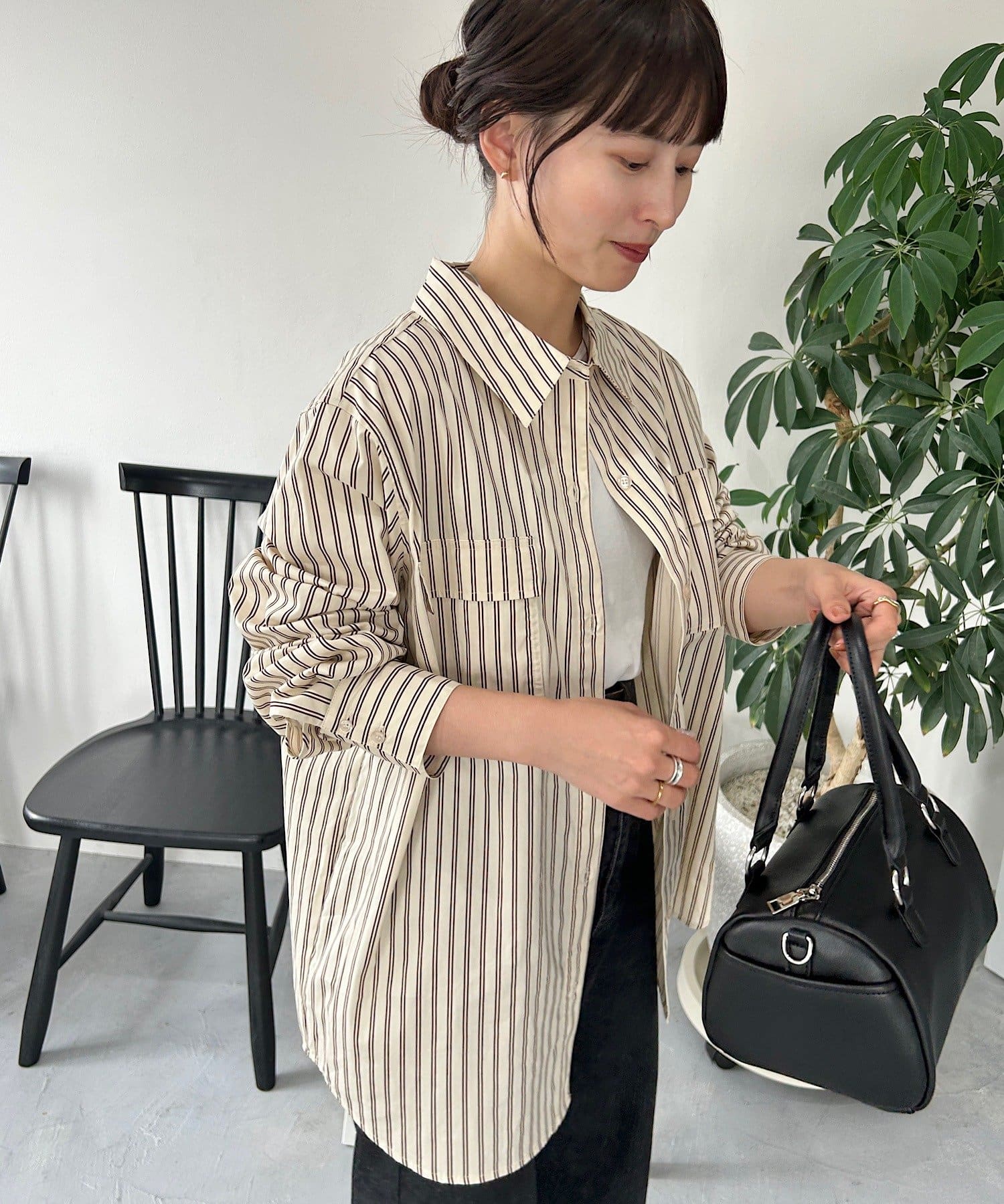 爽やかなストライプ柄が印象的な、リラックス感漂うシャツ