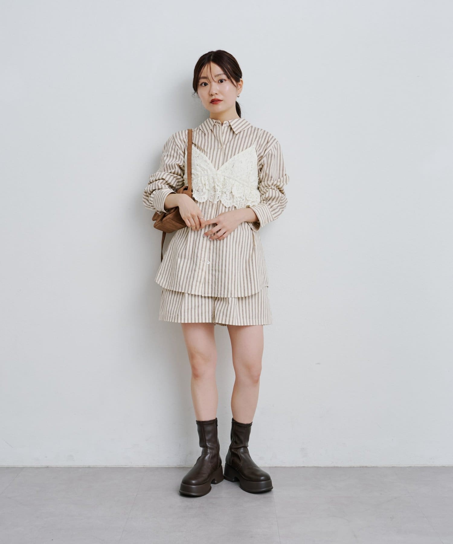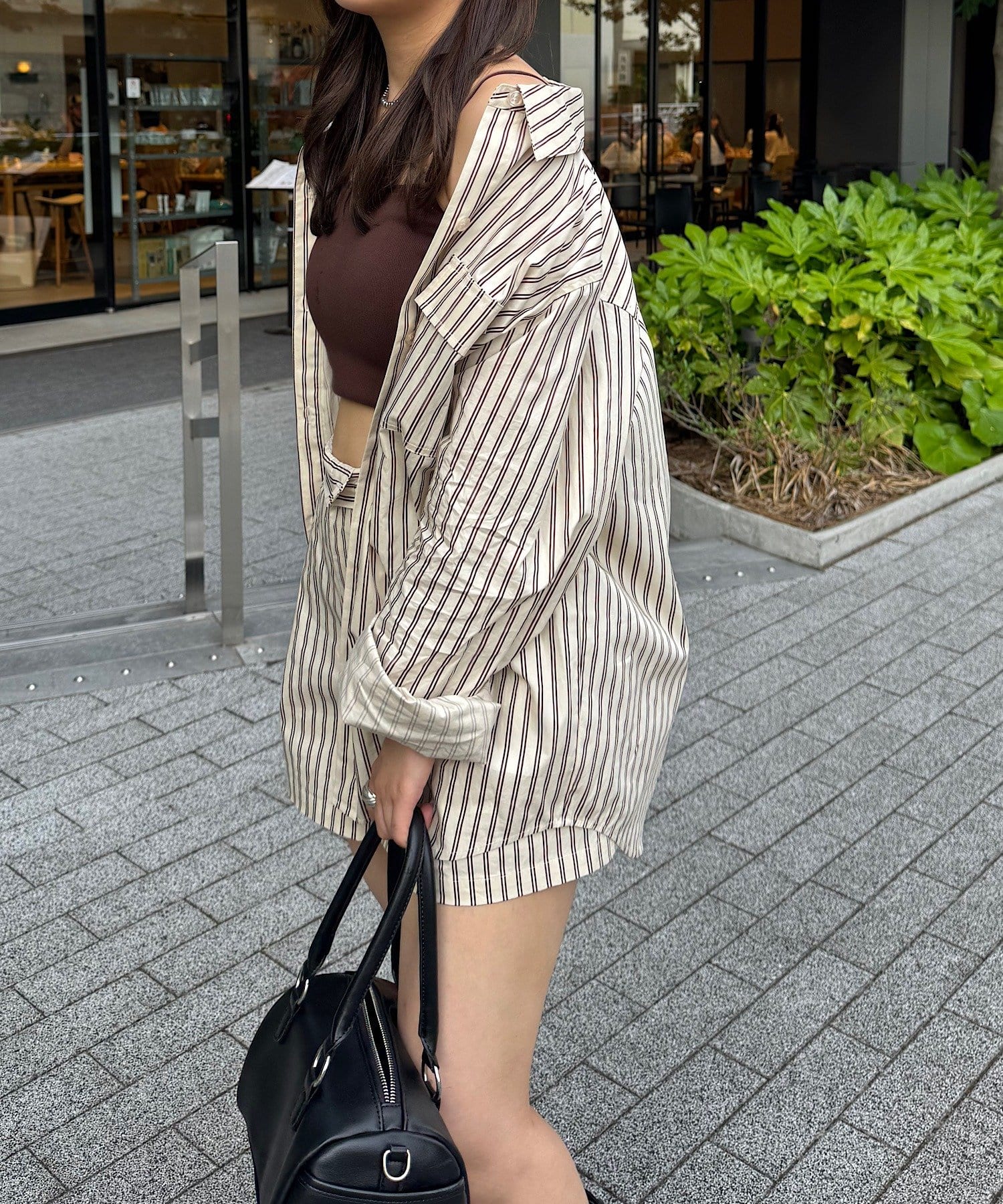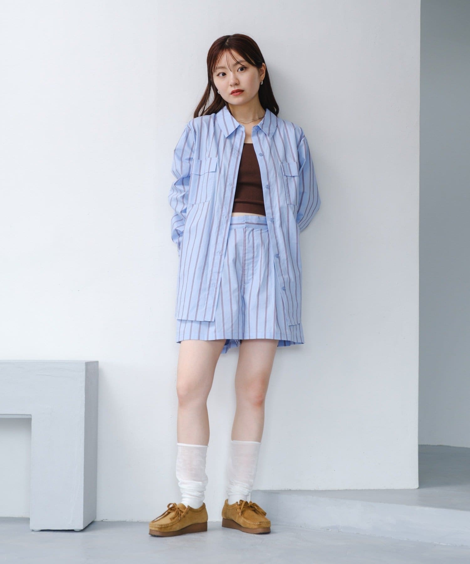 同柄のショートパンツと合わせて、大人のリラックス感を演出。