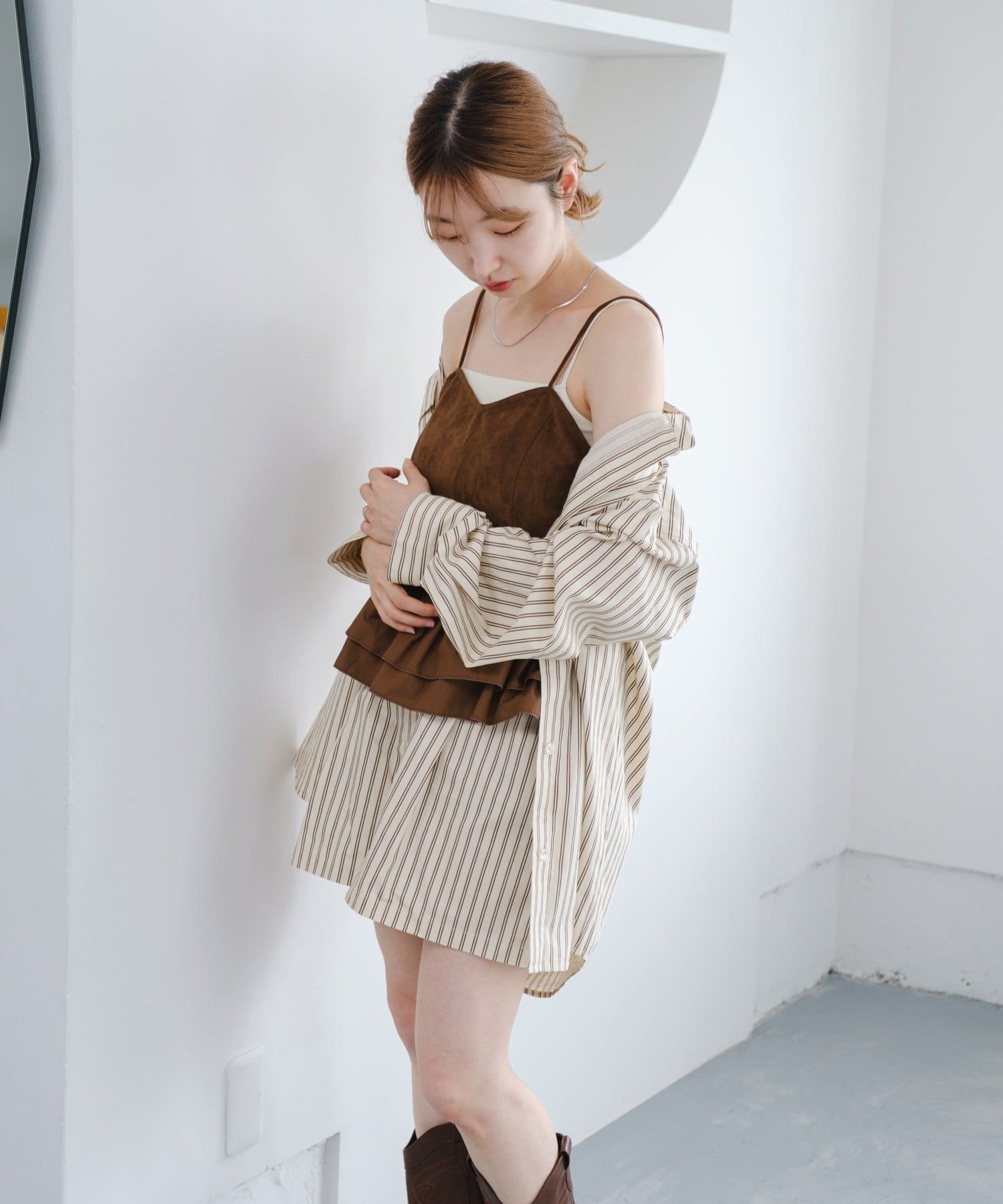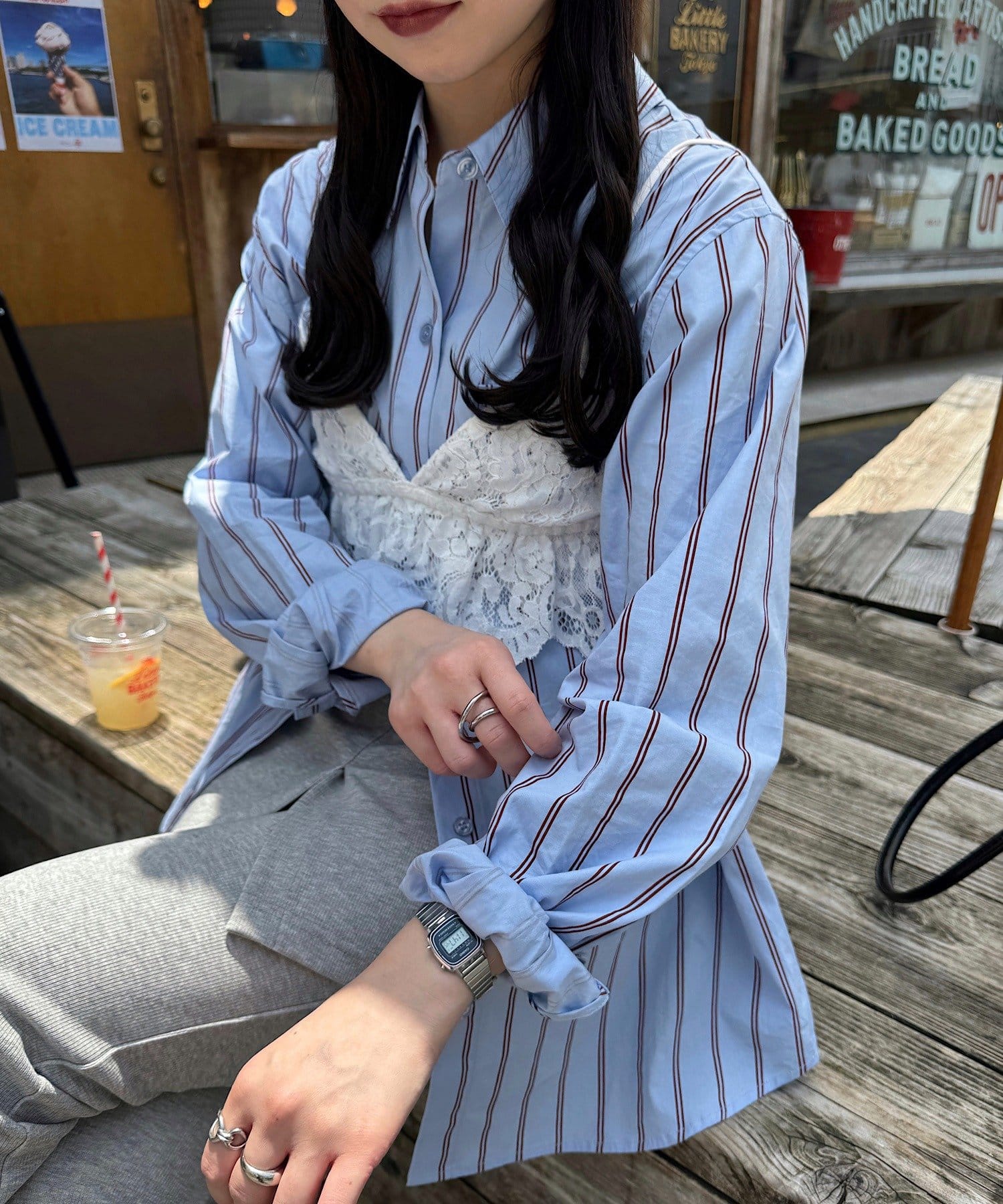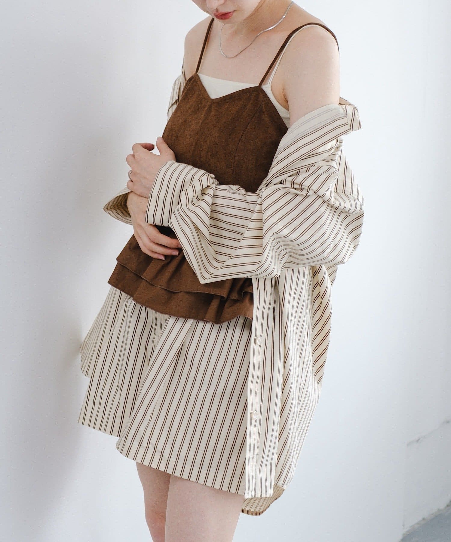 シンプルなTシャツやキャミの上からさらっと羽織れば、夏のレイヤードコーデに。