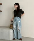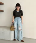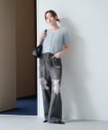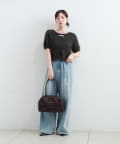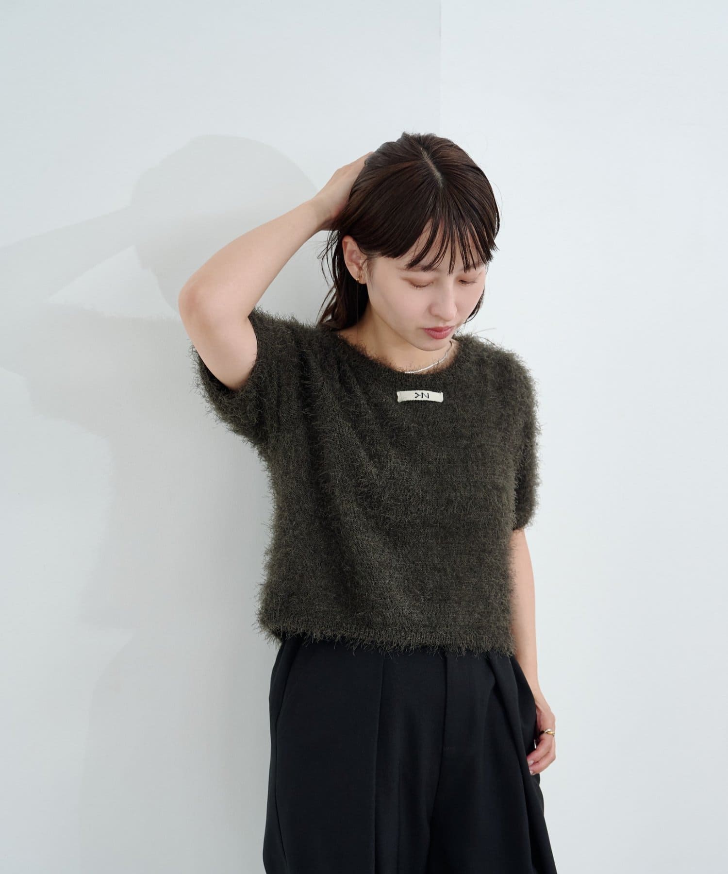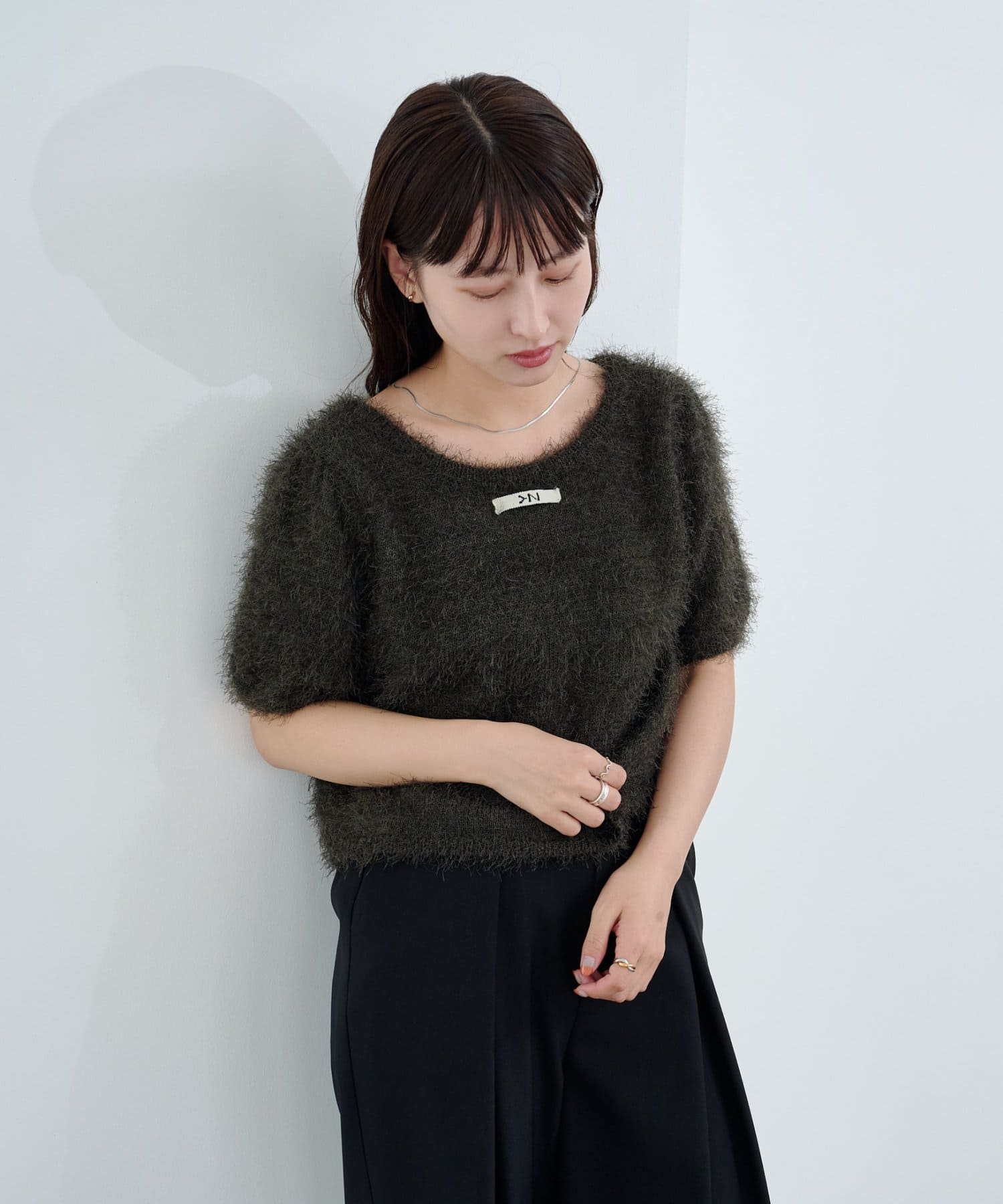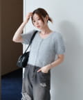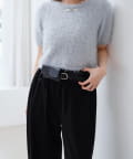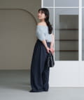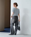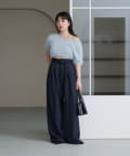 やや広めに開いたクルーネックで、インナーや肌見せとの相性も◎