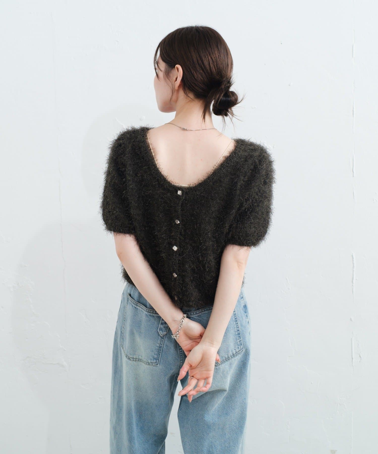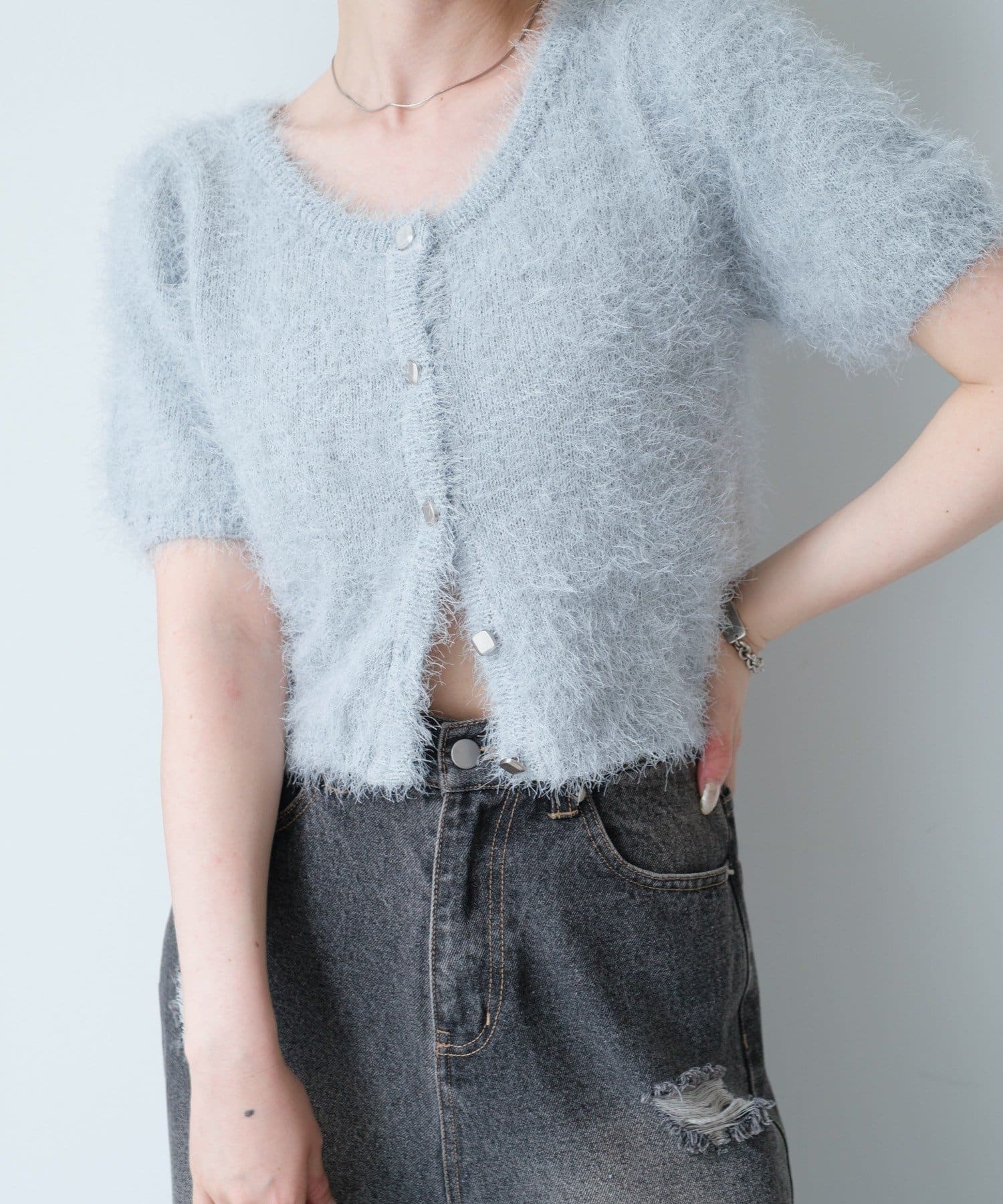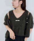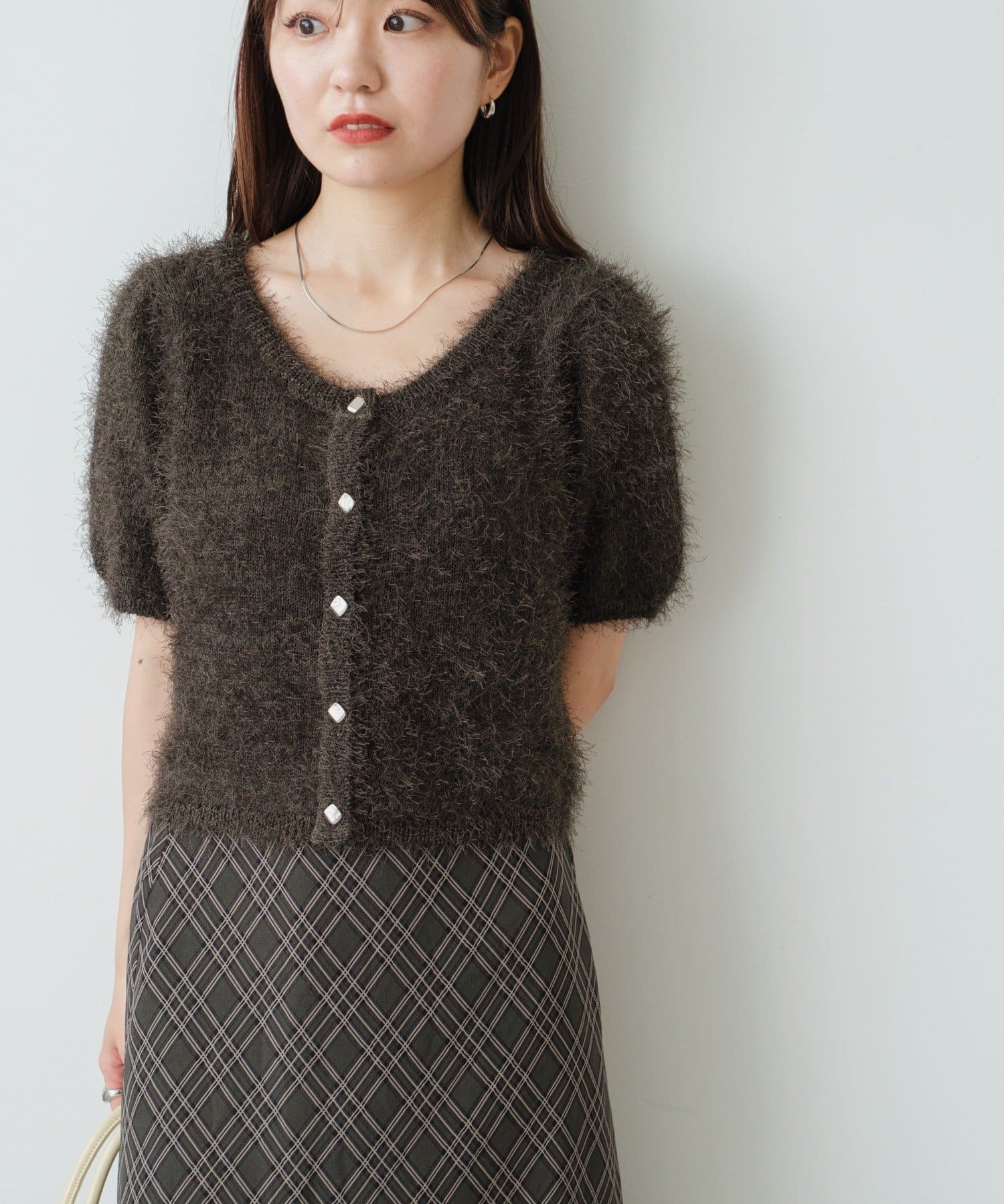 【新色追加/セットアップ対応/前後2WAY】シャギー半袖カーディガン