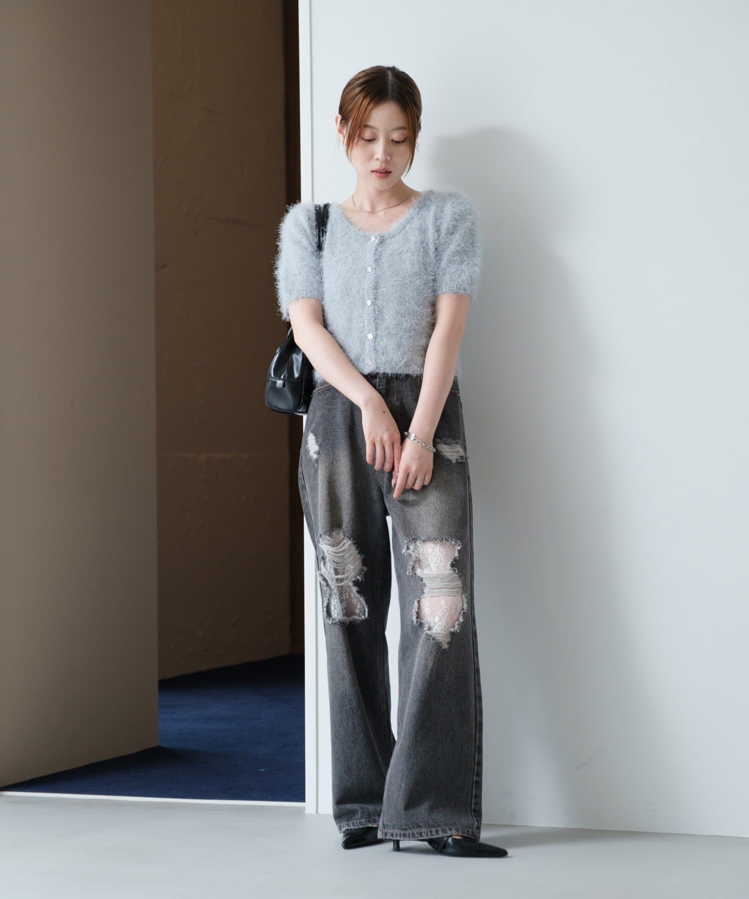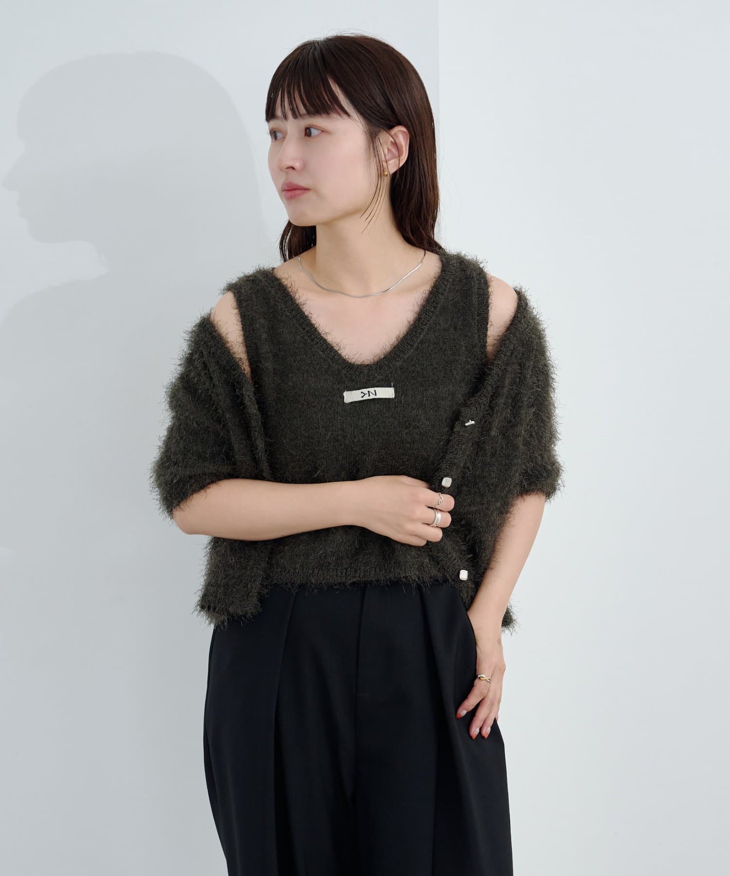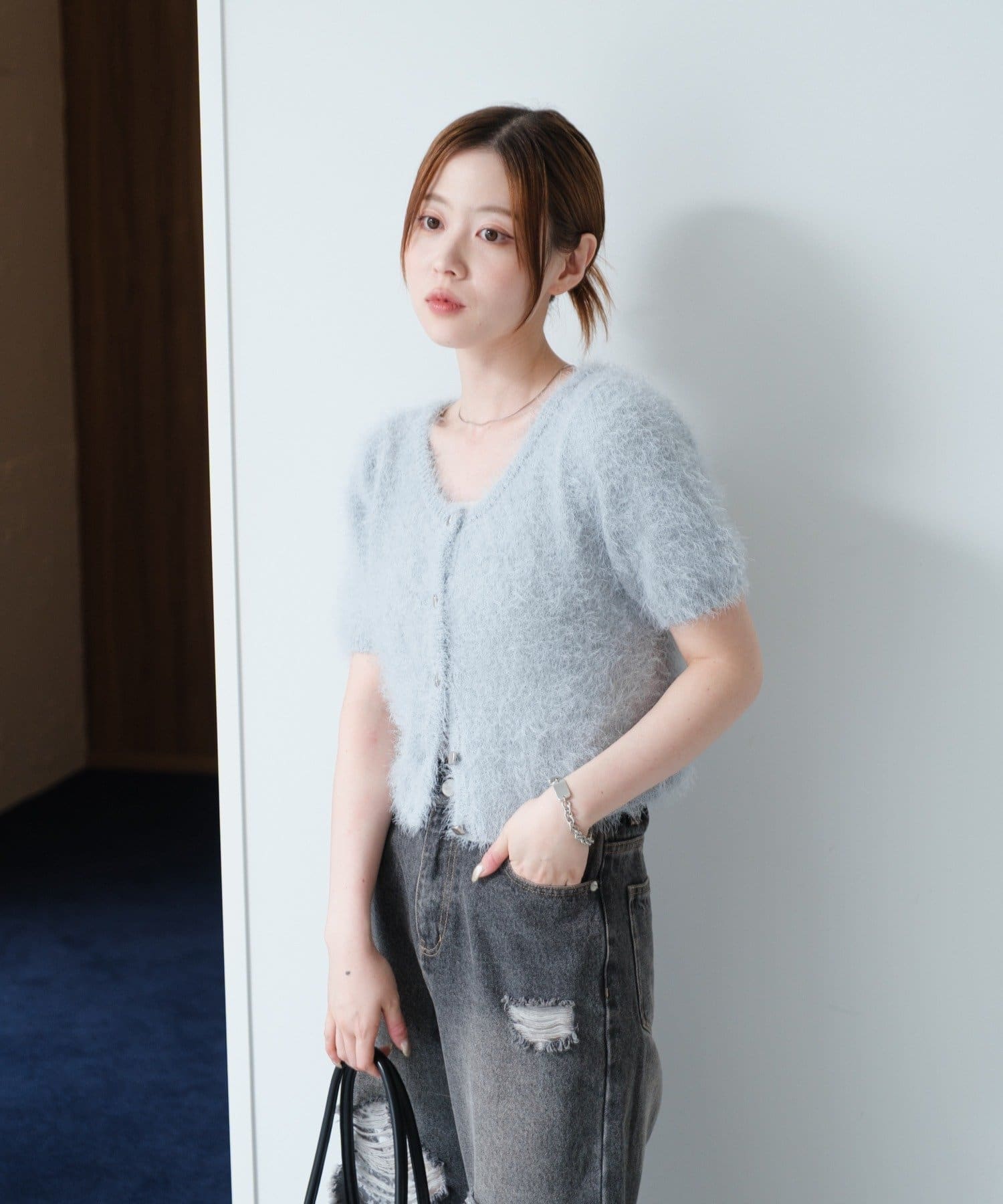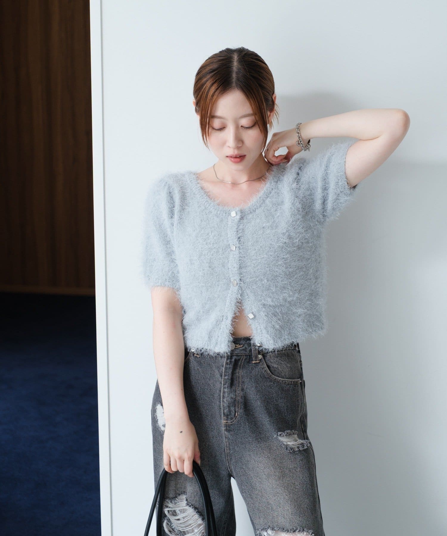 【新色追加/セットアップ対応/前後2WAY】シャギー半袖カーディガン