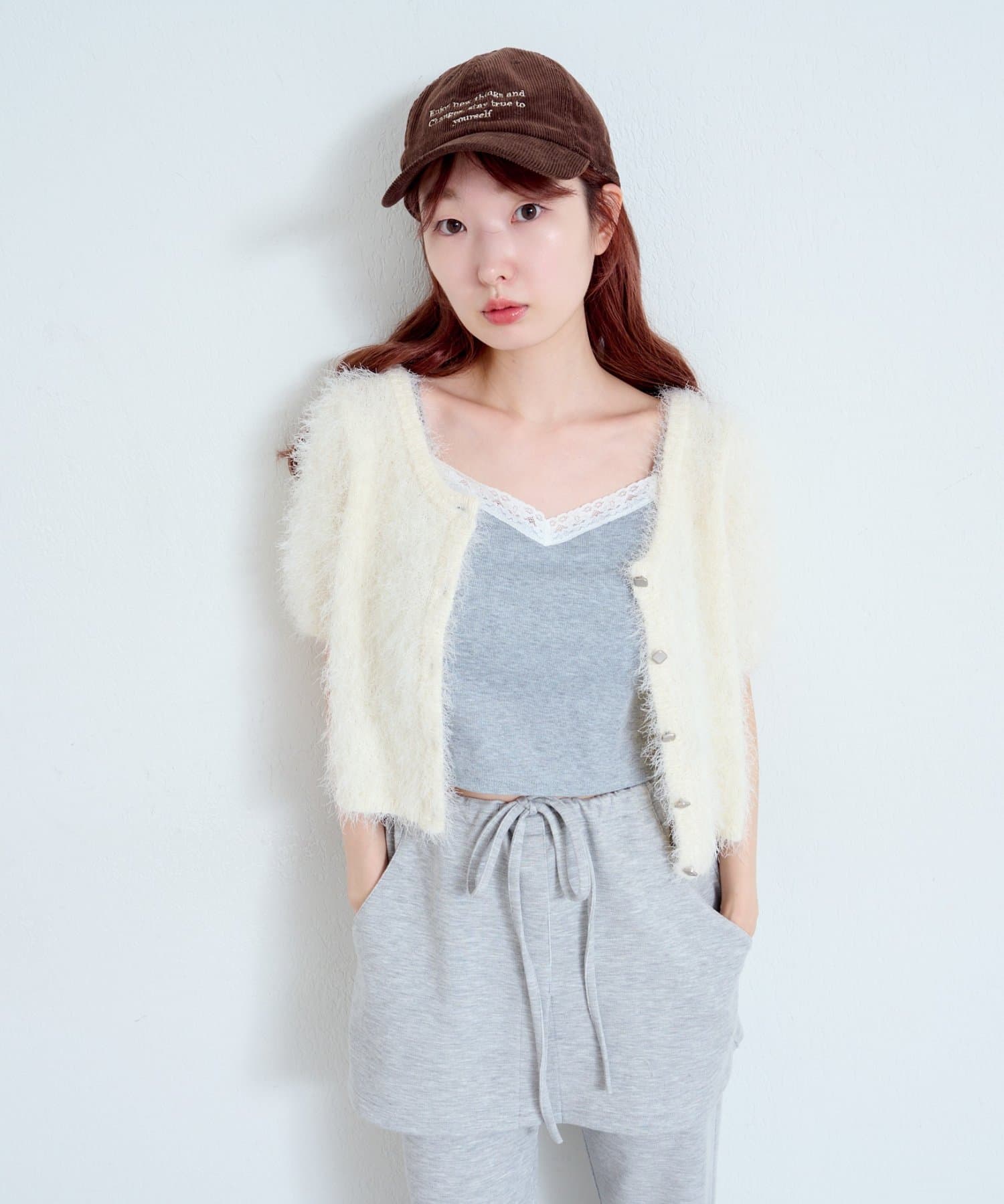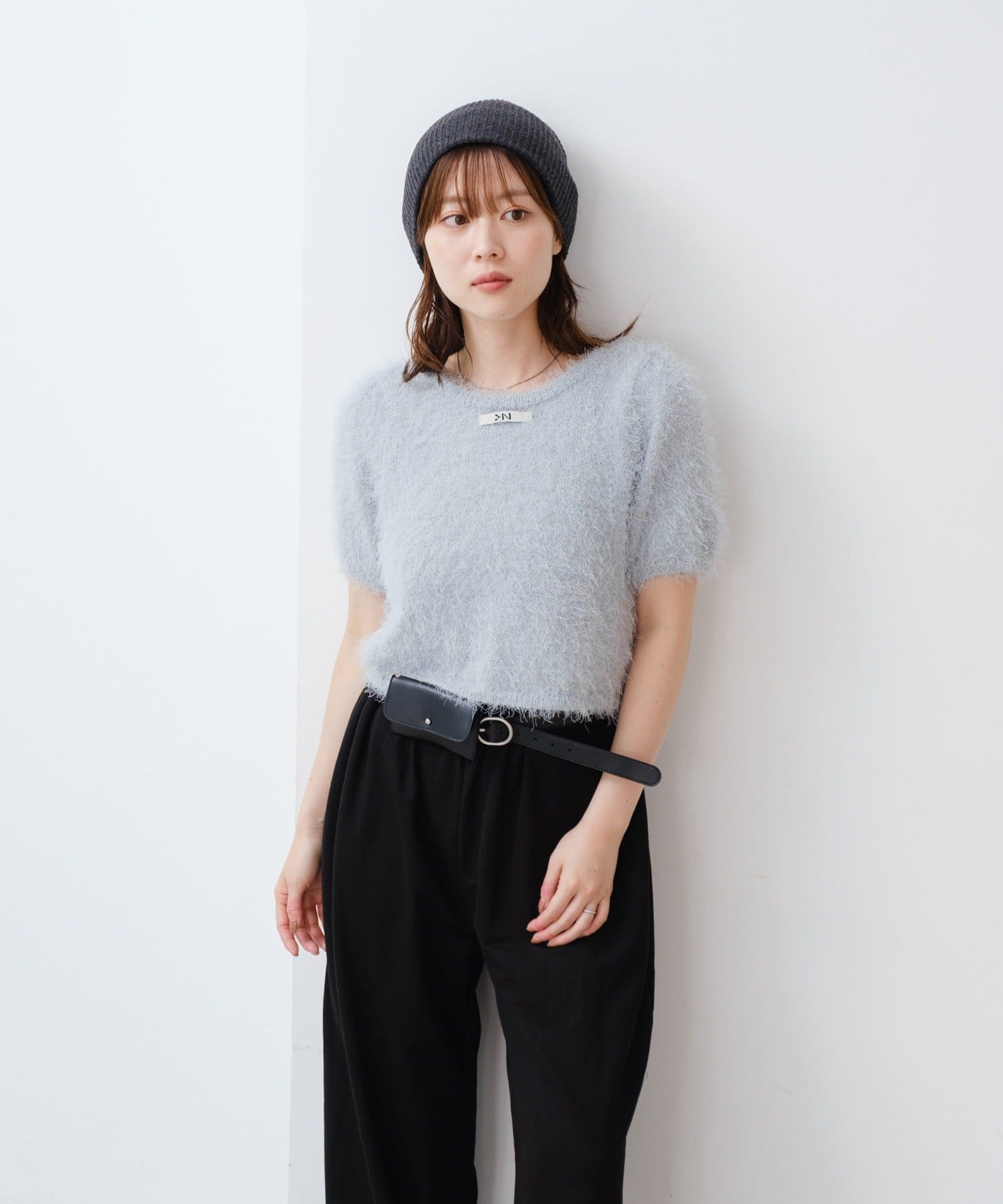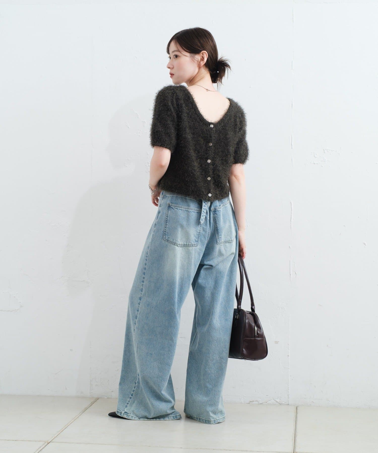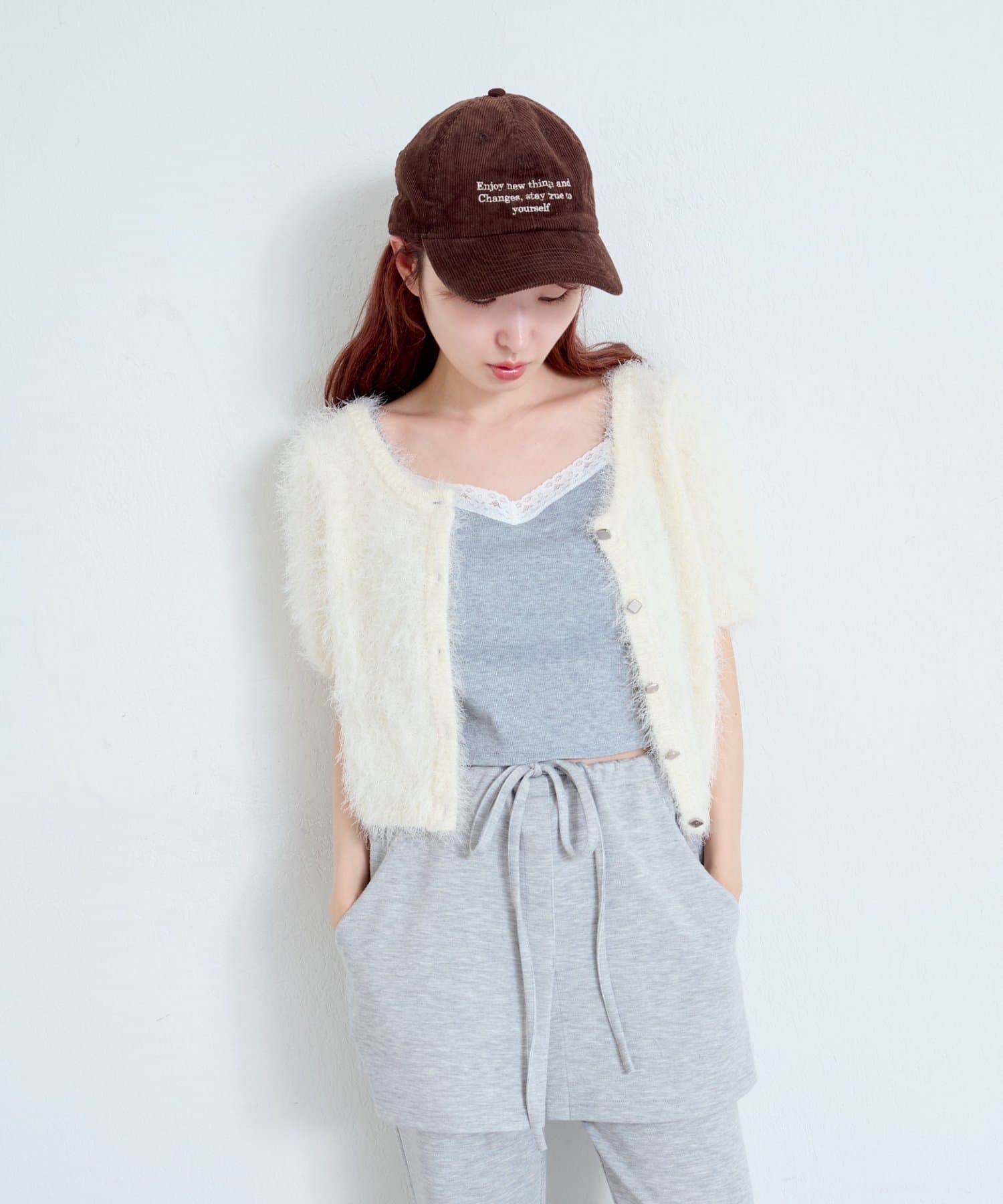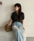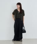 コンパクトなショート丈にフロントボタンをあしらい、可愛らしさと抜け感を両立。