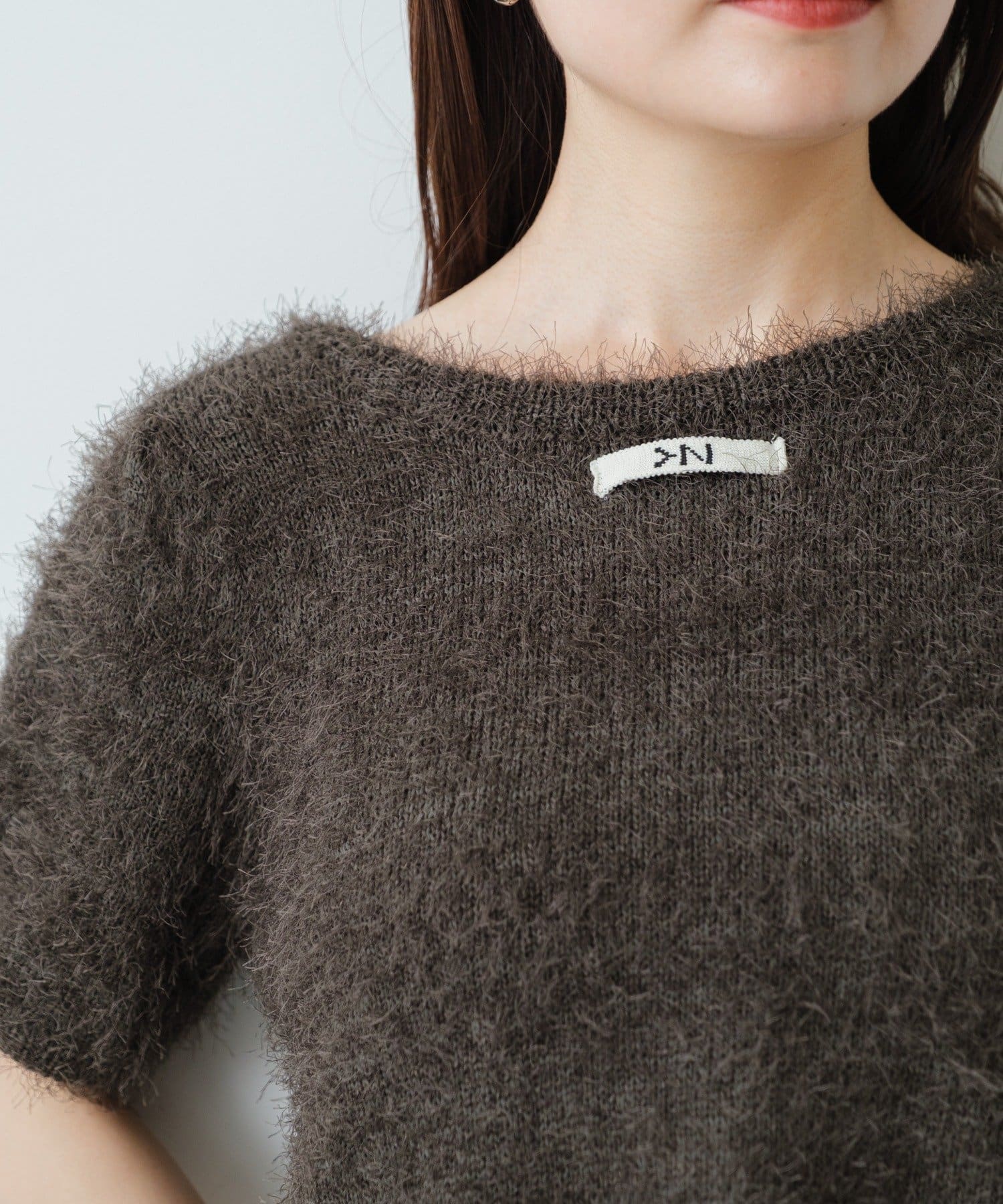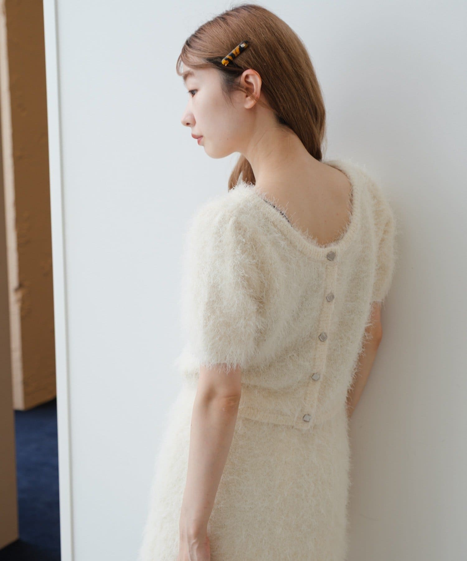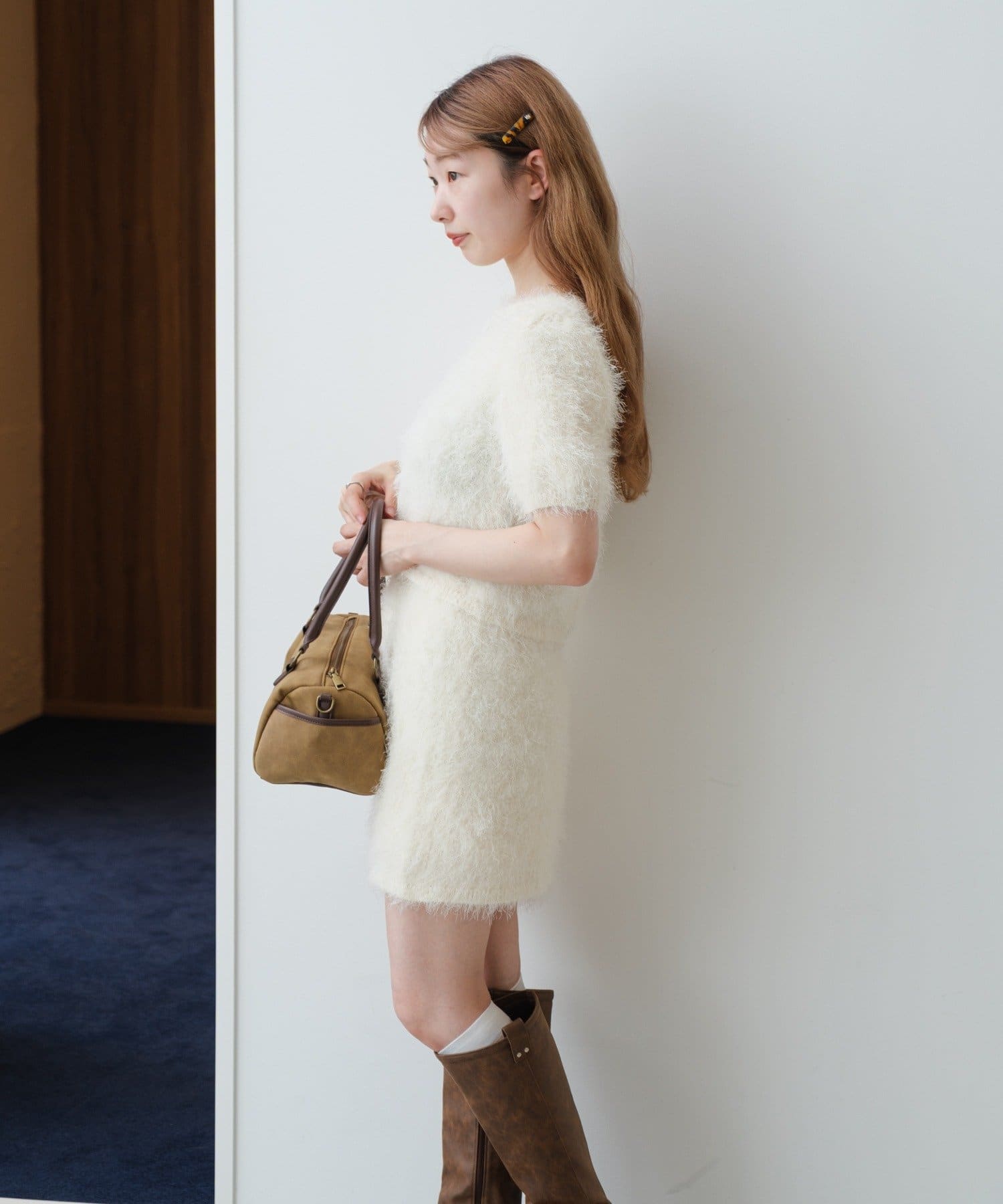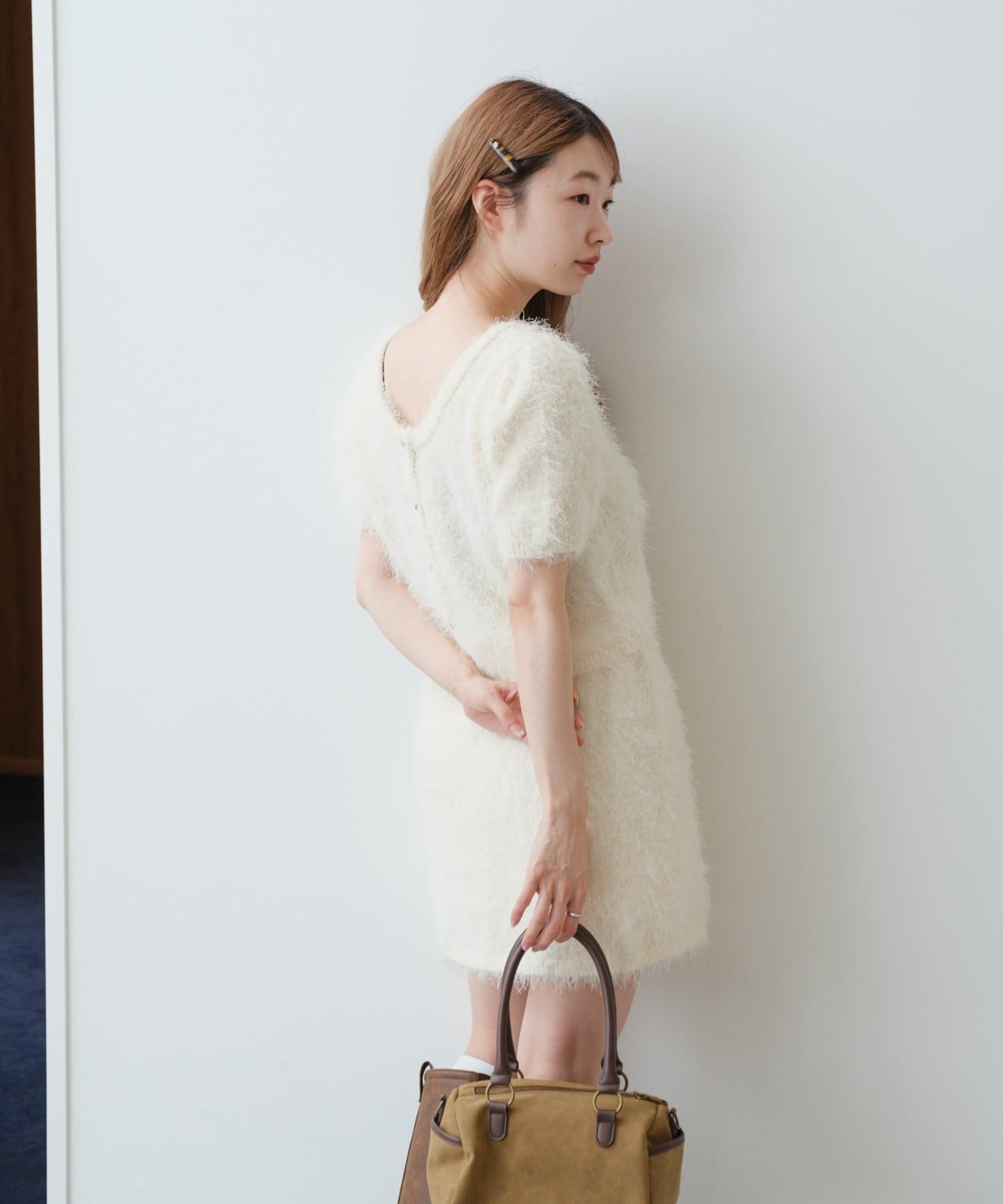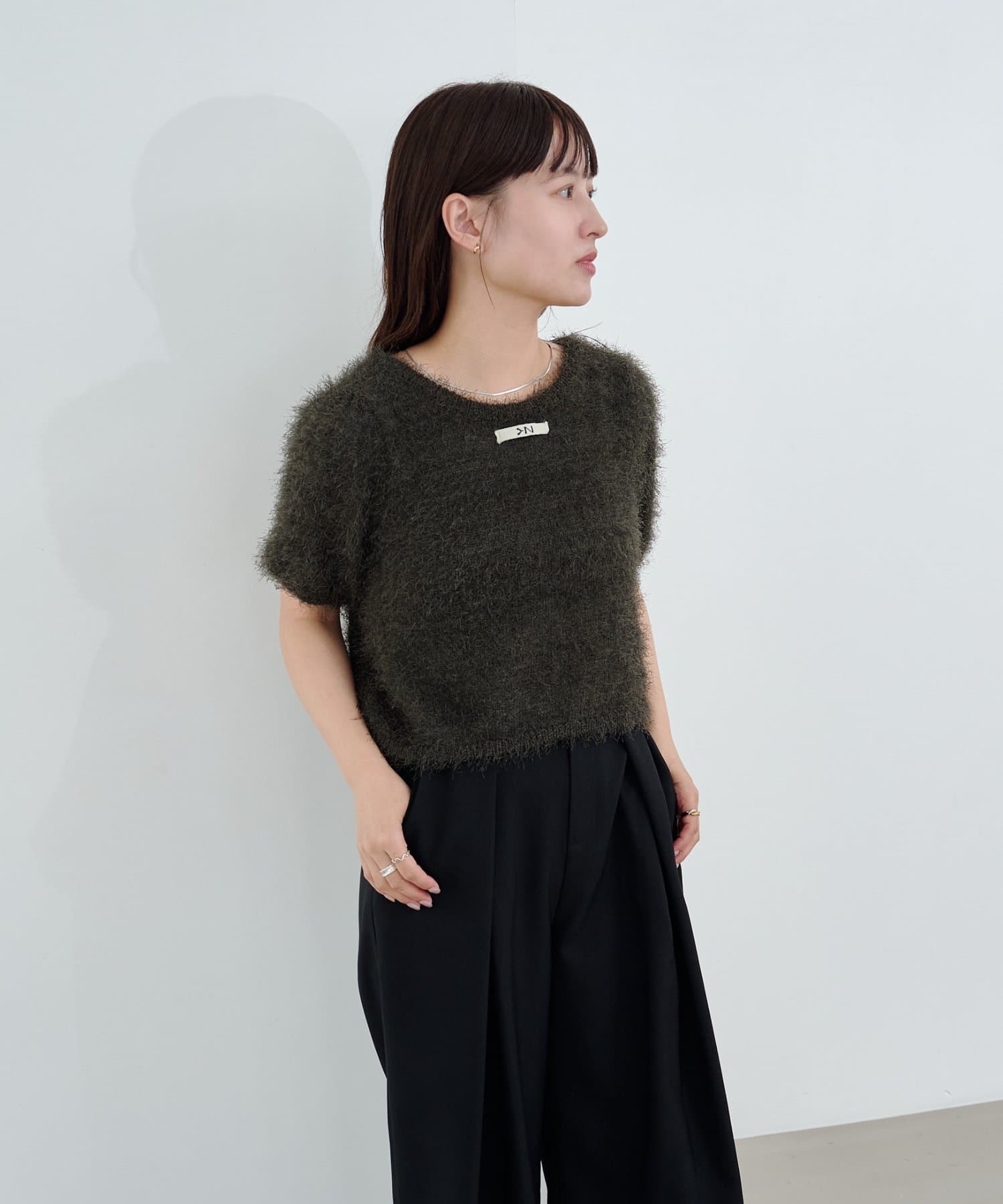 毛足の長いシャギーニット素材。