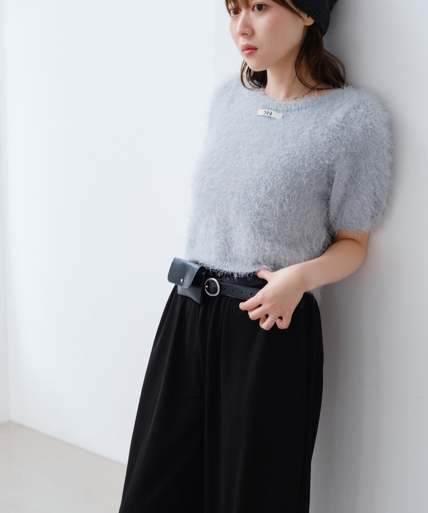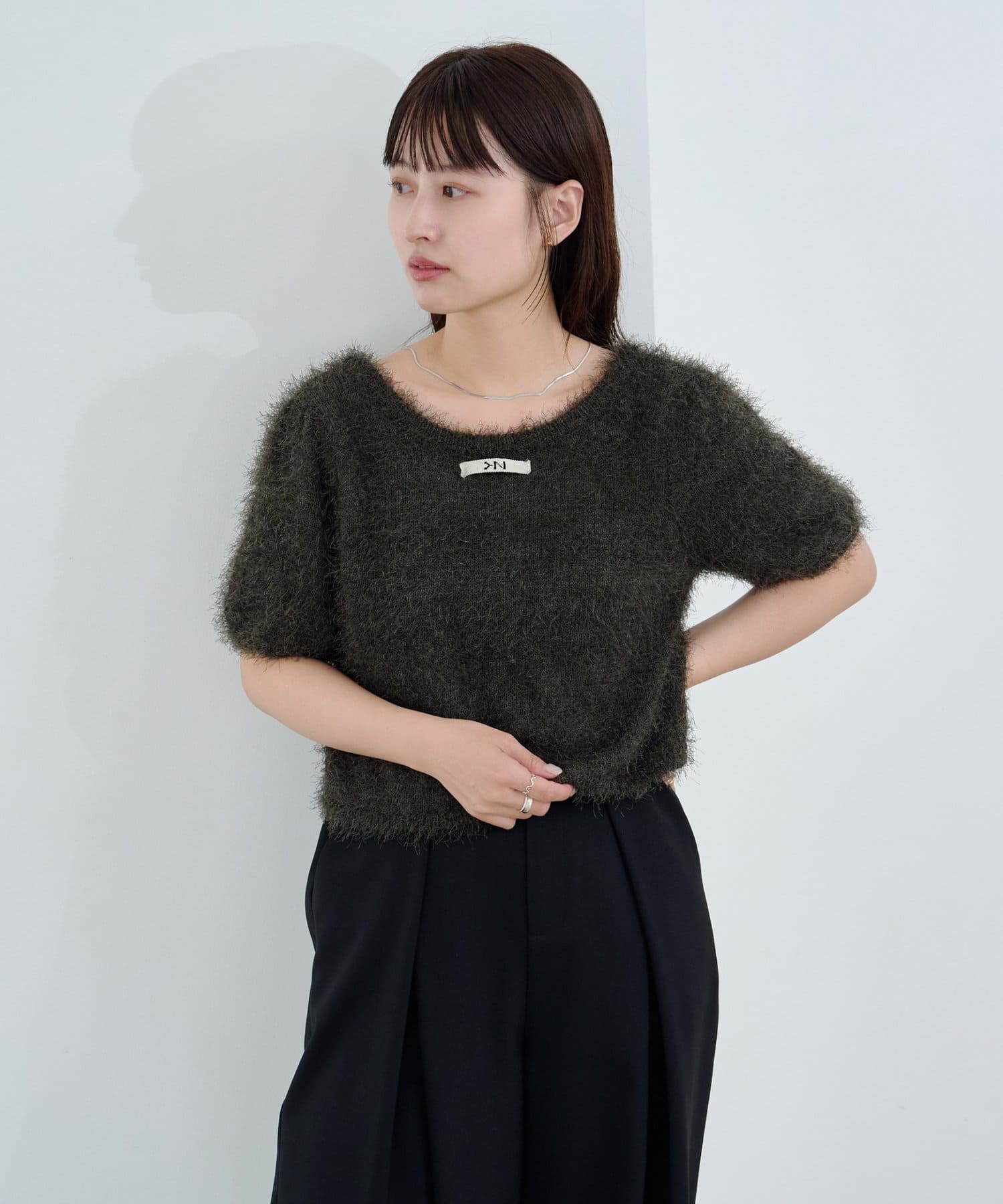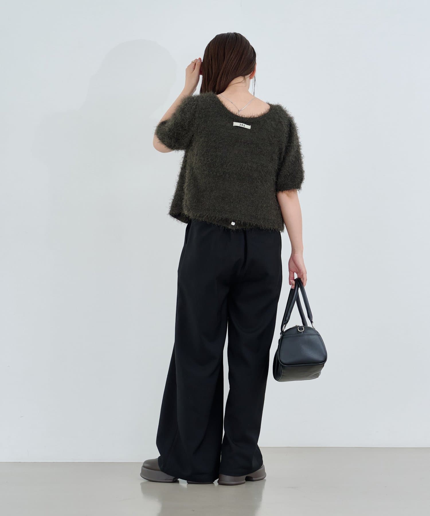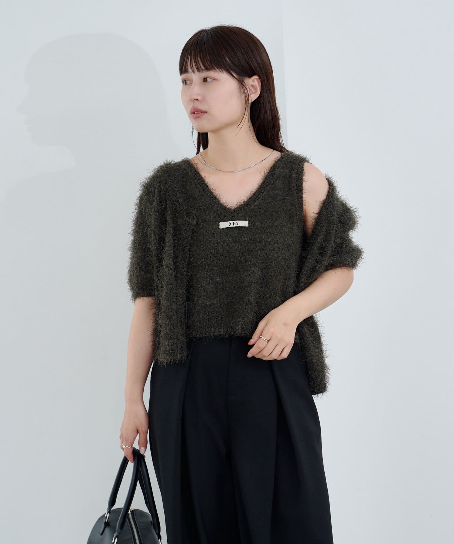 毛足の長いシャギーニット素材。