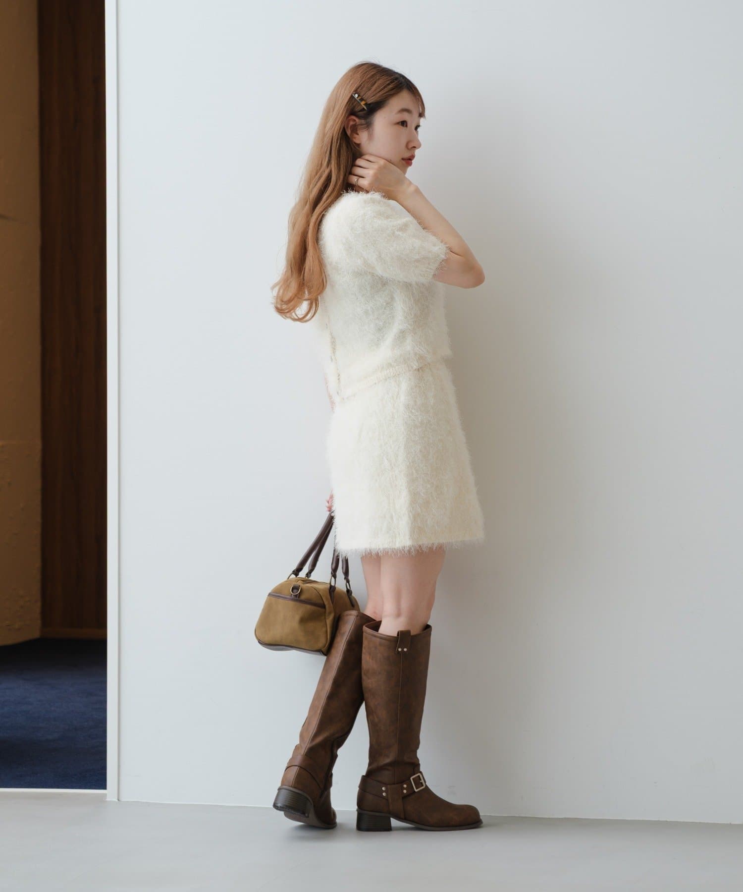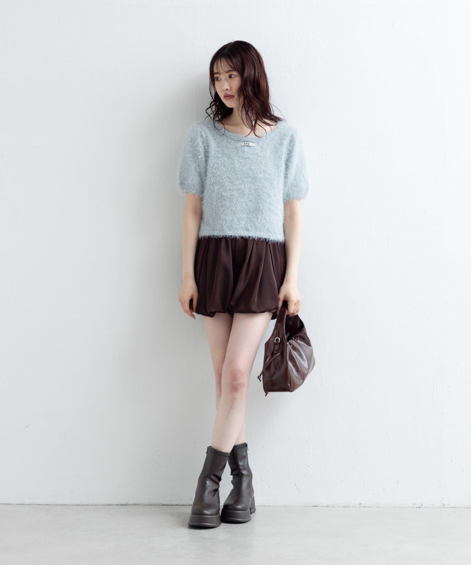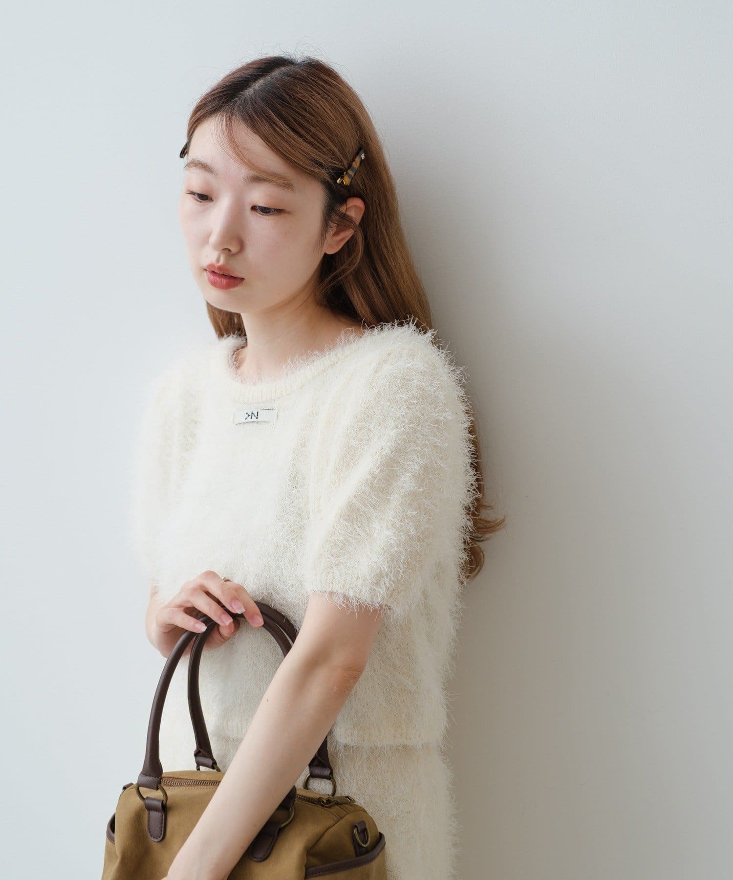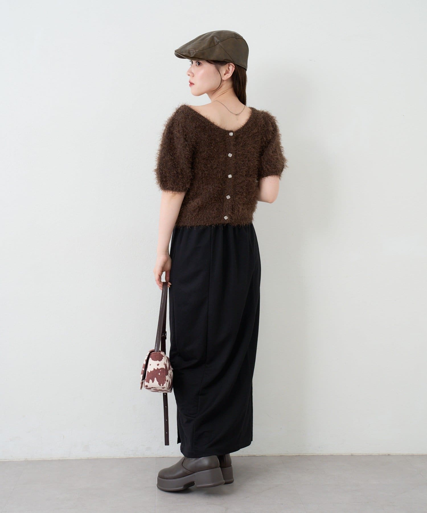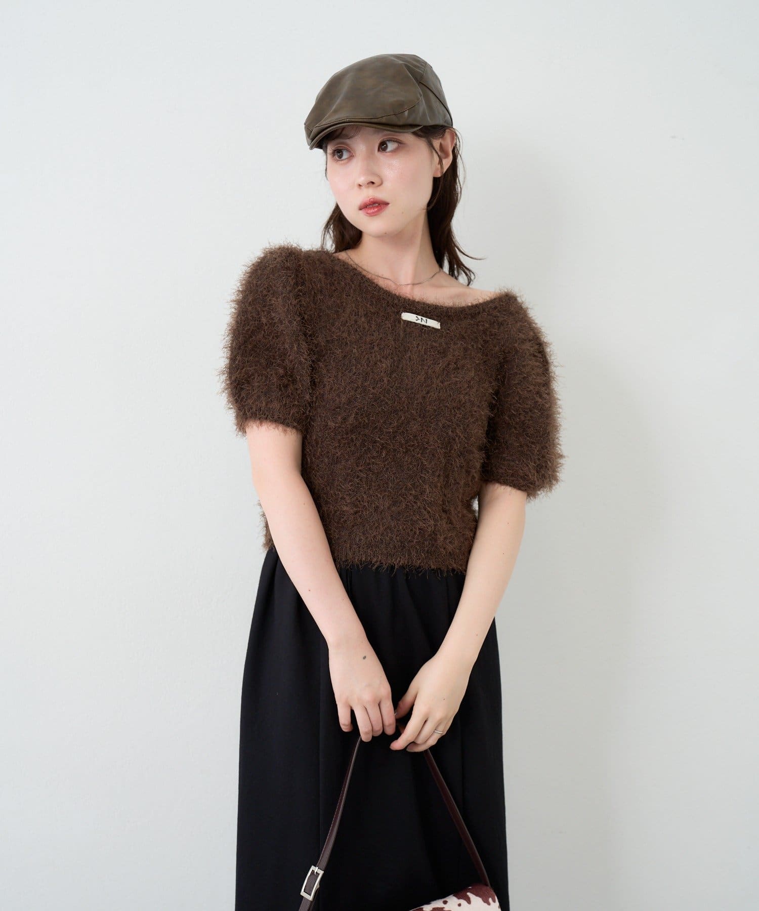 毛足の長いシャギーニット素材。