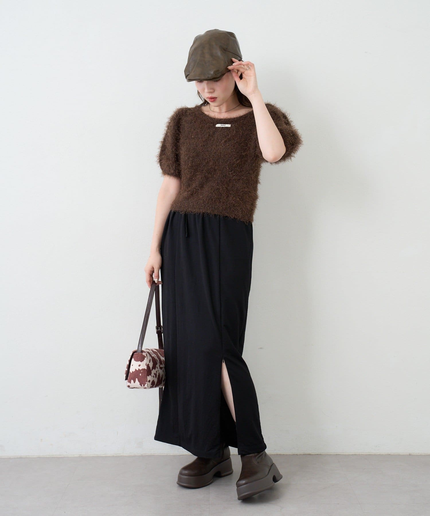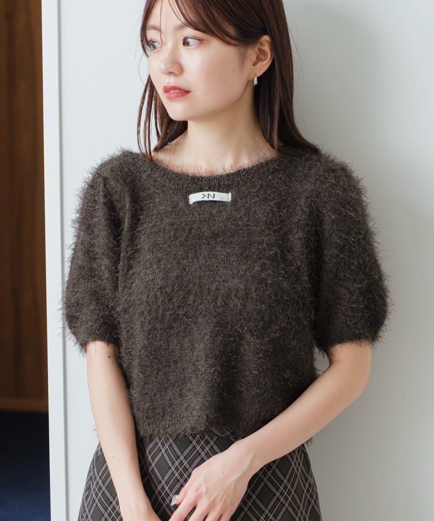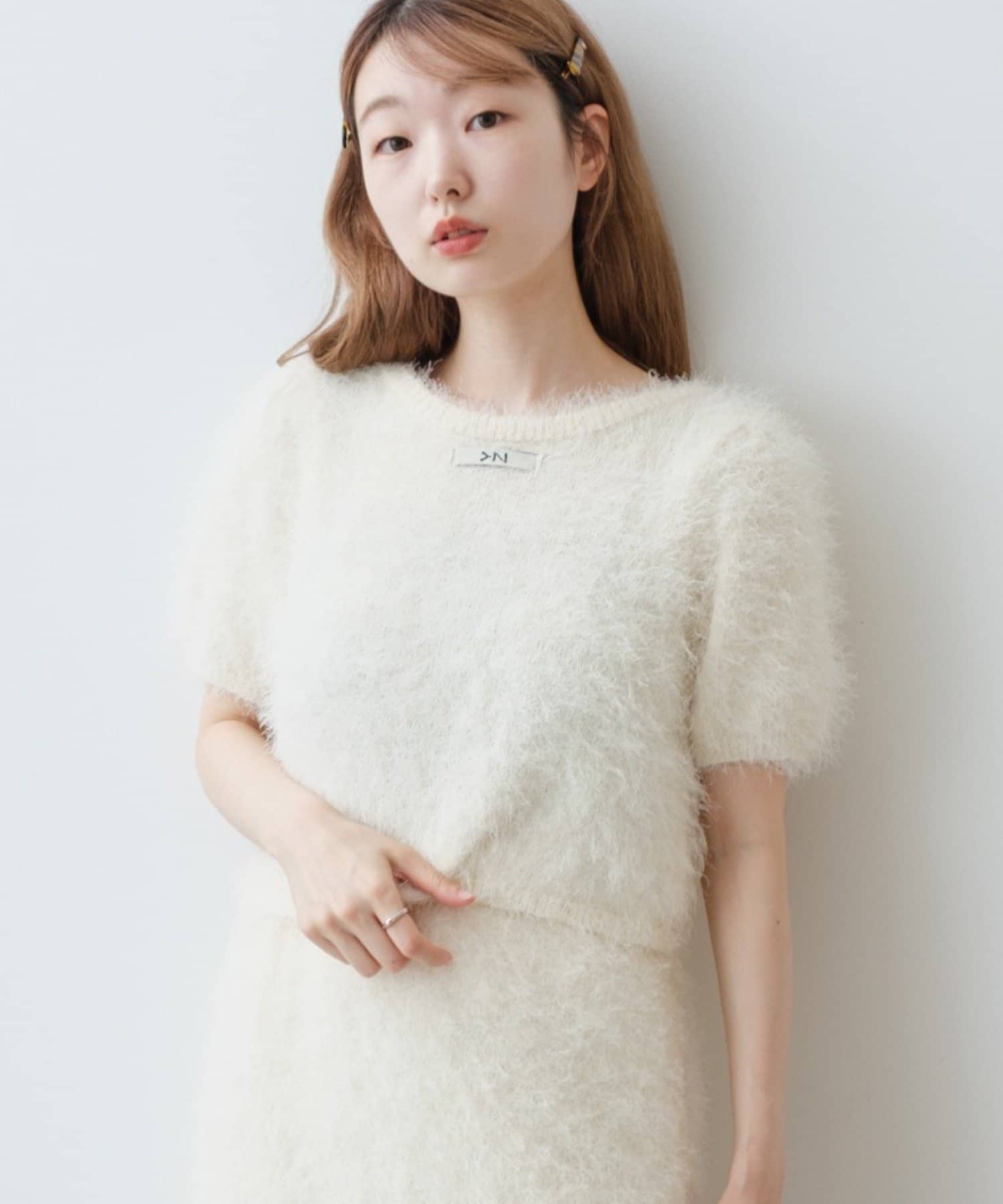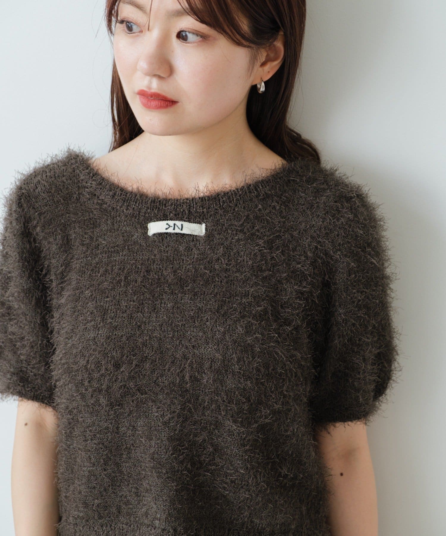 毛足の長いシャギーニット素材。