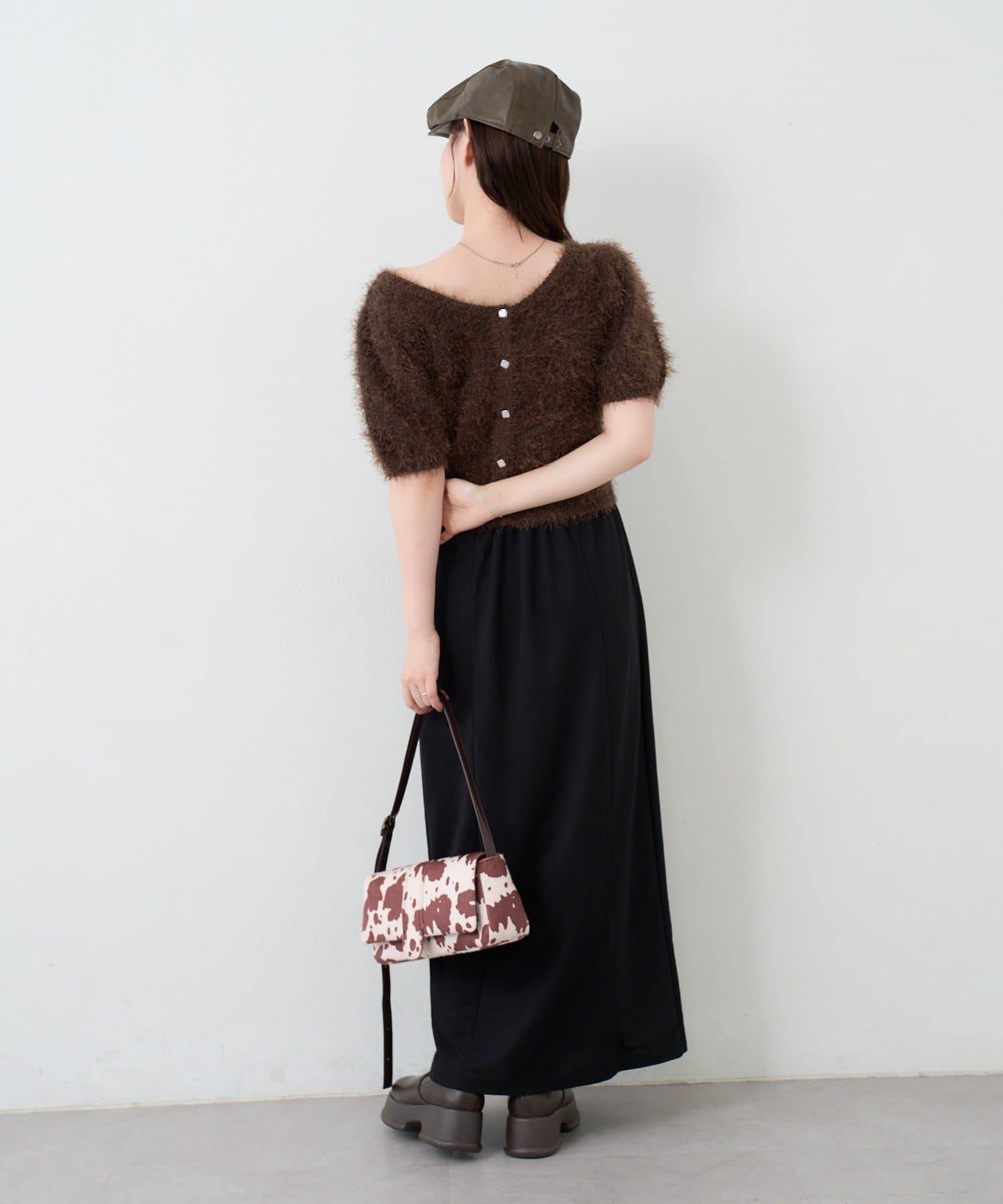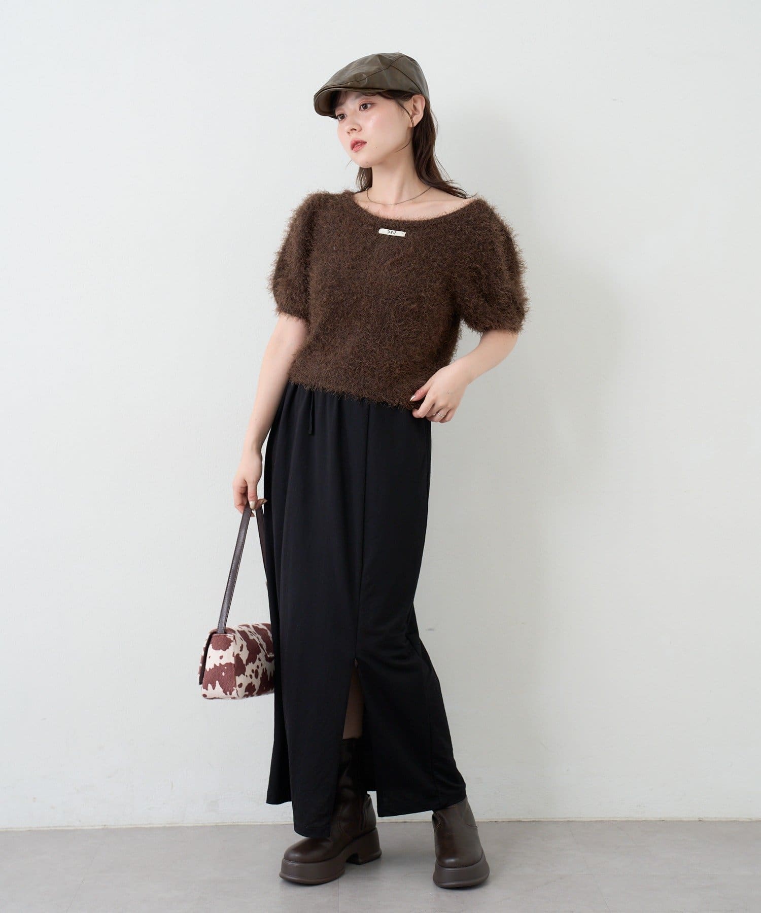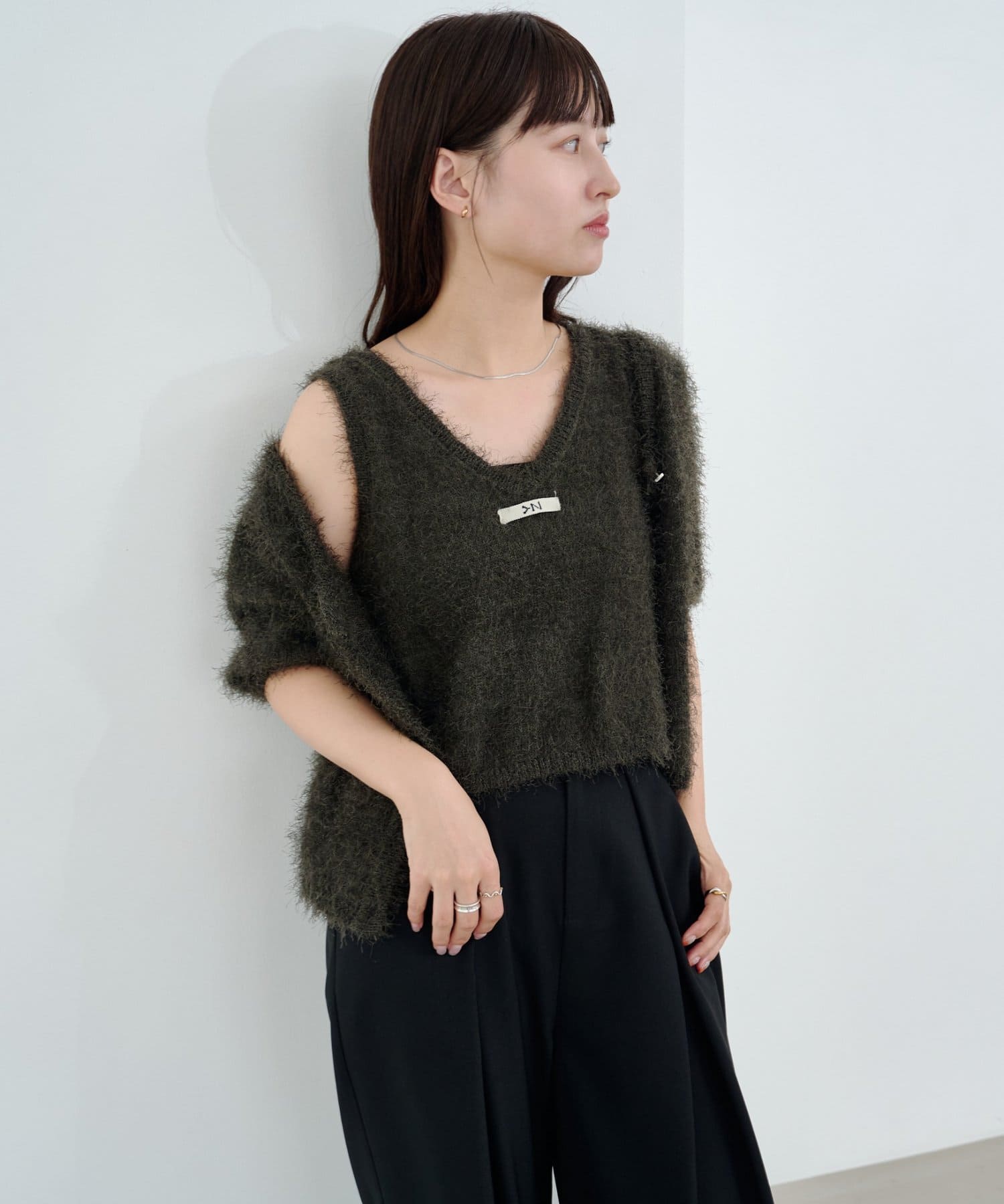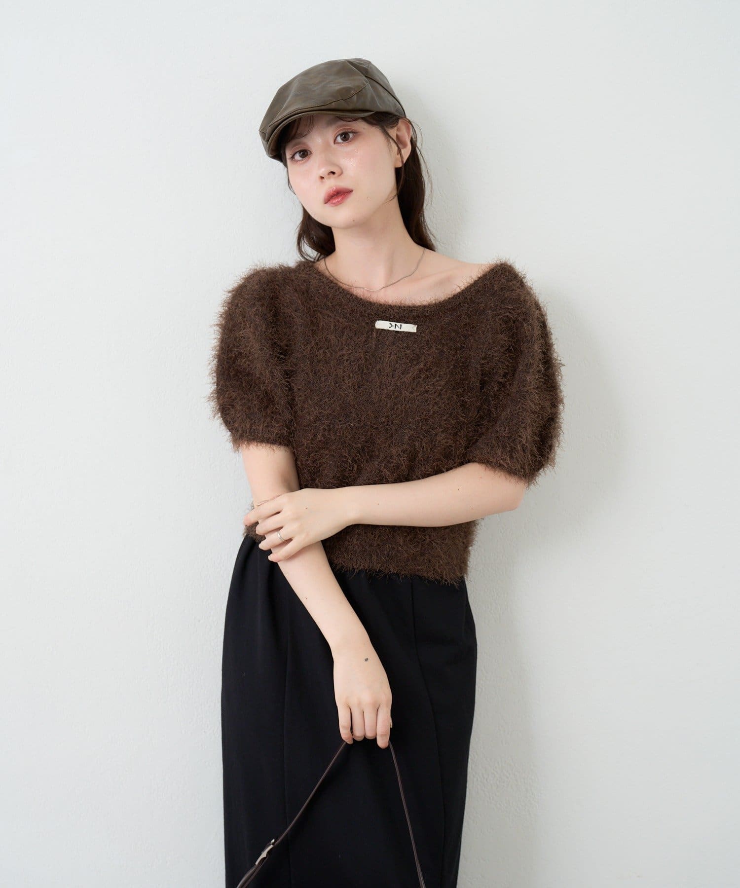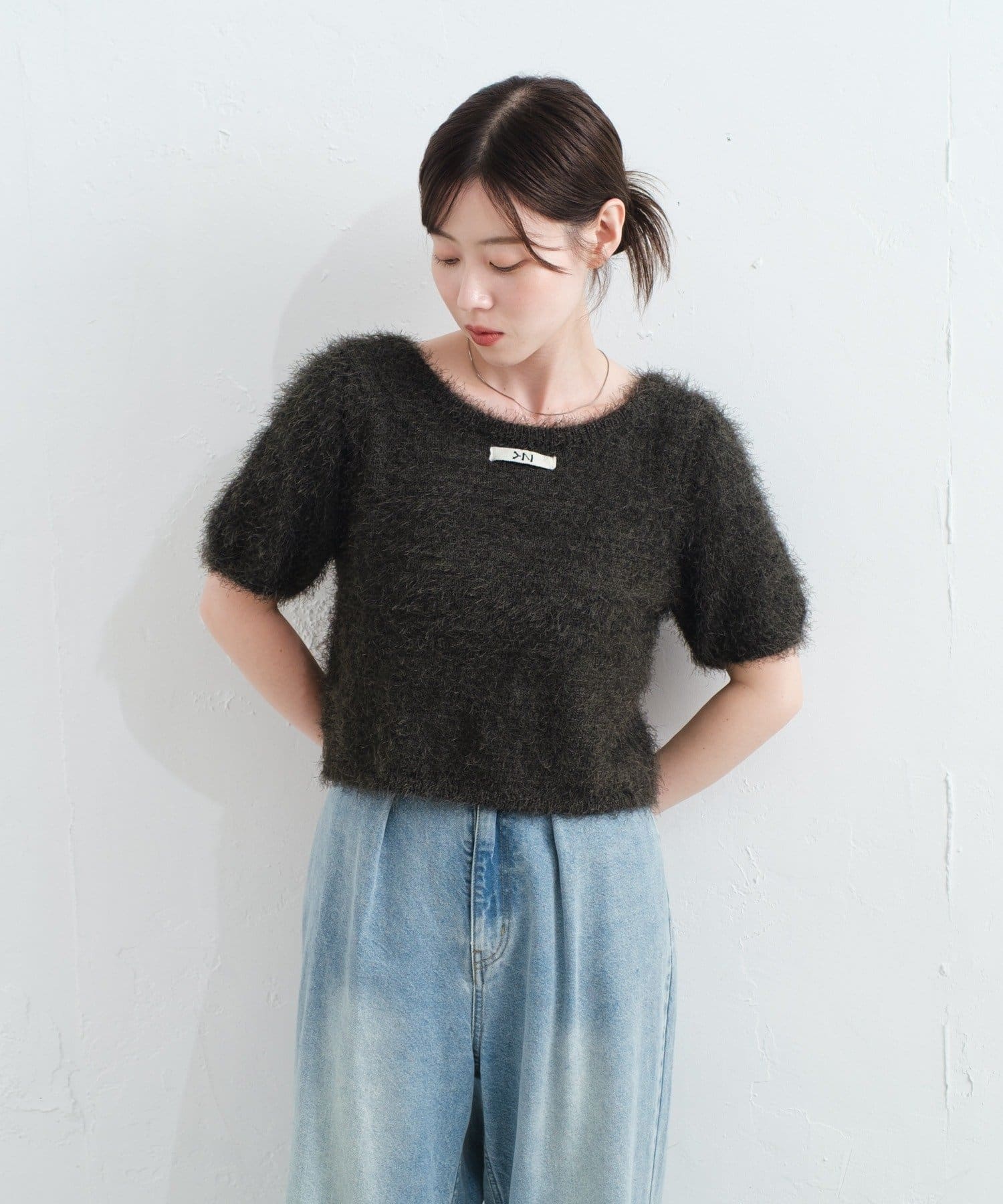 毛足の長いシャギーニット素材。