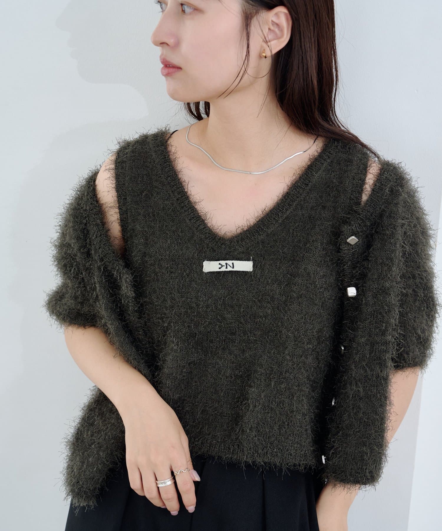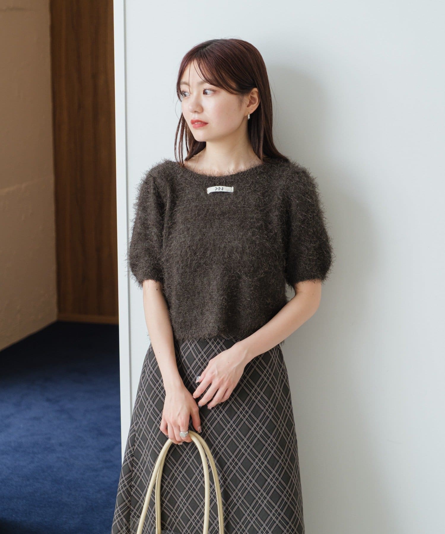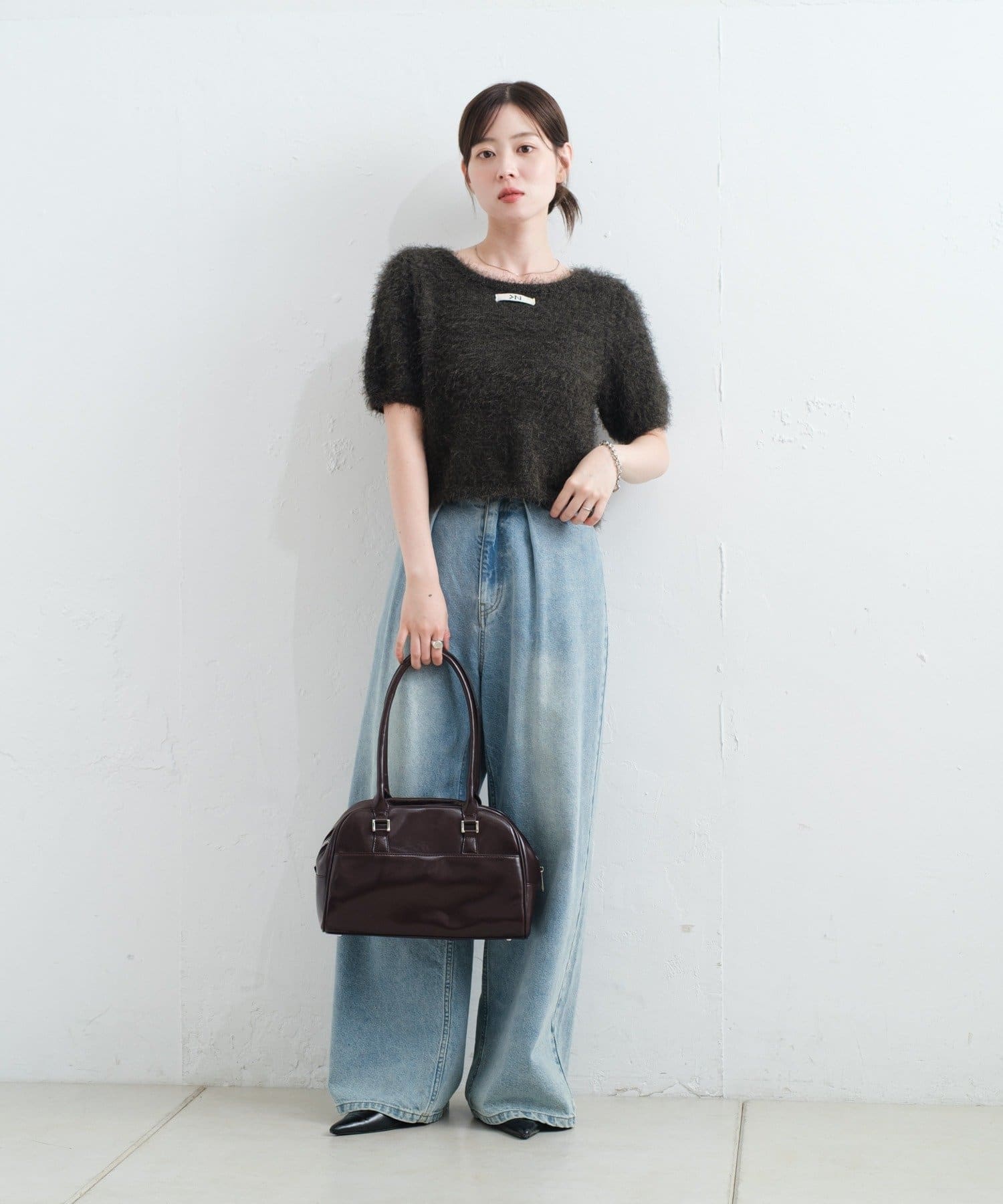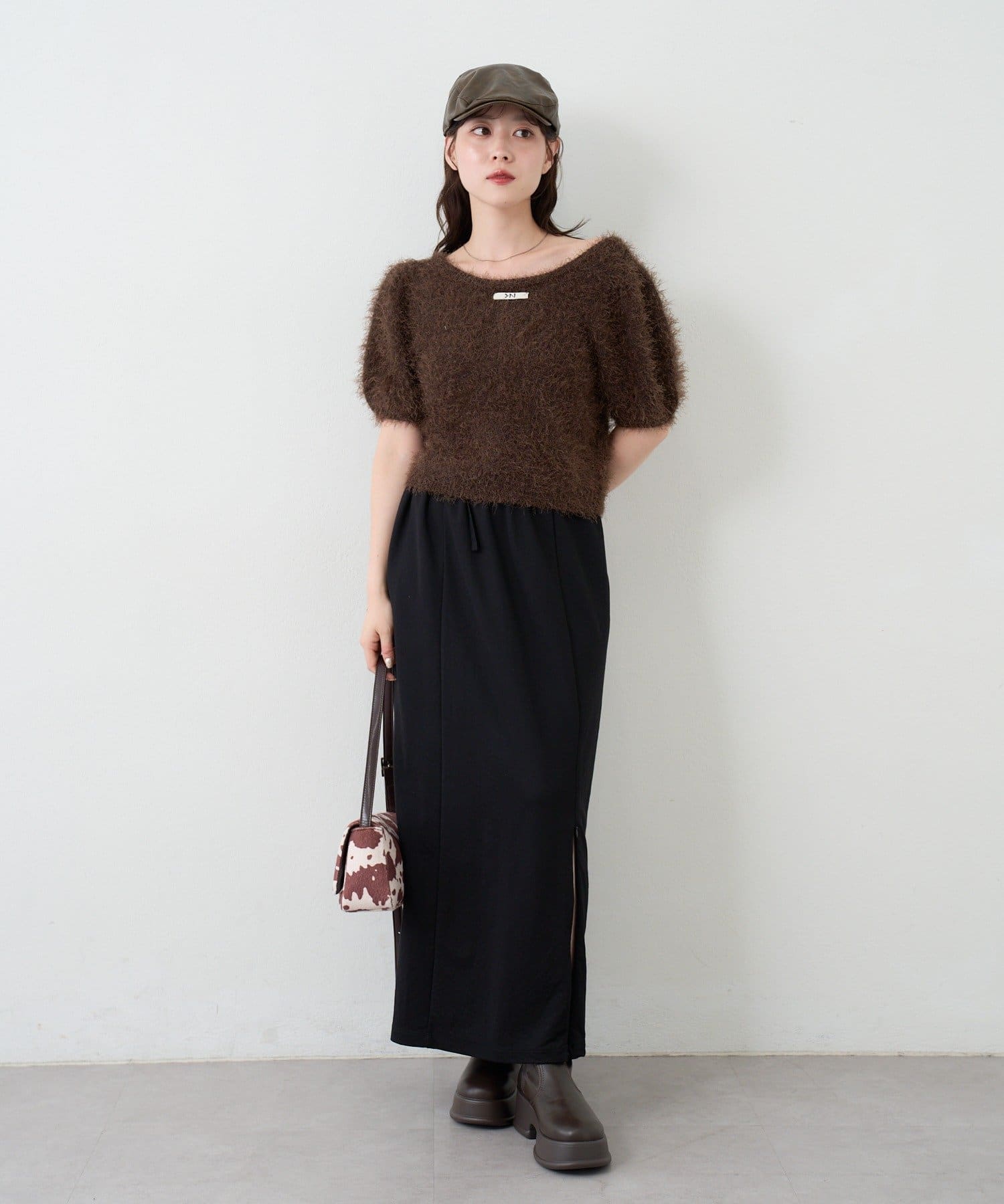 毛足の長いシャギーニット素材。