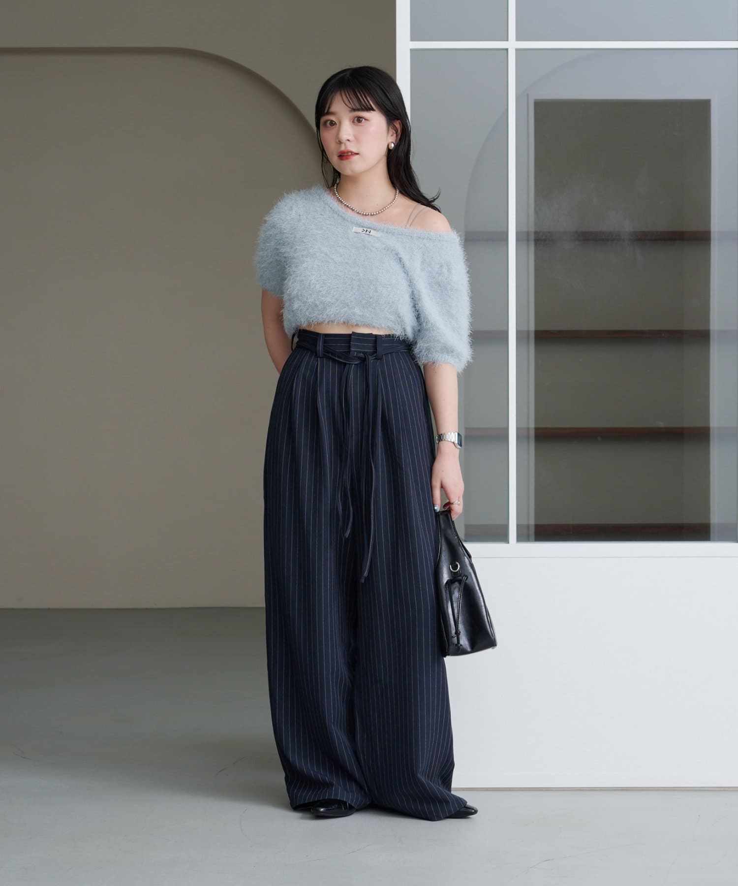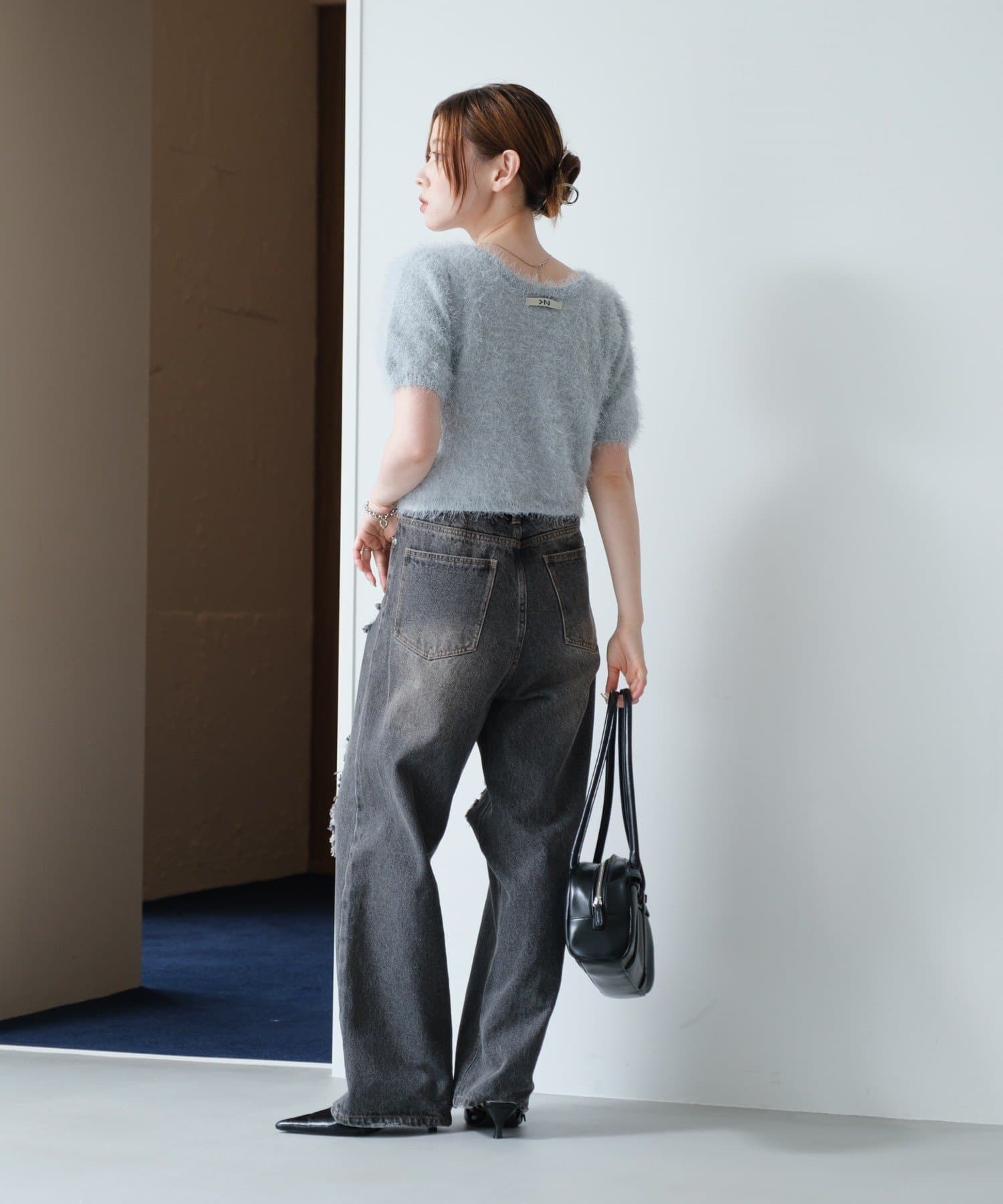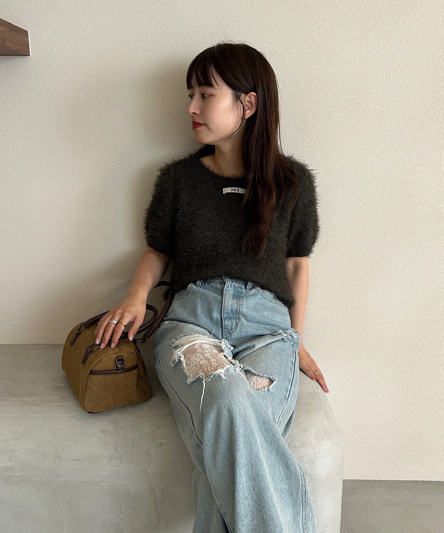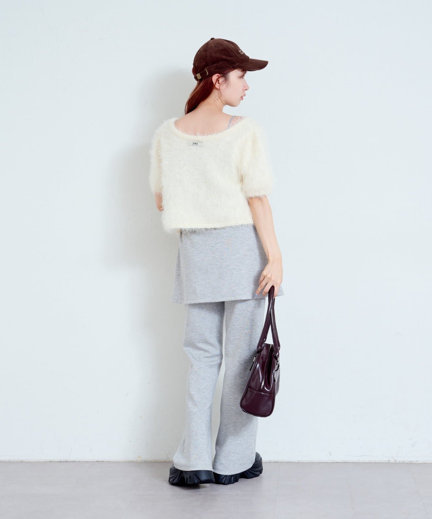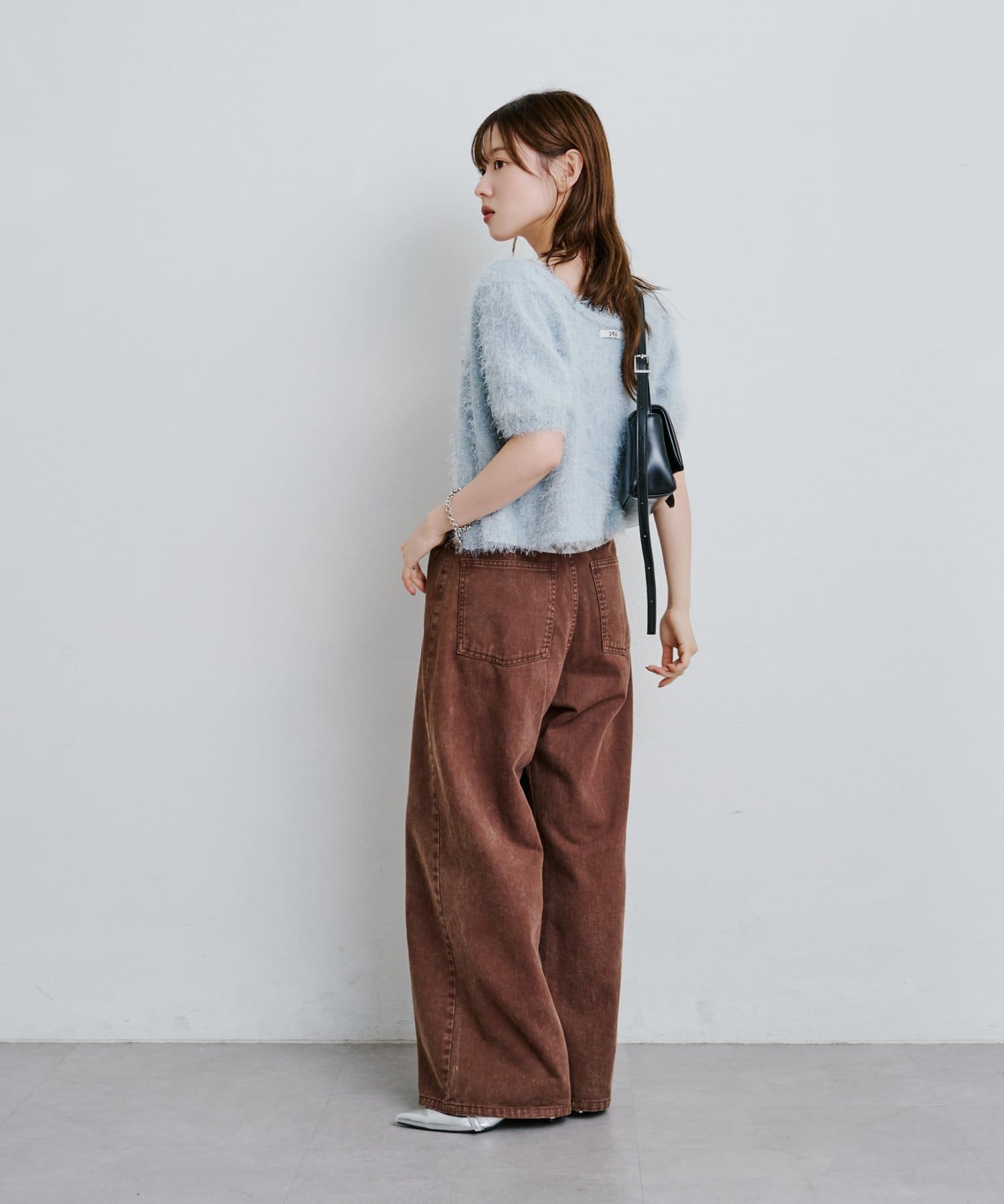 毛足の長いシャギーニット素材。