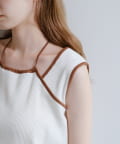 首元やアームホールに施された濃色のパイピングが、全体を引き締めてメリハリのある印象に。