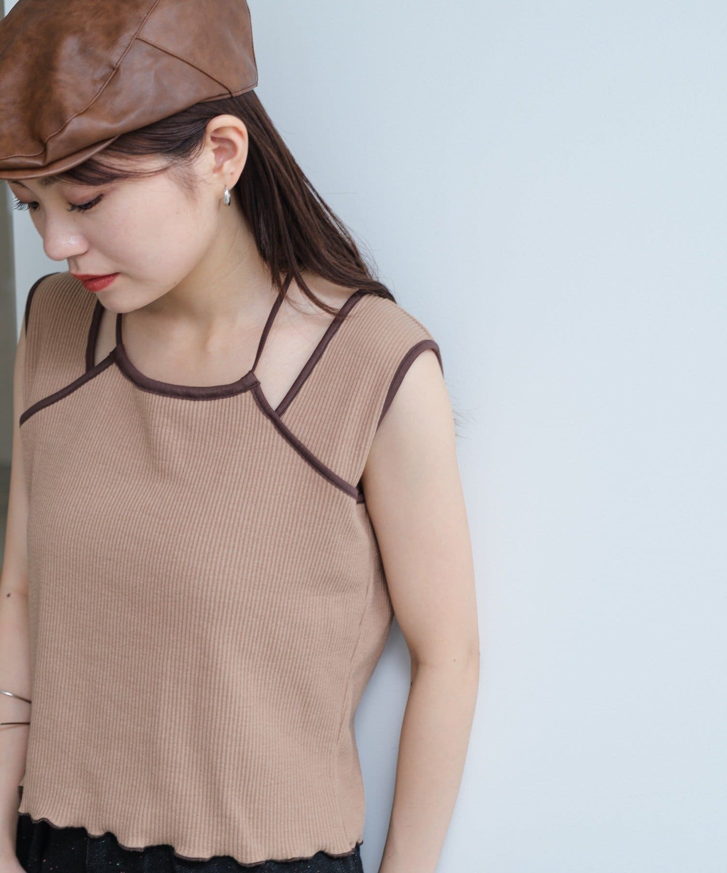 Kastane(カスタネ) 配色パイピングアメスリタンク